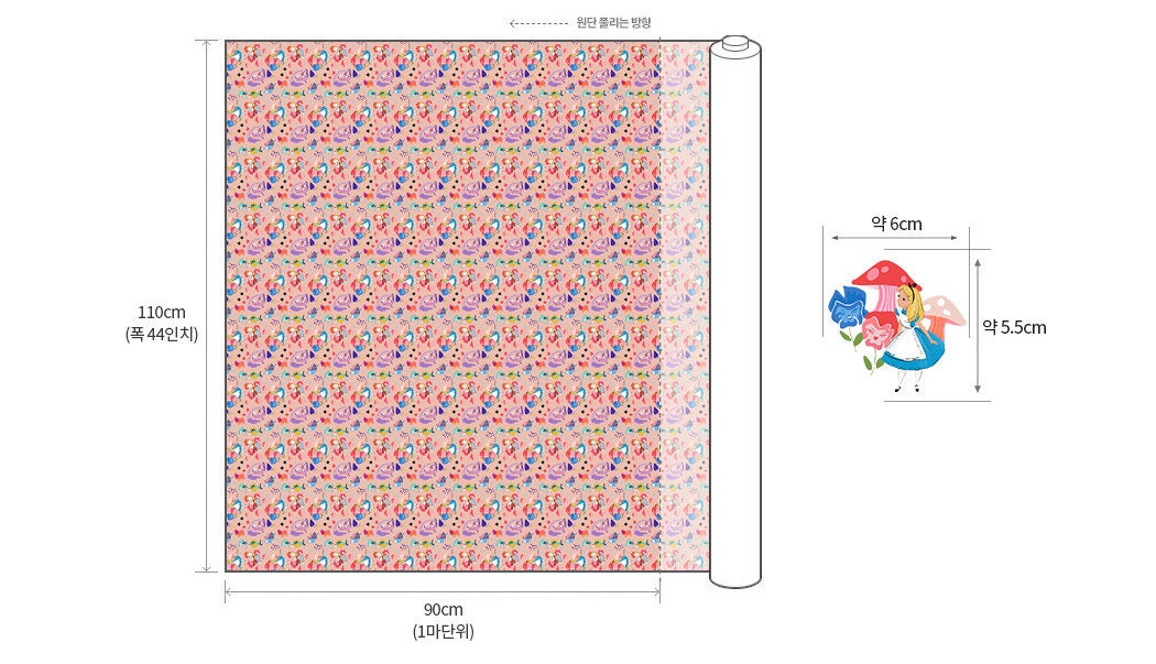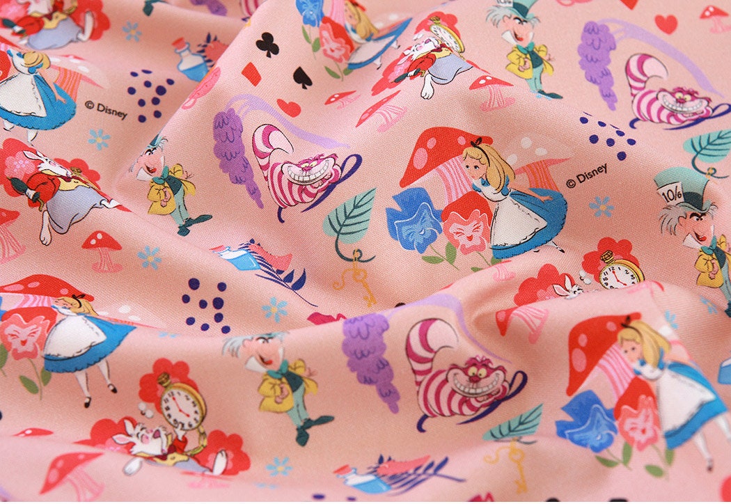 Disney Alice in Wonderland Pattern Fabric printed in Korea