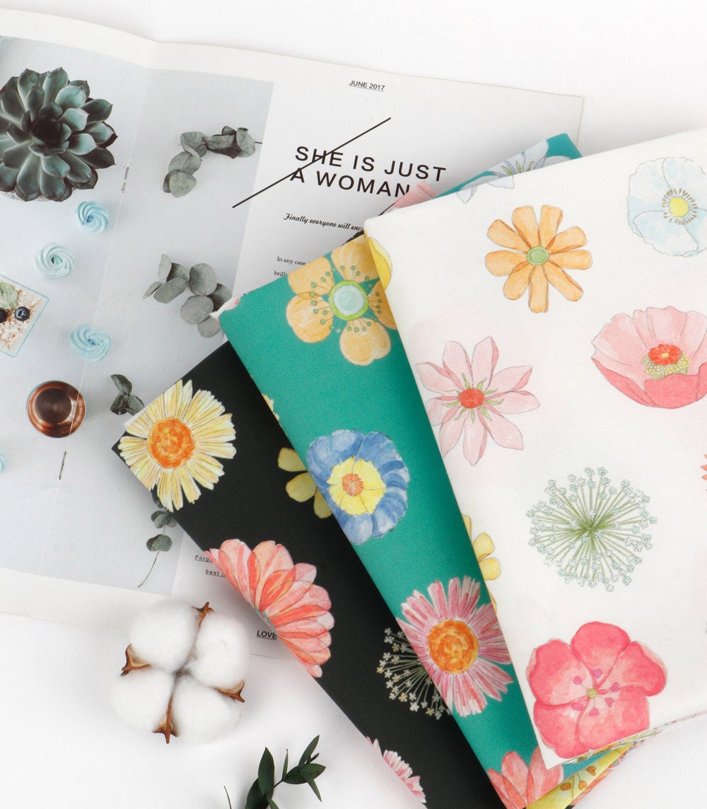 Dandelion Flower Garden Floral Patterned Fabric - Korean Fabric