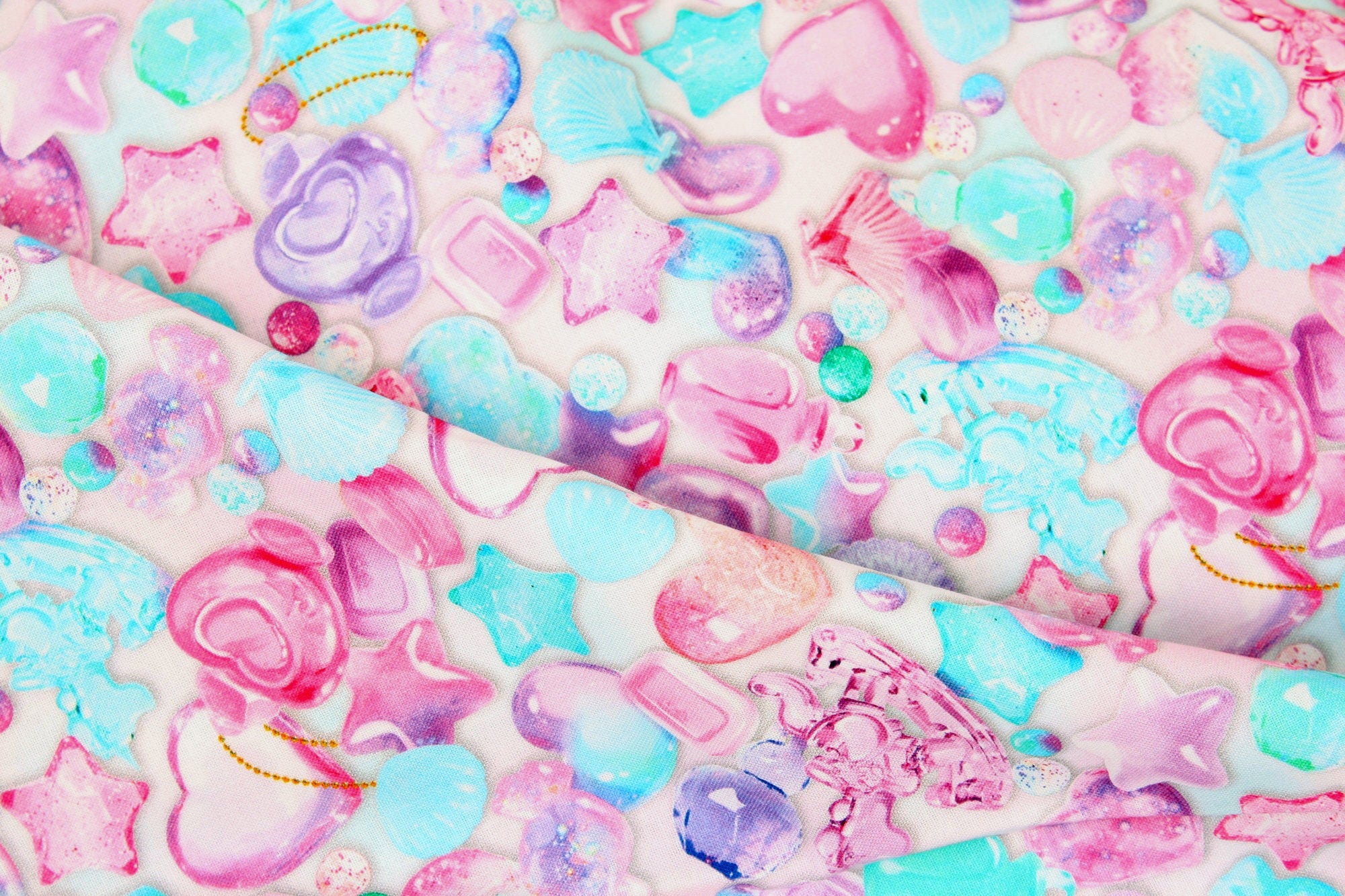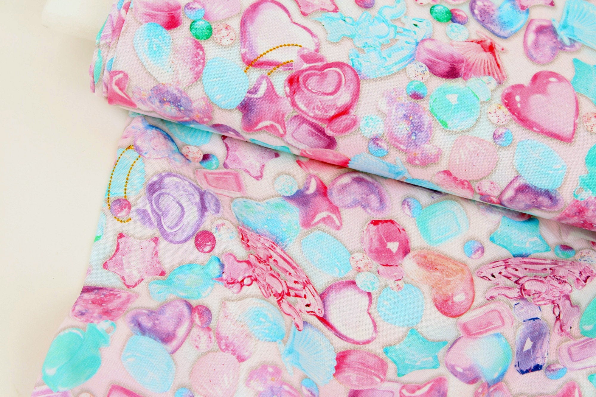 Luxury Jewel Heart Star Patterned Fabric - Japanese Fabric