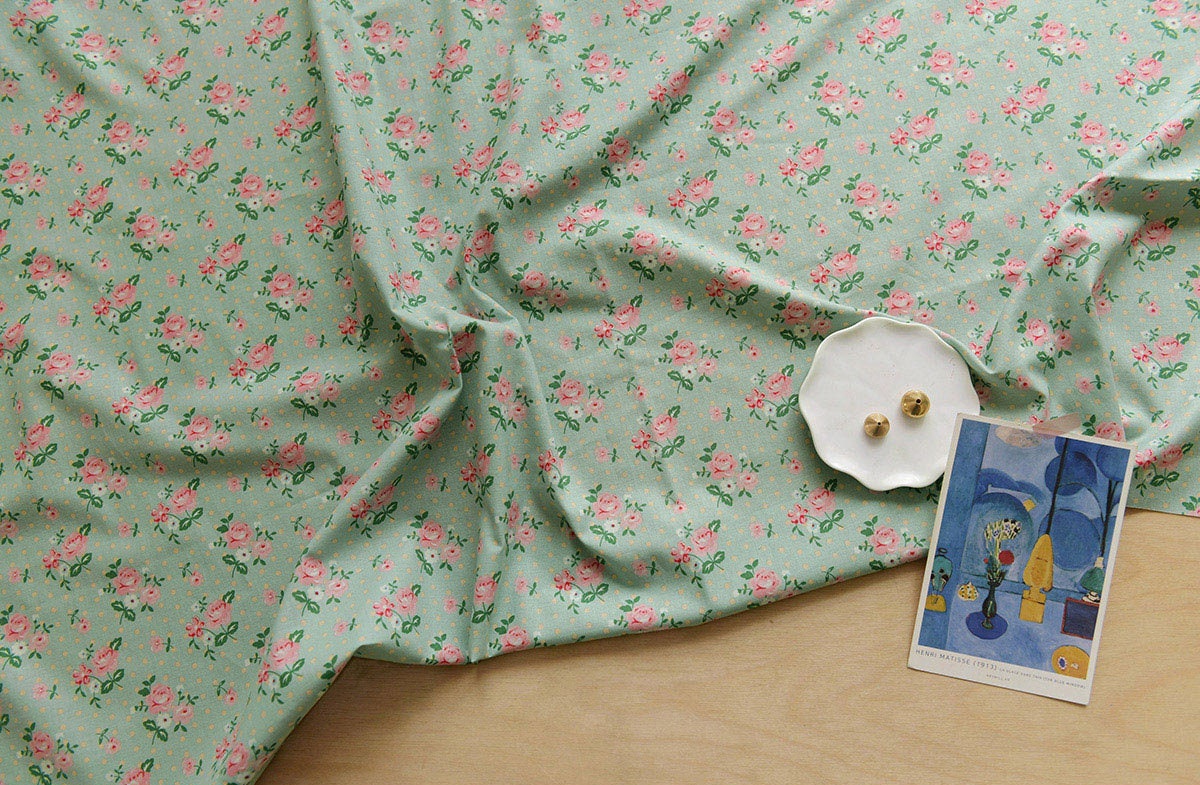 Pink Rose Flower Patterned fabric - Korean Fabric