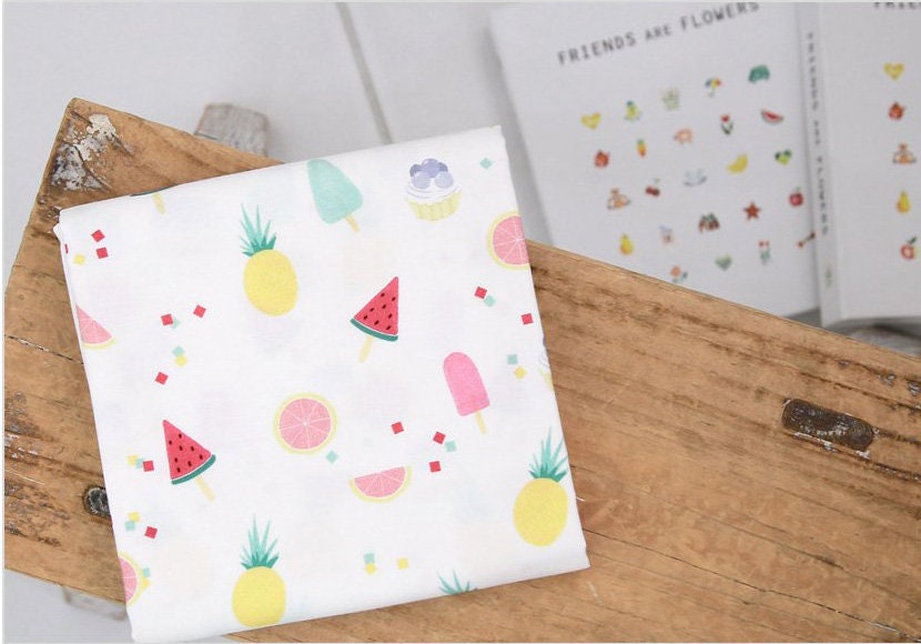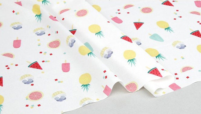 Dissert Fruits Ice candy Pineapple Orange Patterned Fabric, Cute, Kids, Sewing, Quilt - Korean Fabric