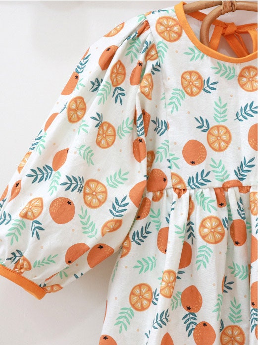 Orange Fruits Patterned Fabric - Korean Fabric