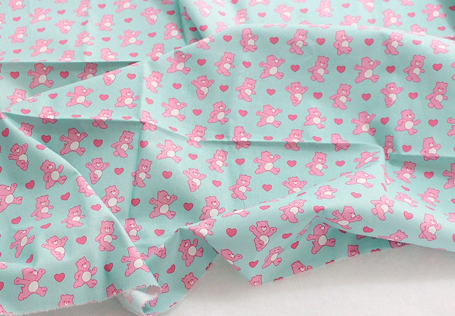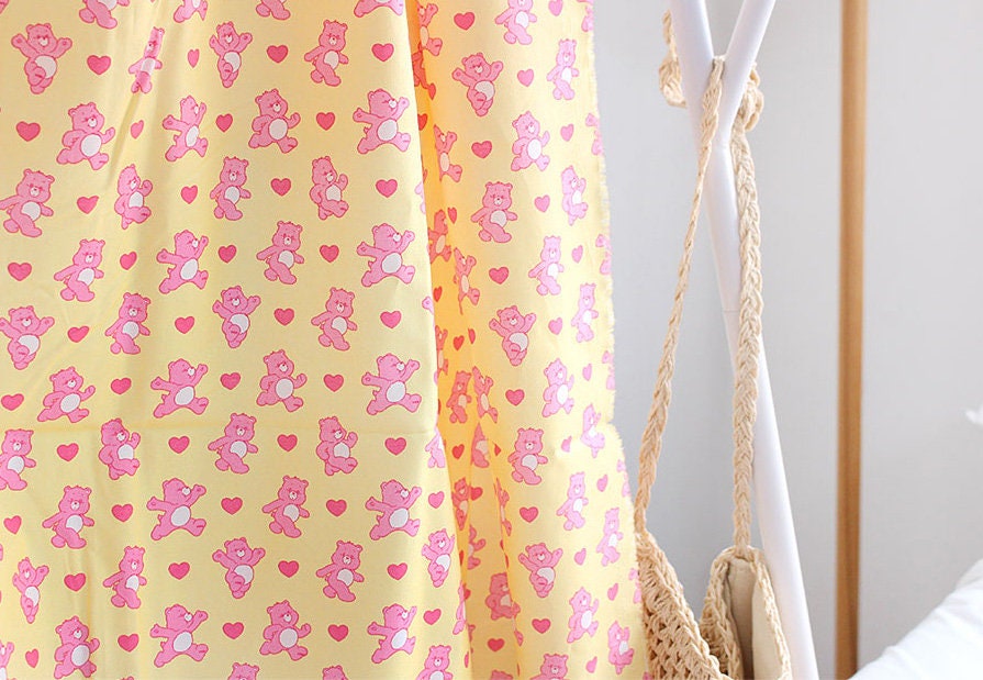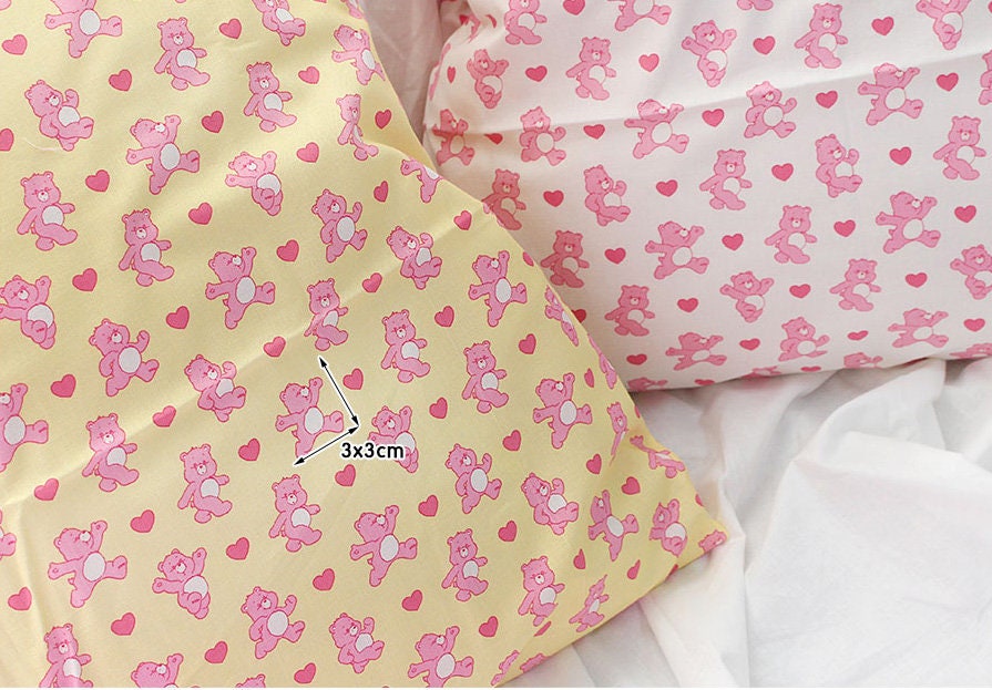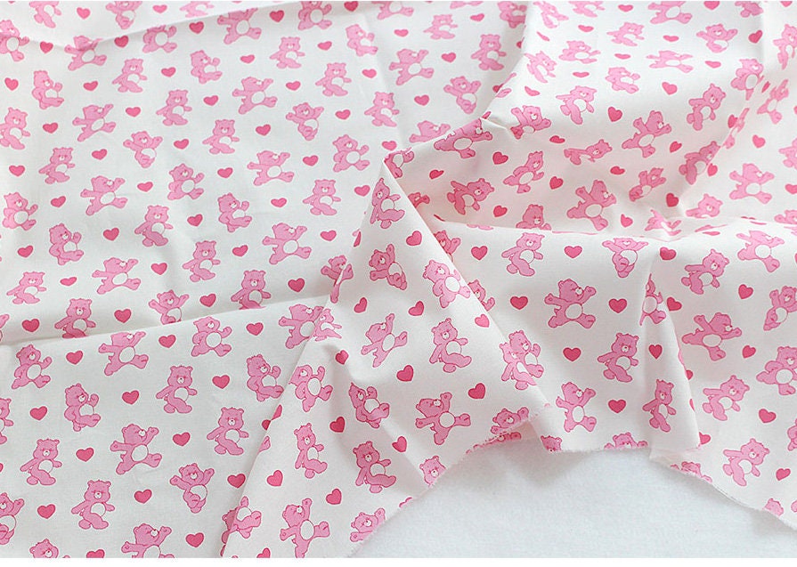 Animal Cute Pink Heart Bear patterned Fabric, Cute, Kids, Sewing, Quilt- Korean Fabric