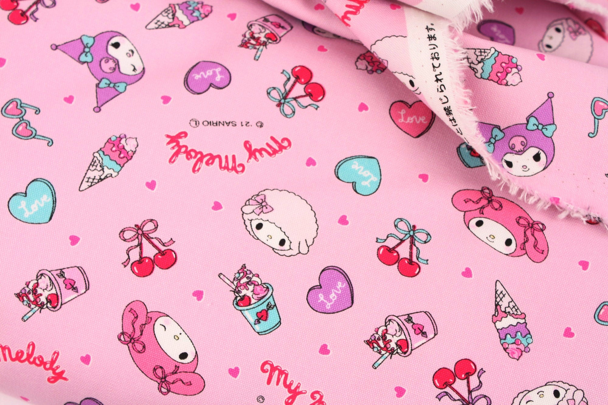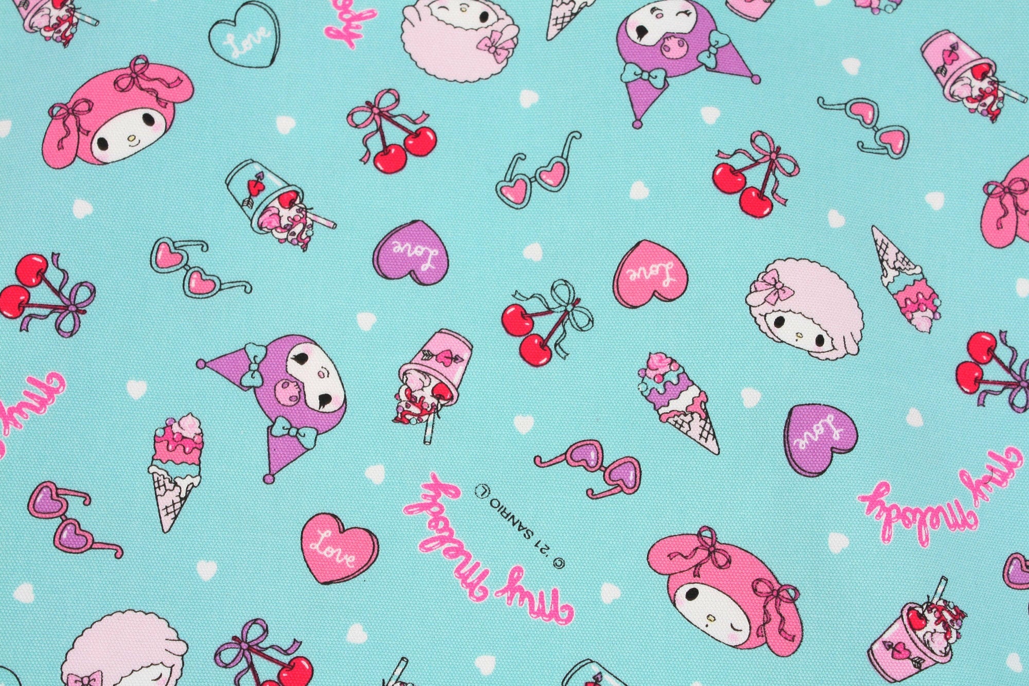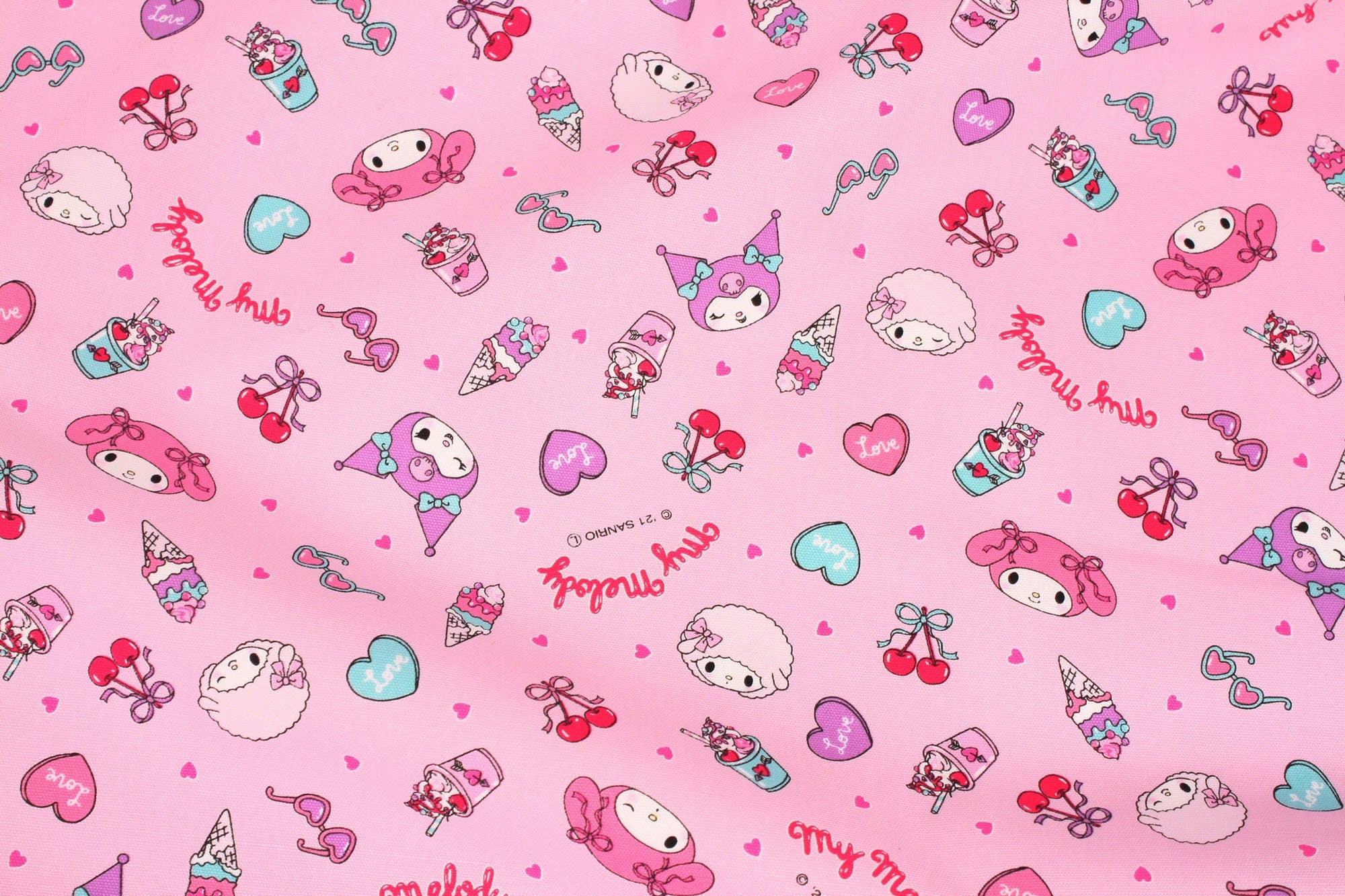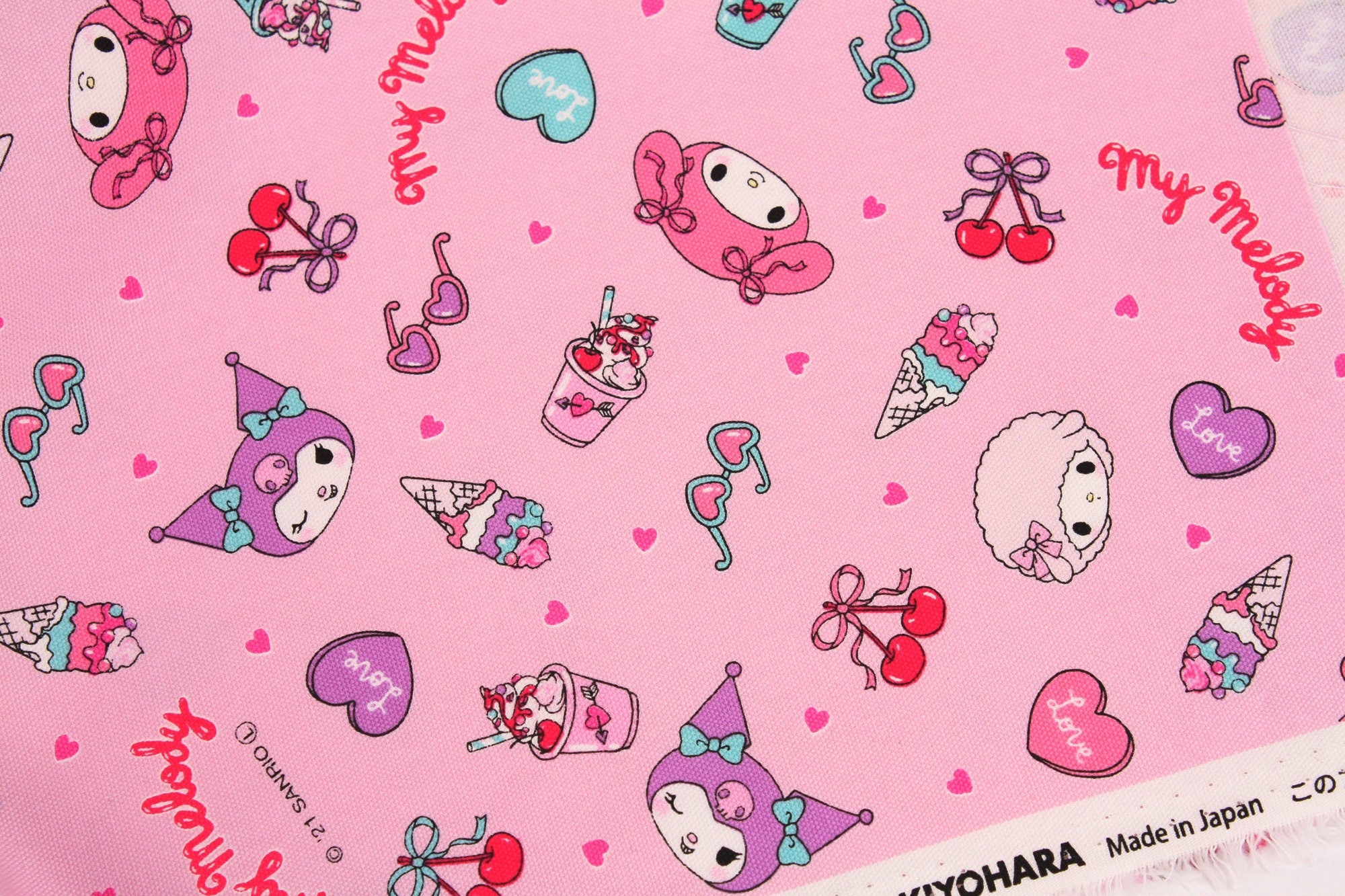 Sanrio My Melody Kuromi My Sweet Piano Character Frappe Cherry Fabric - Japanese Fabric