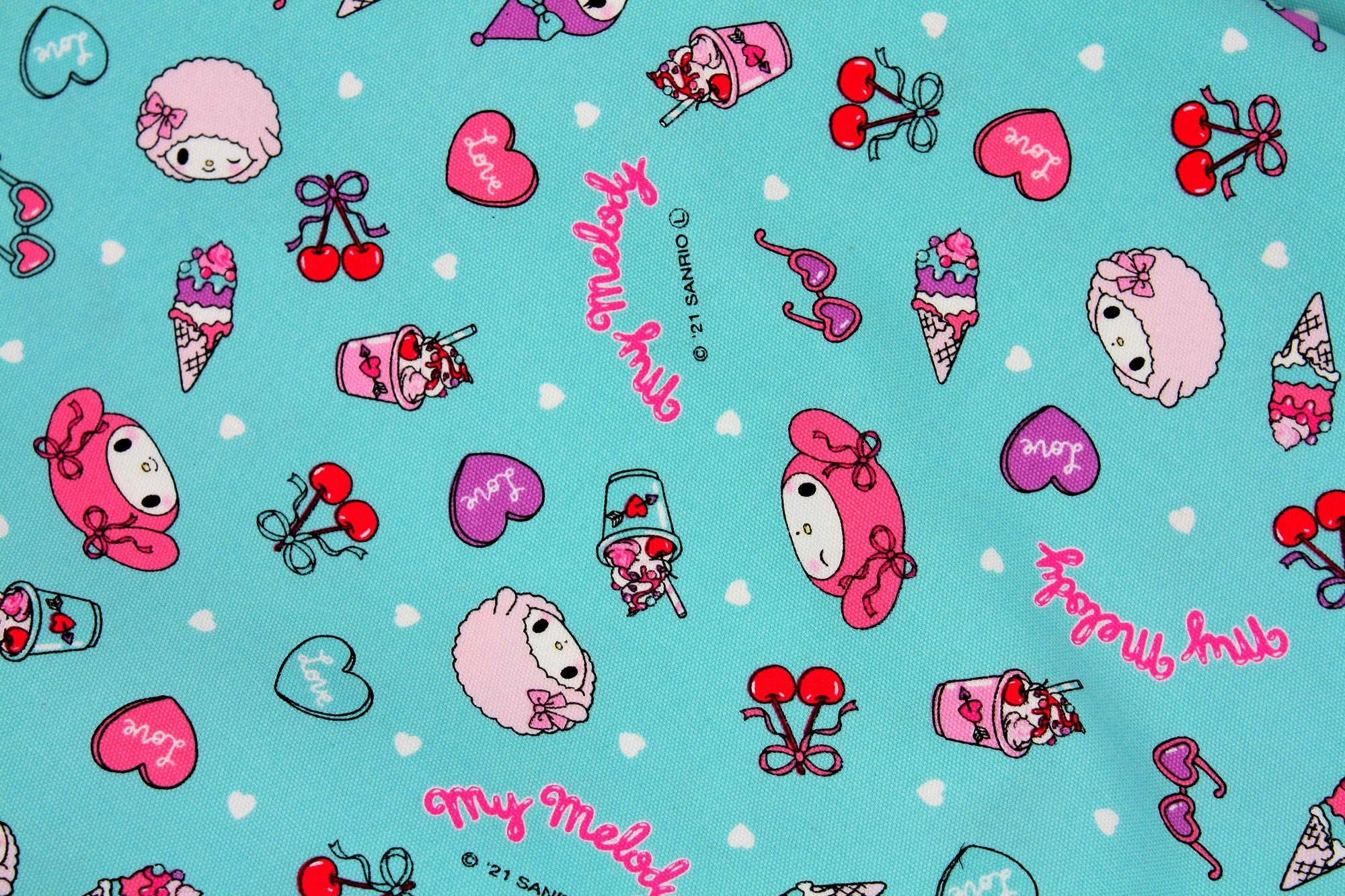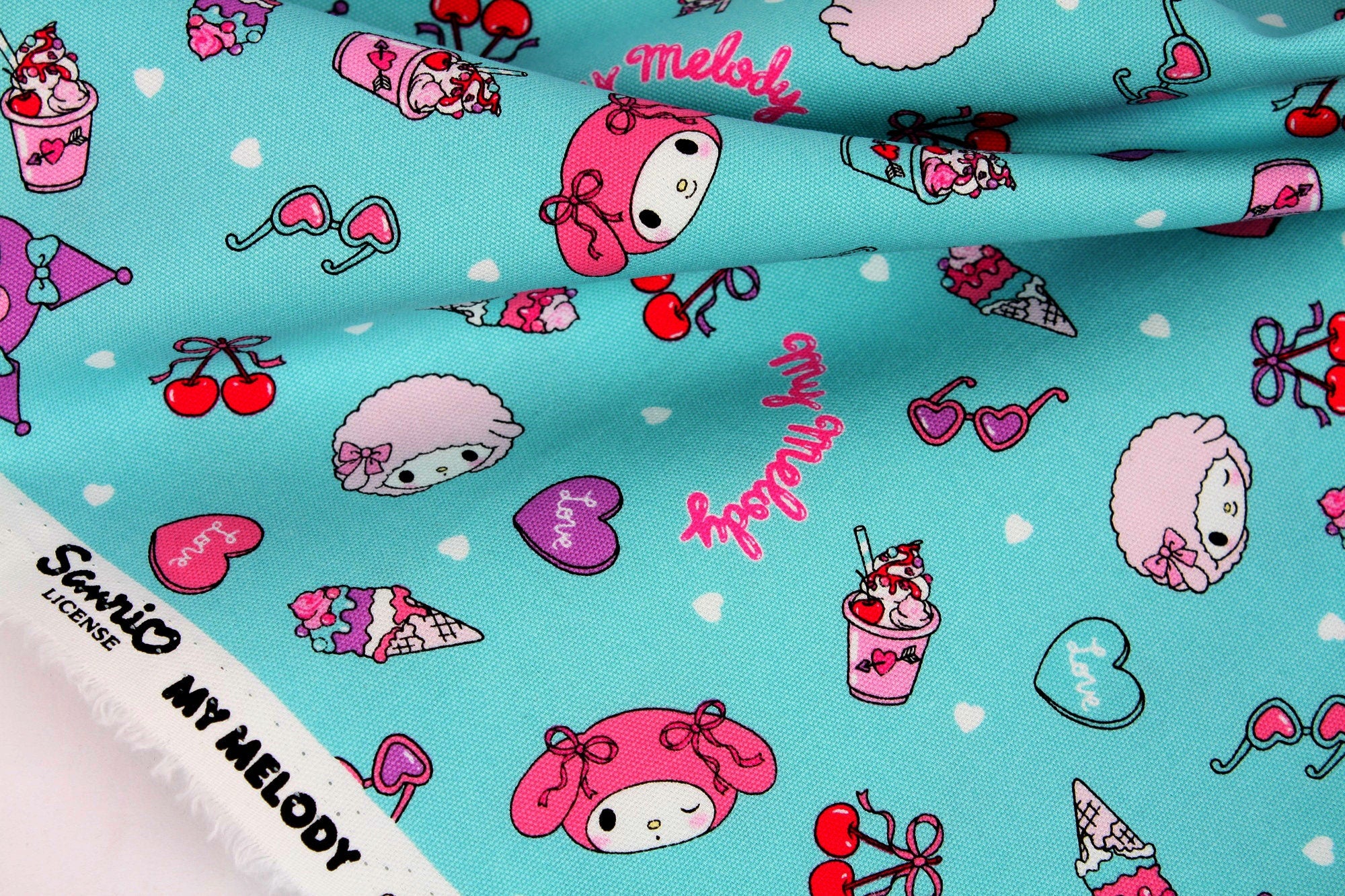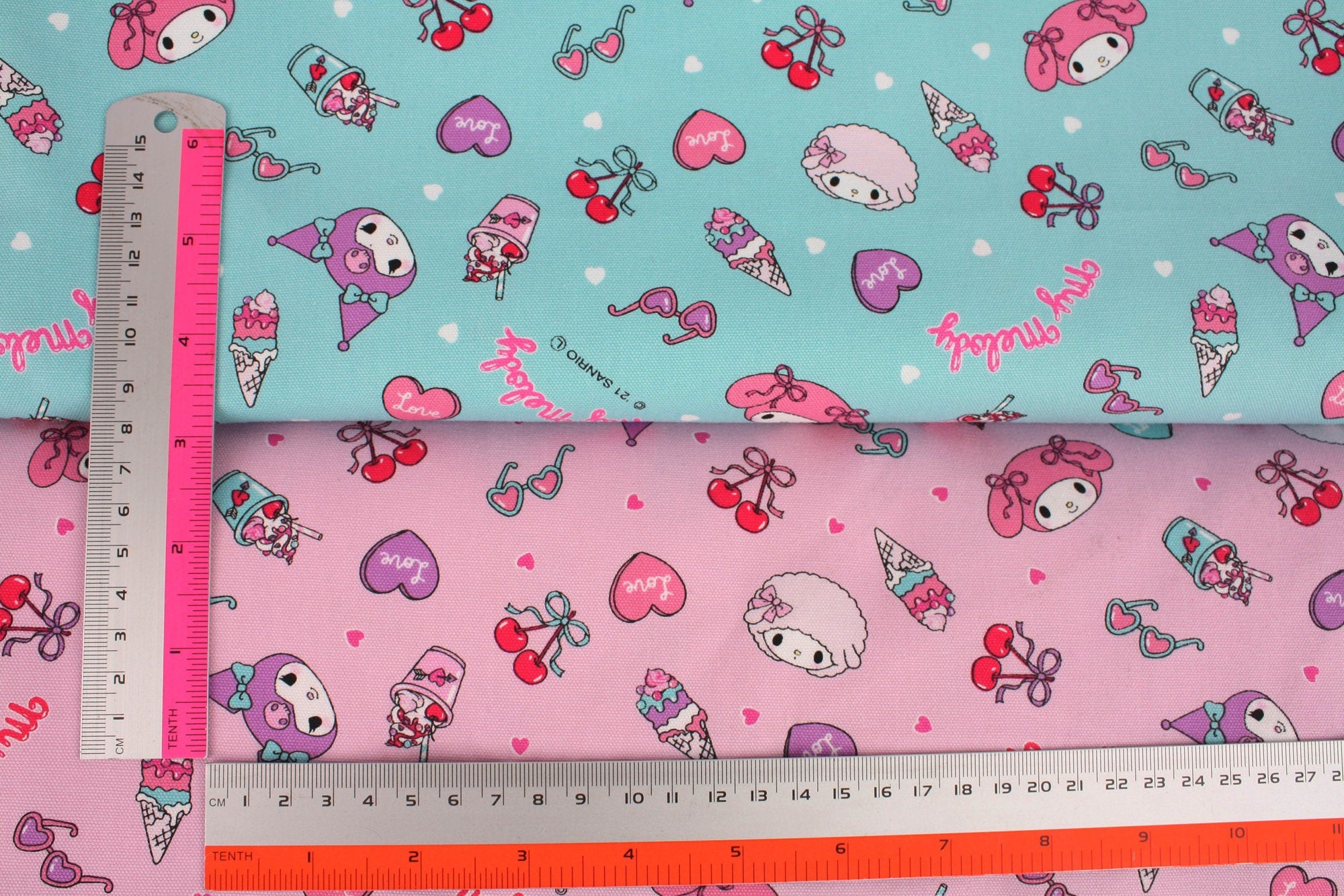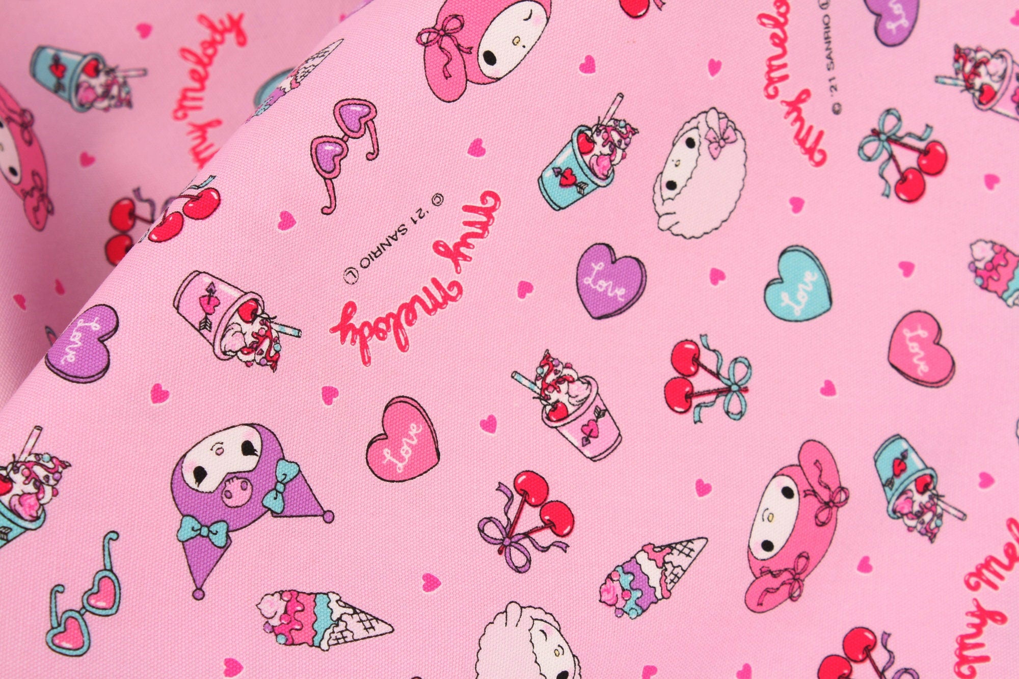 Sanrio My Melody Kuromi My Sweet Piano Character Frappe Cherry Fabric - Japanese Fabric