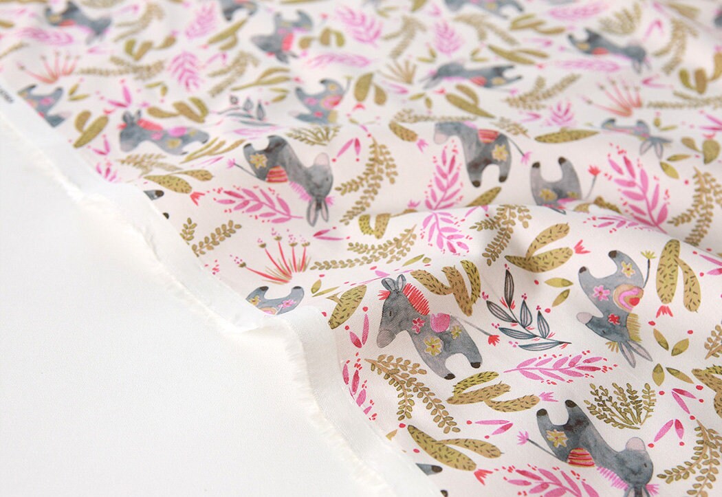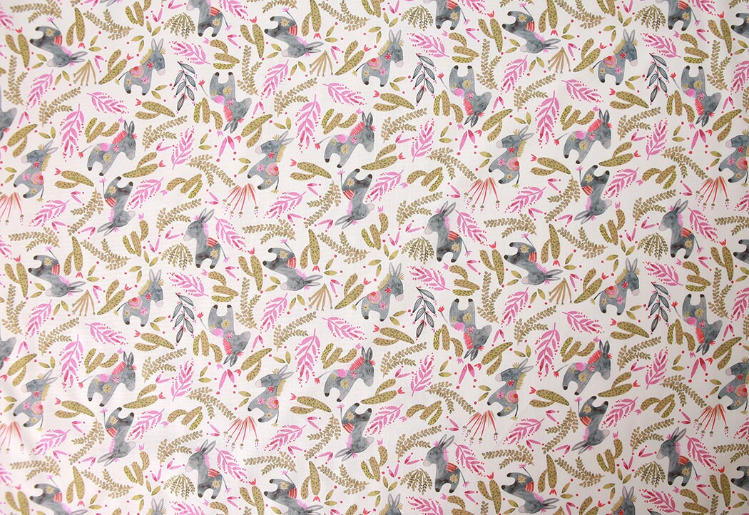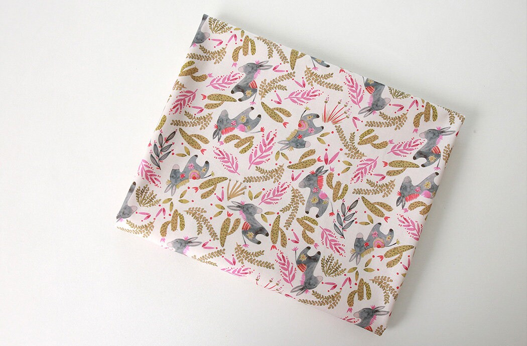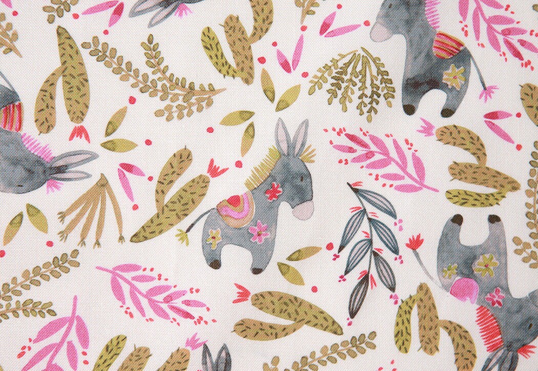 Cactus Flower Donkey Fabric, Cute, sewing, Quilt - Korean Fabric
