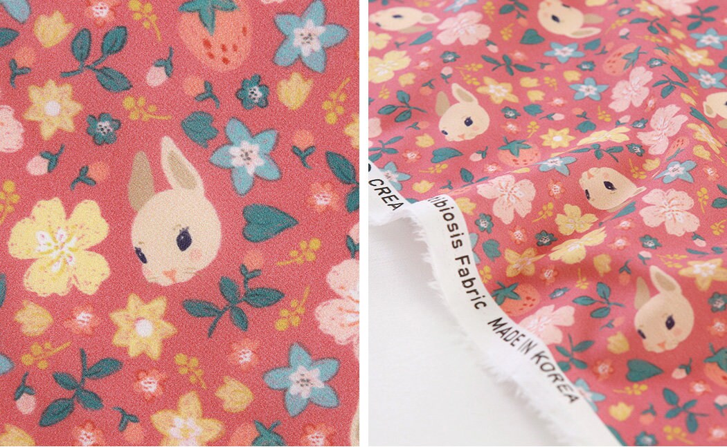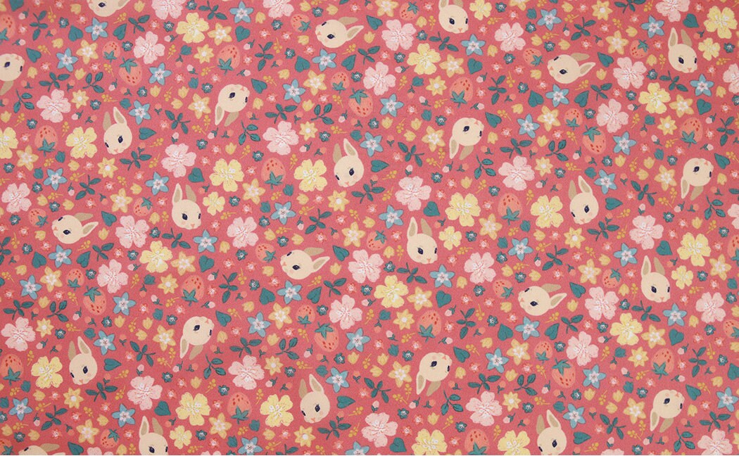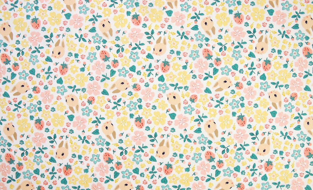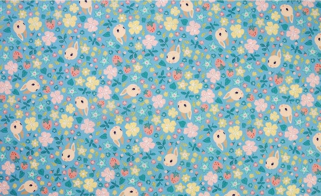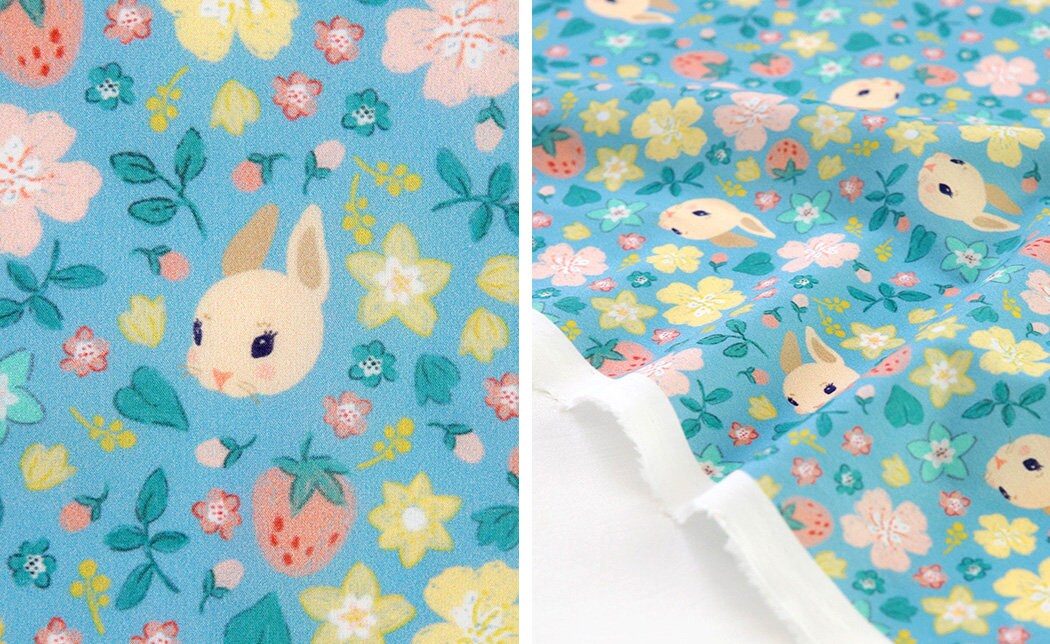 Wild Flowers Rabbit Bunny 80s Lawn Fabric 18" x 54" - Korean Fabric