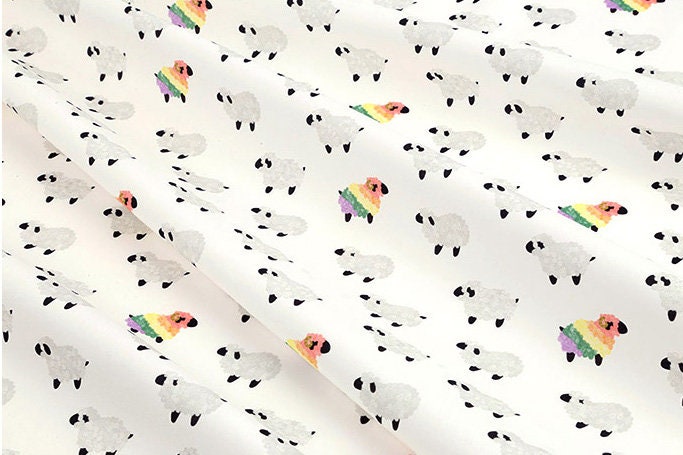 Animal Star Sheep Rainbow Sheep Patterned Fabric - Korean Fabric