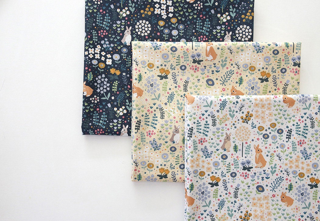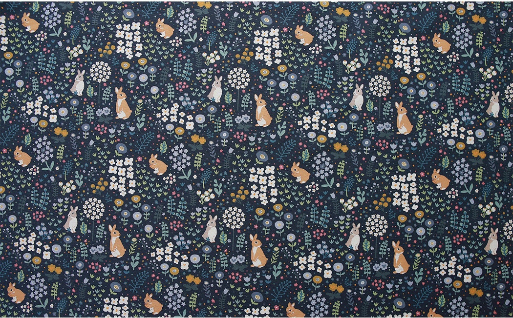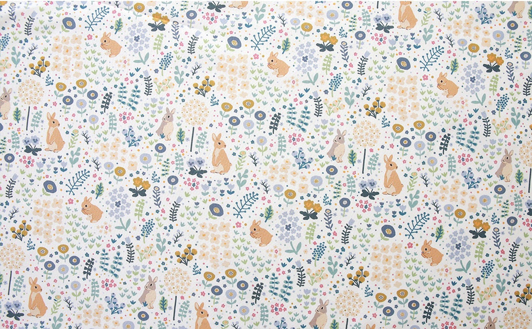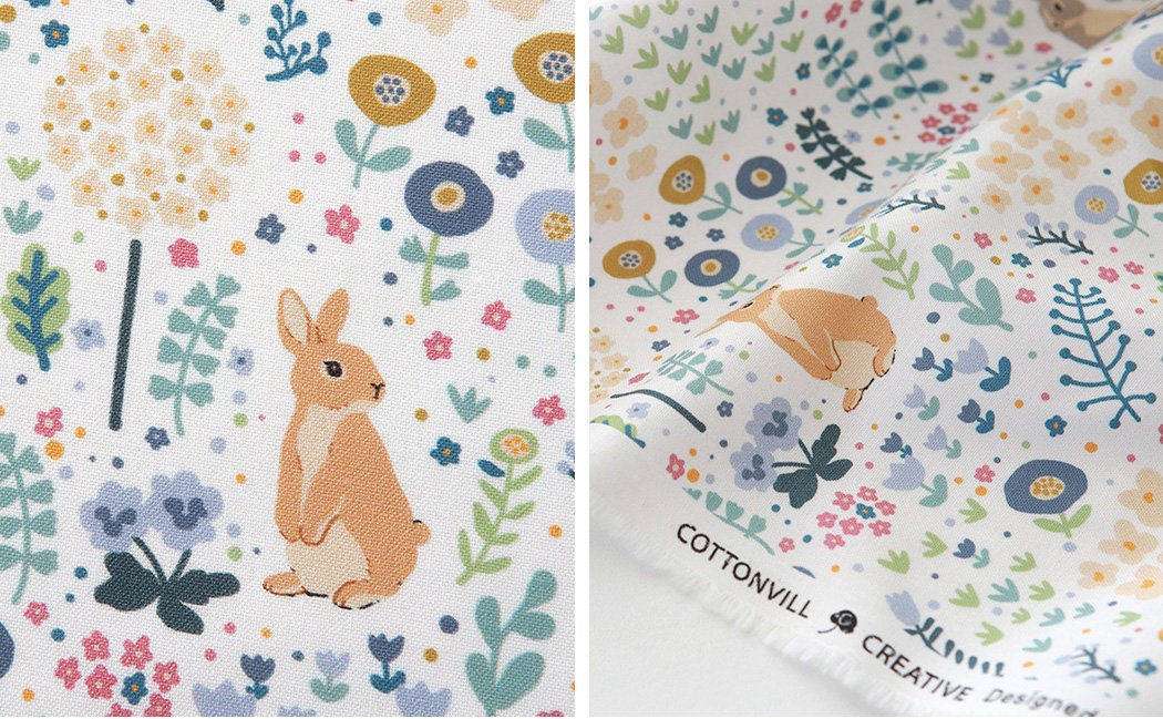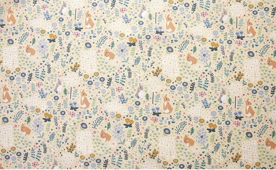 Cute Animal Rabbit Bunny Garden patterned Fabric - Korean Fabric