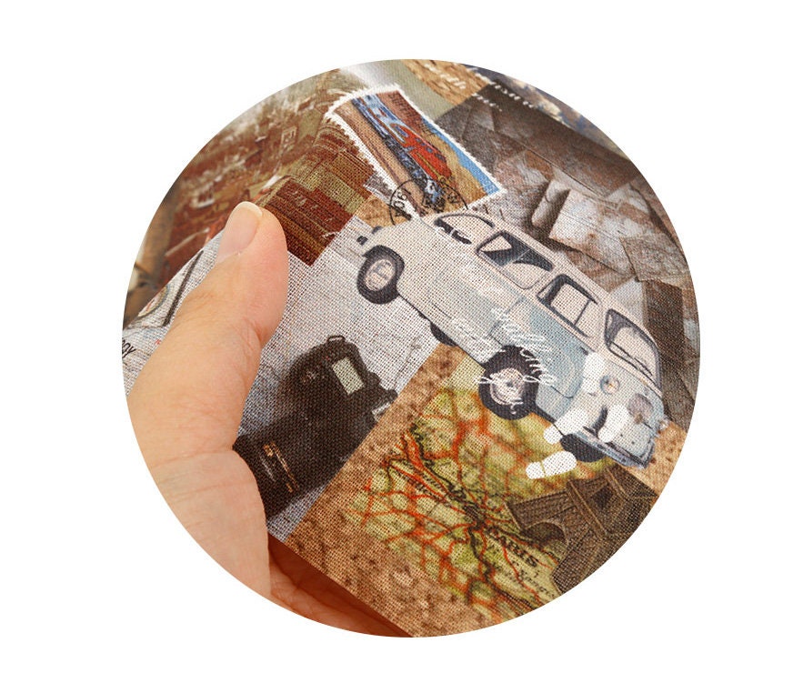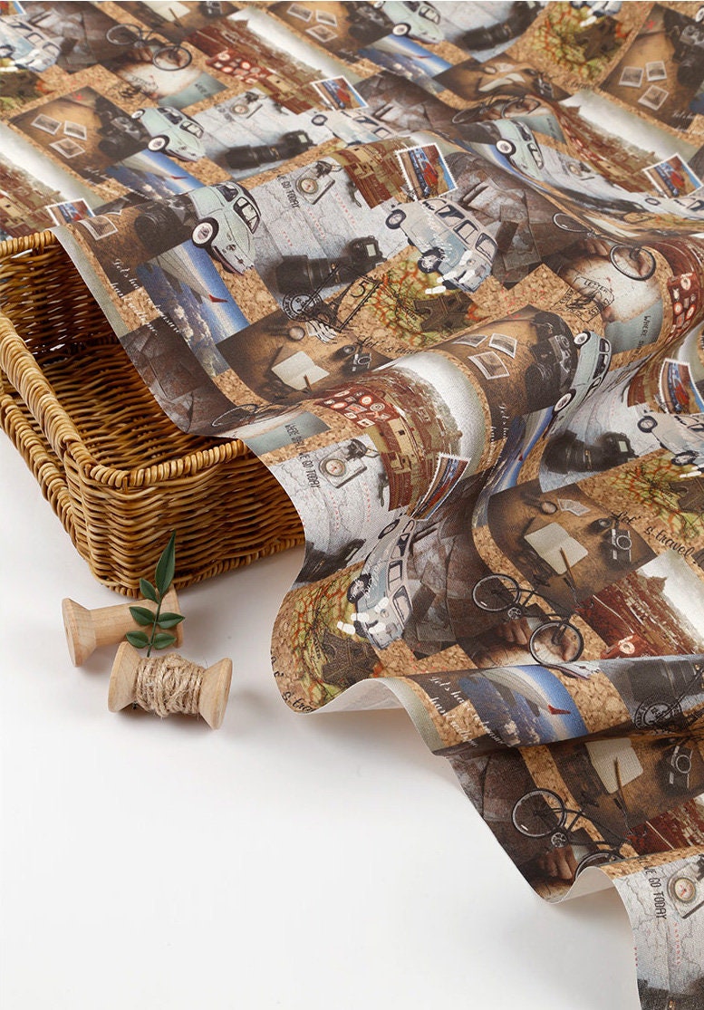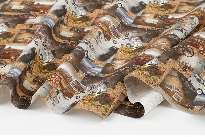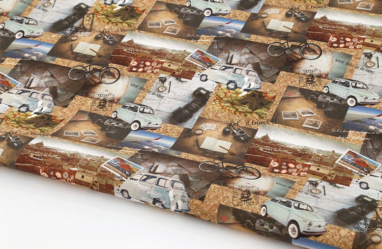 Vintage Travel Poster Patterned Fabric made in Korea / Half Yard