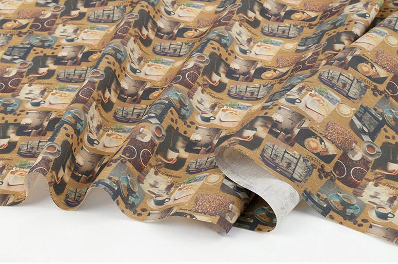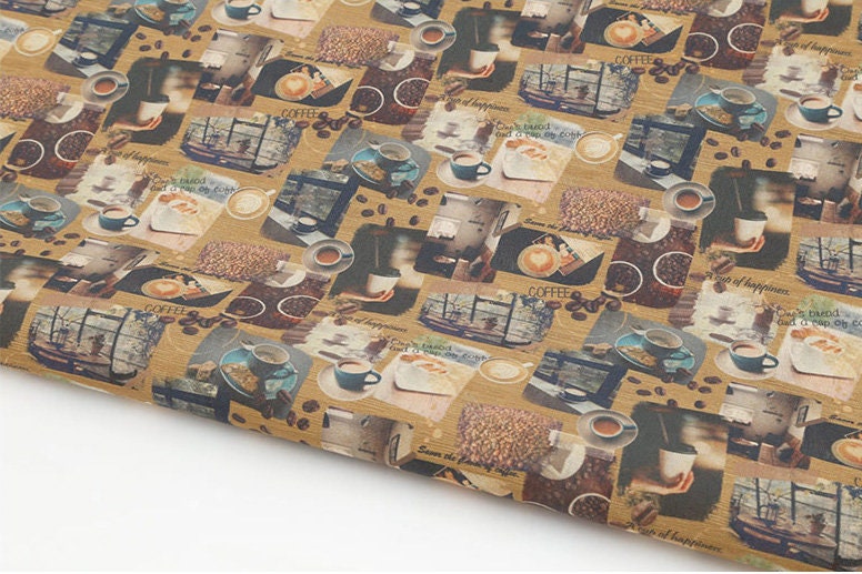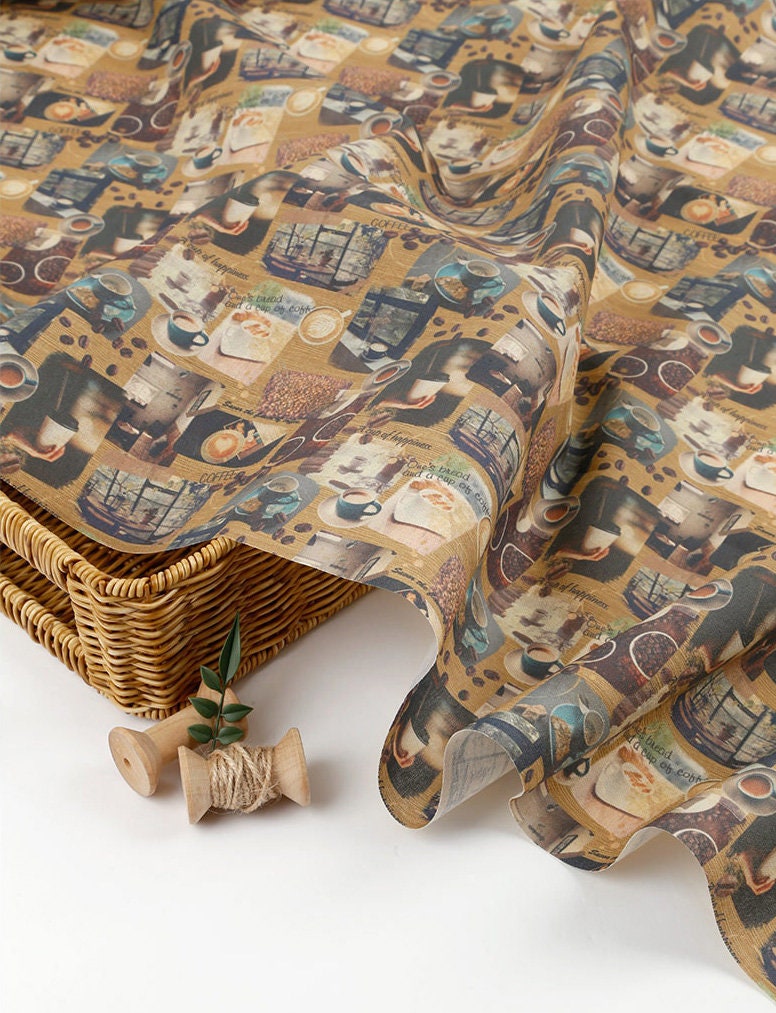 Vintage Coffee Cafe Patterned Fabric made in Korea / Half Yard