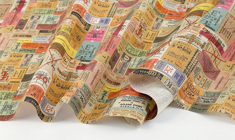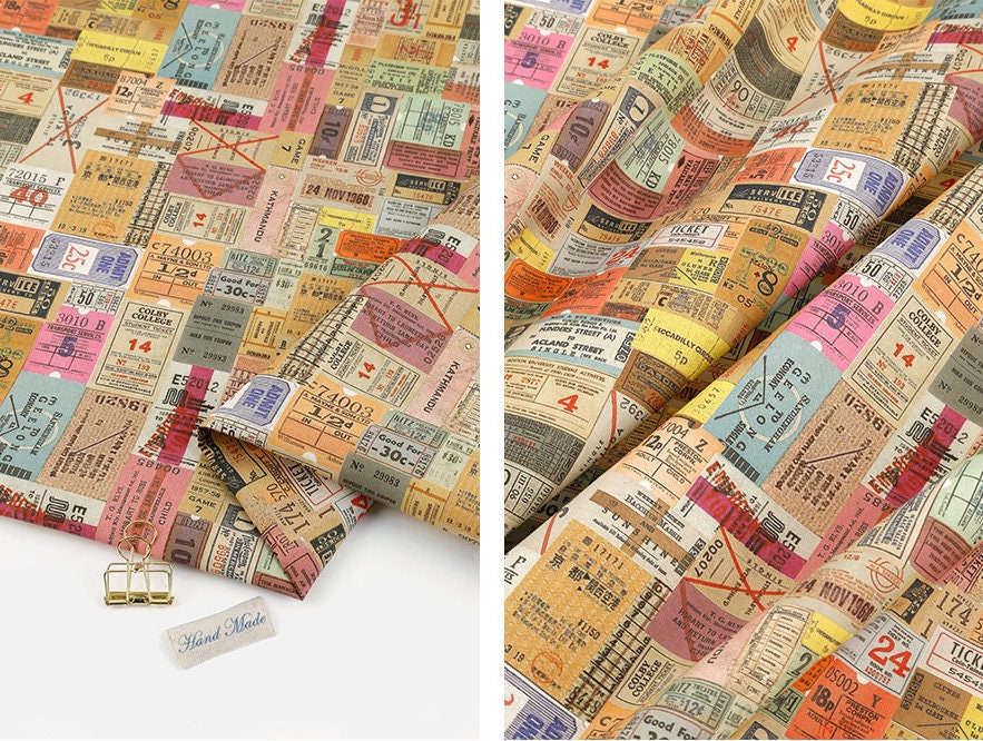 Vintage Ticket Patterned Fabric made in Korea / Half Yard