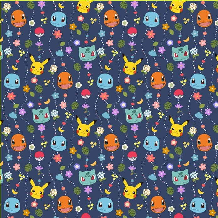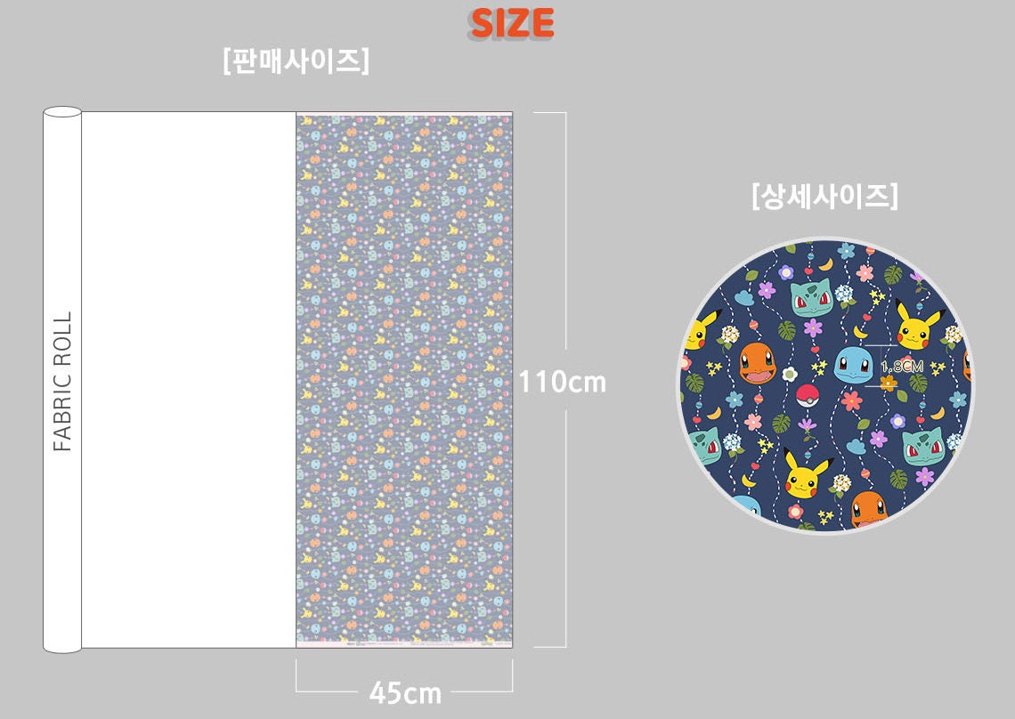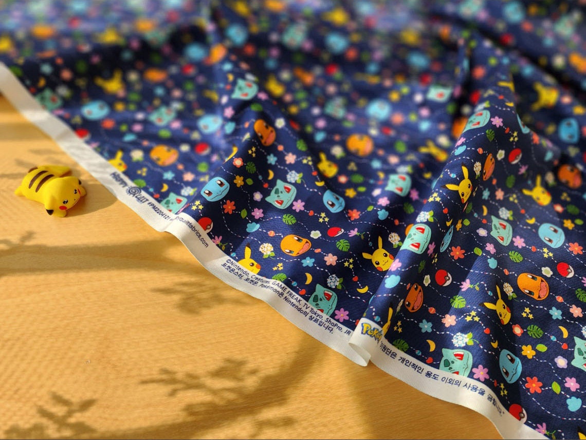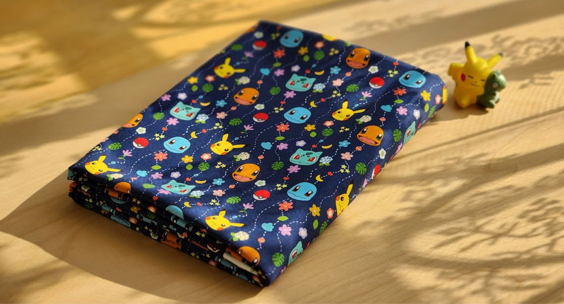 Pocket Monster, Pokemon, Pikachu, Eevee, Charmander, Bulbasaur, Squirtle Mobile Patterned Fabric made in Korea