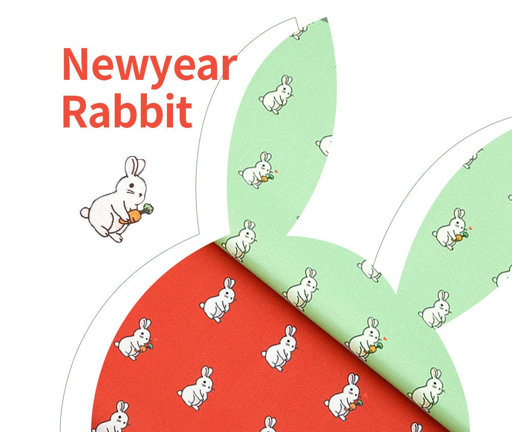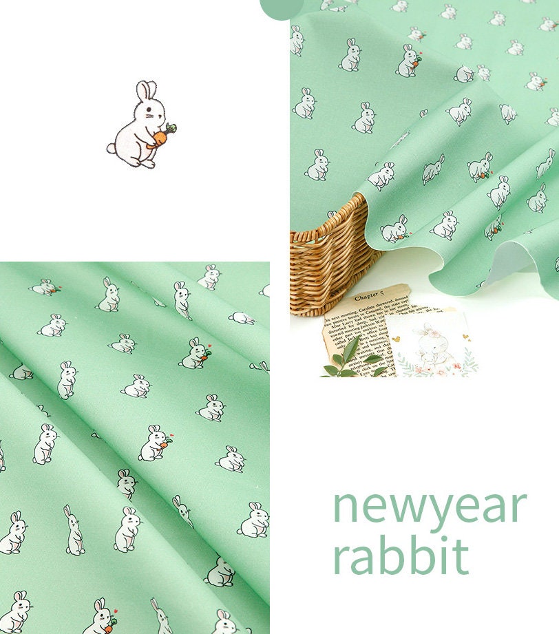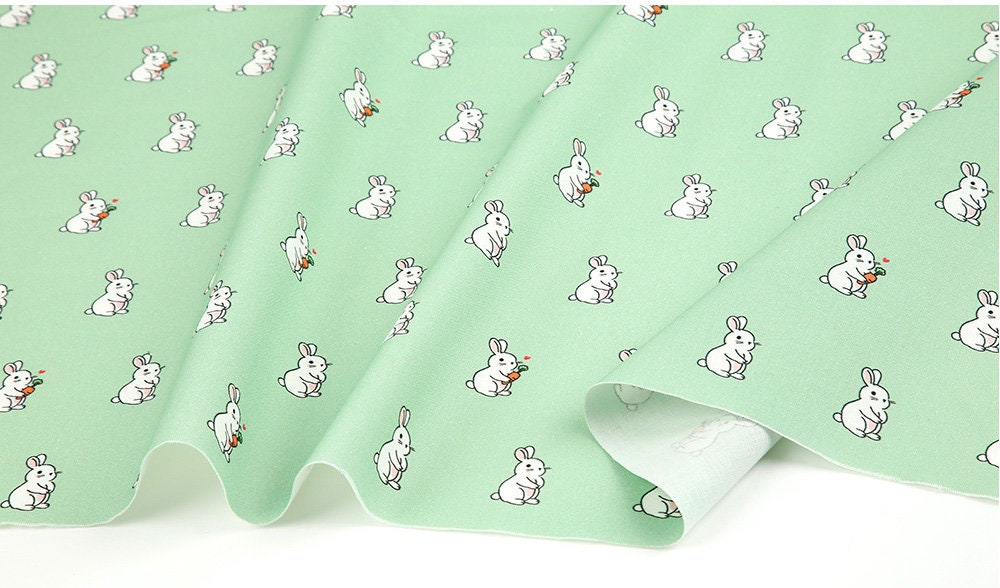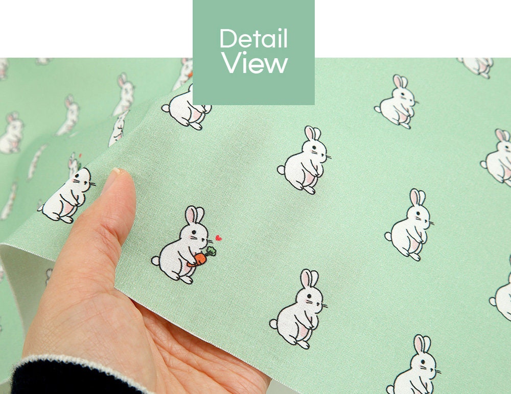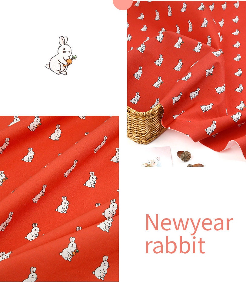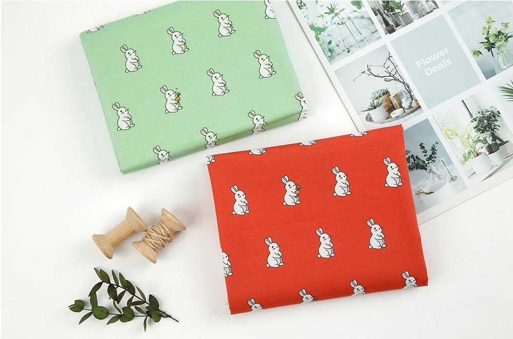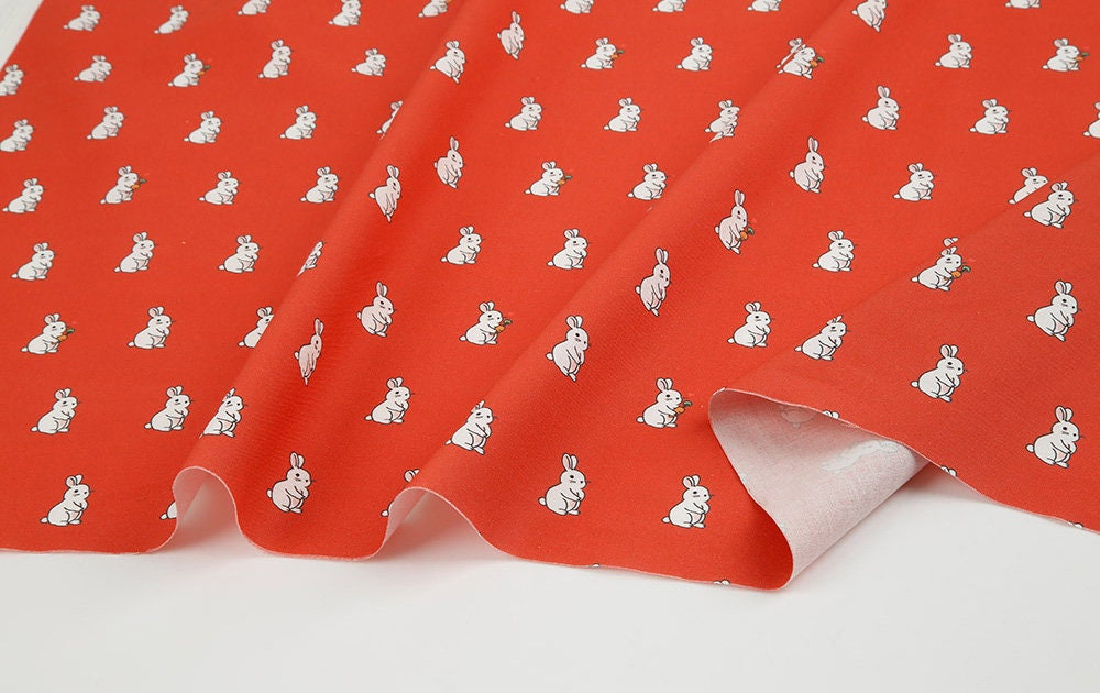 Rabbit Bunny Peach Patterned Fabric - Korean Fabric