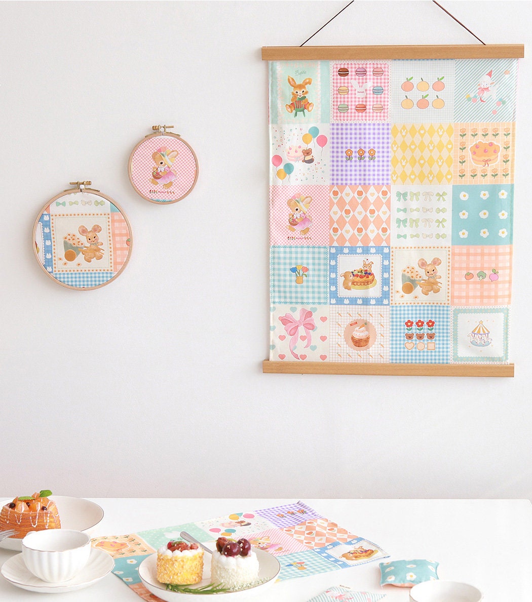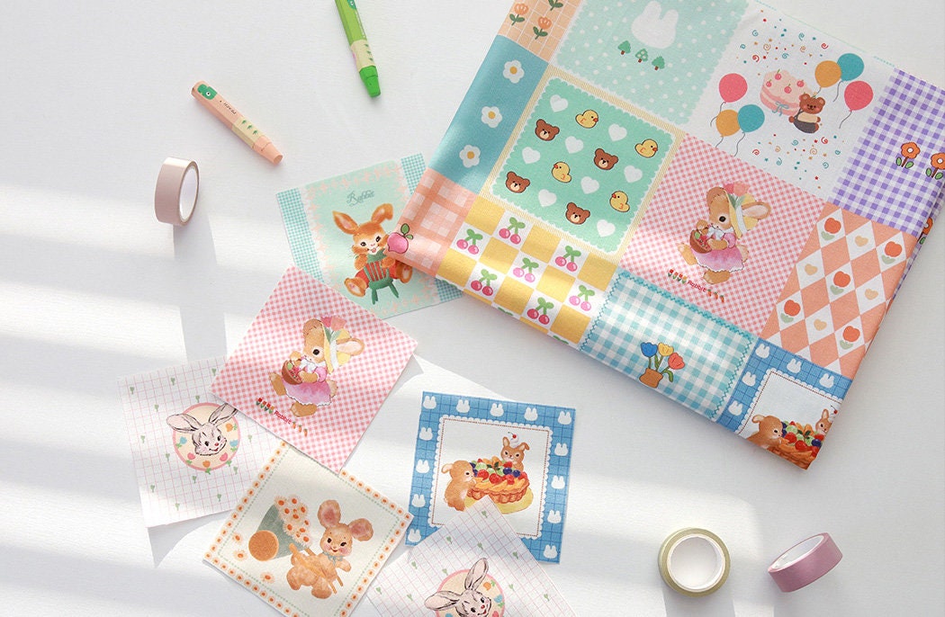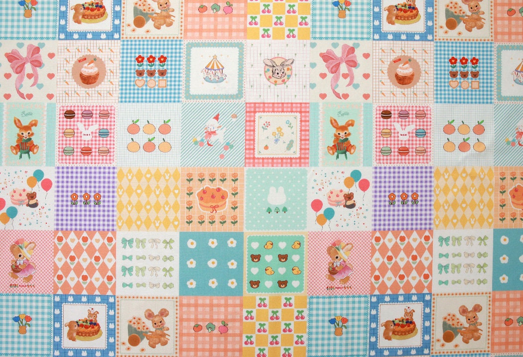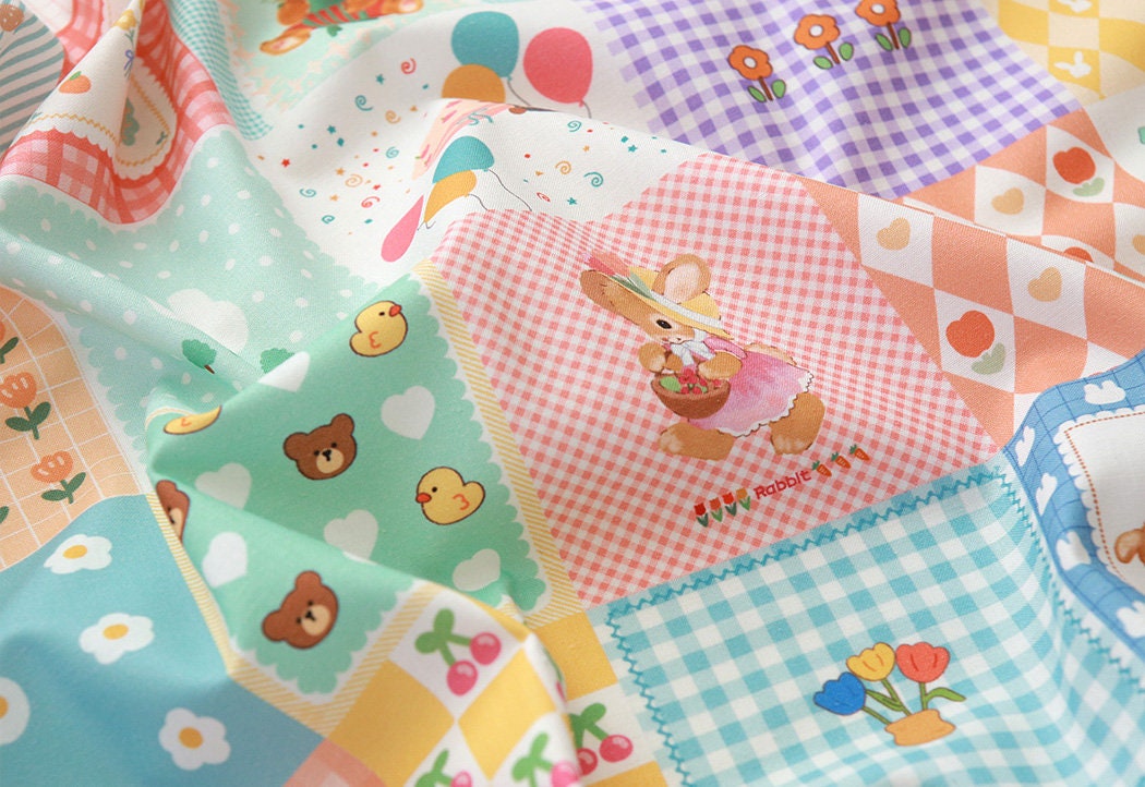 Cute Bunny Flower Patch Patterned Organic Fabric - Korean Fabric