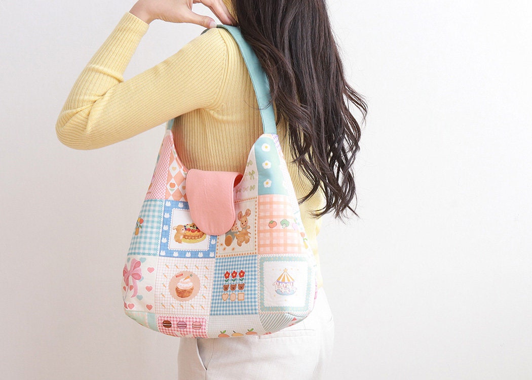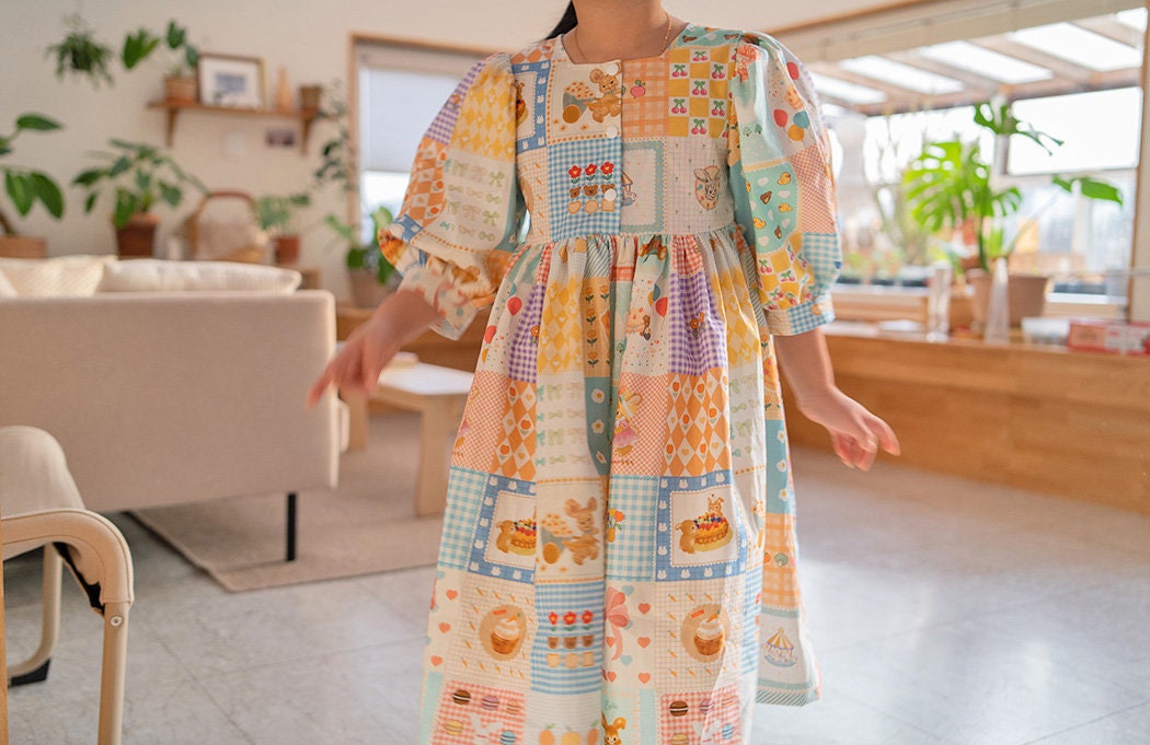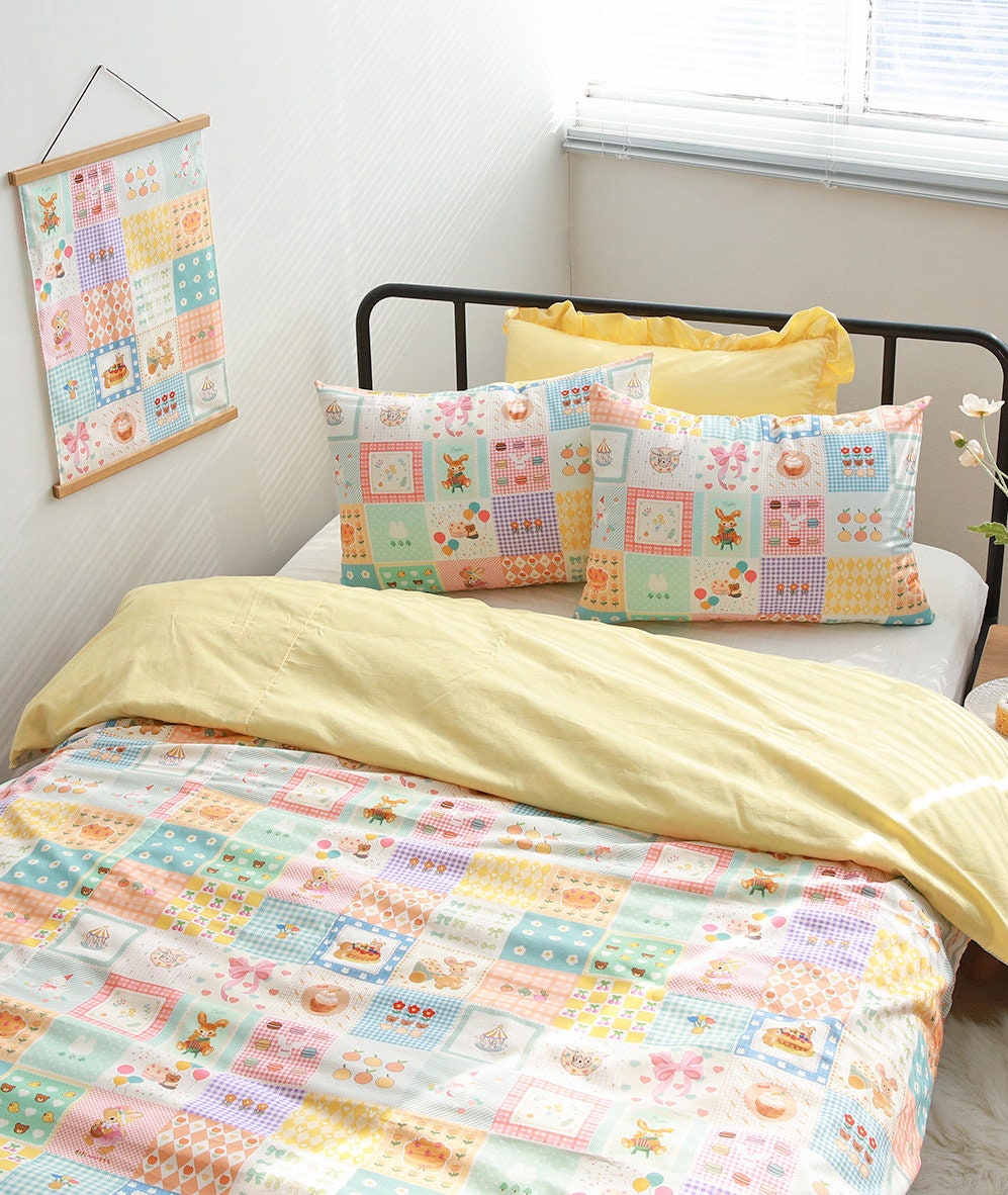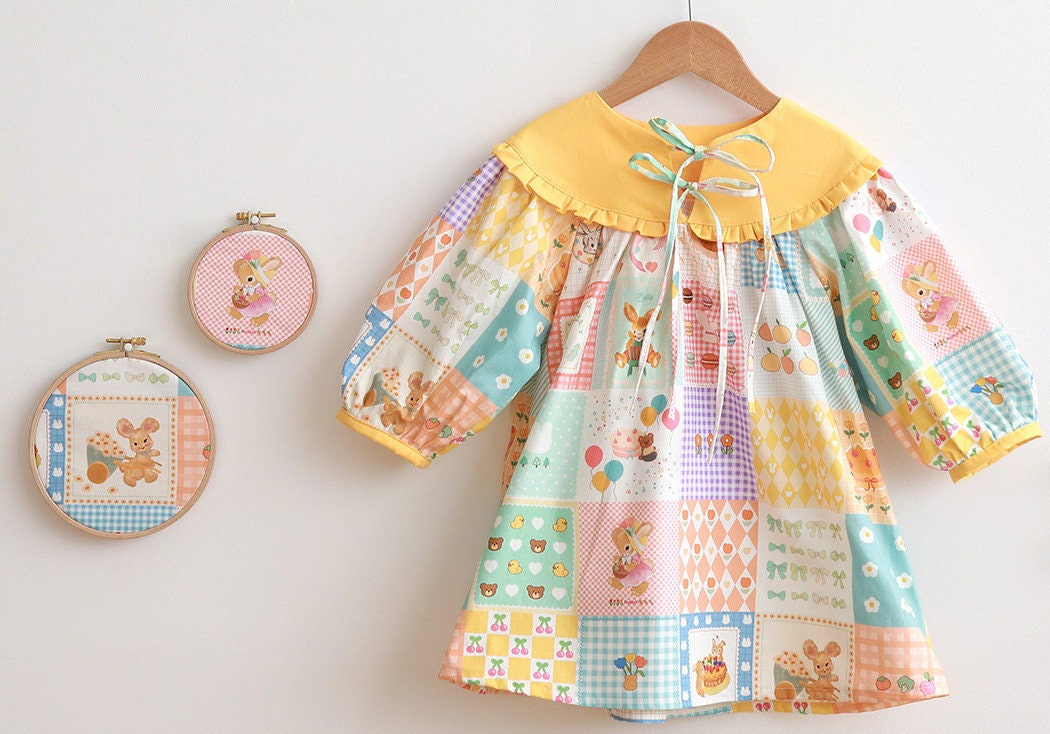 Cute Bunny Flower Patch Patterned Organic Fabric - Korean Fabric