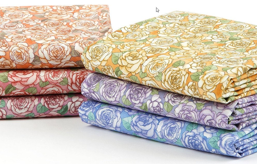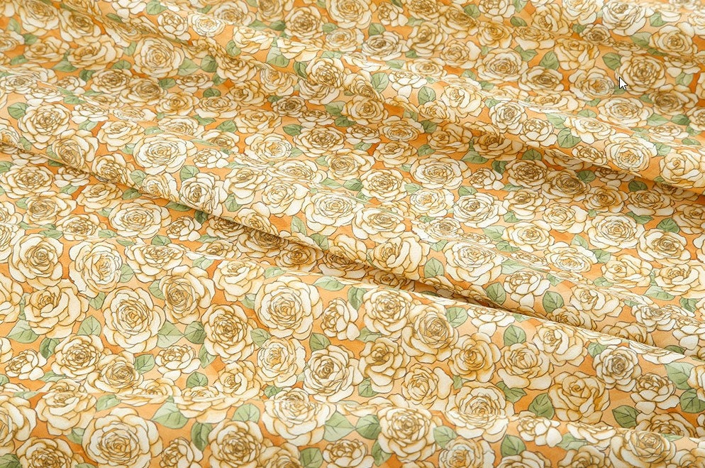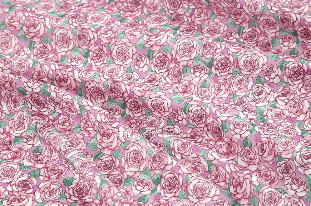 Romantic Rose Flower Floral patterned Fabric, Flower Fabric Fabric - Korean Fabric
