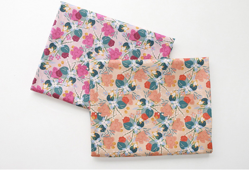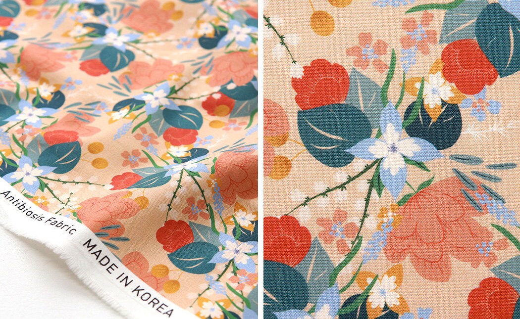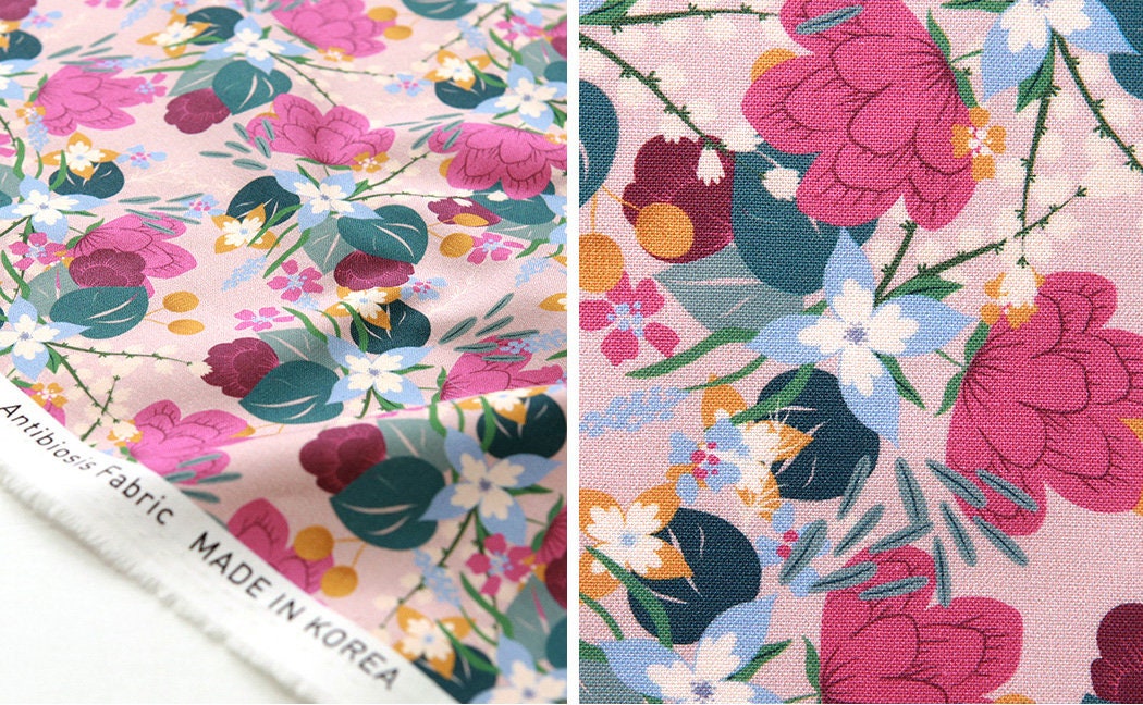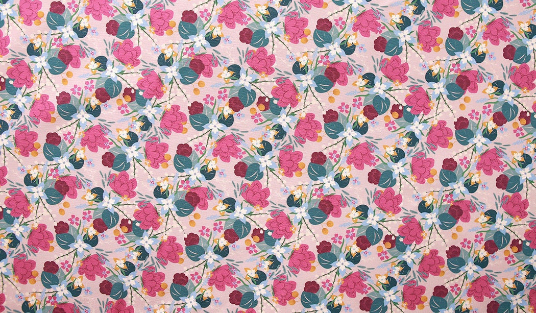Water Lily Lotus Flower Patterned Fabric - Korean Fabric