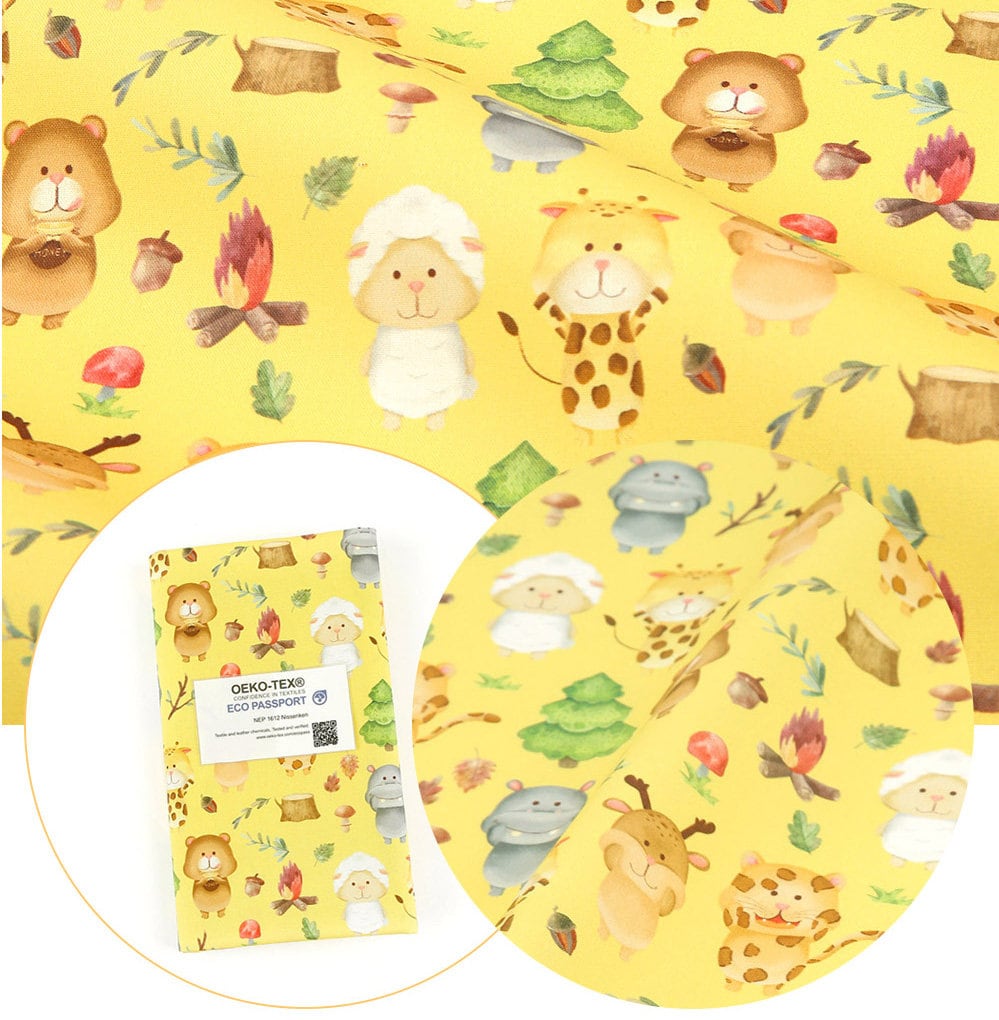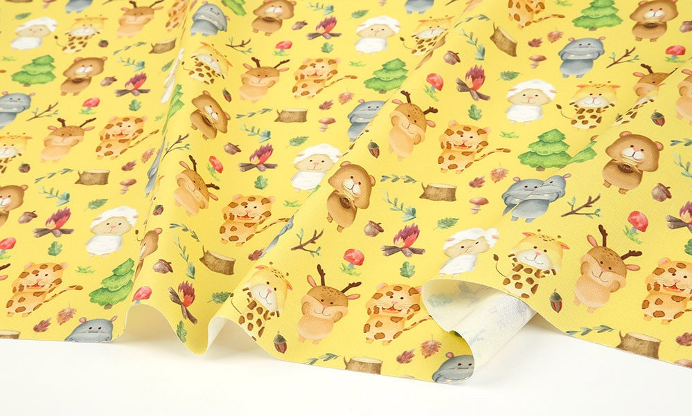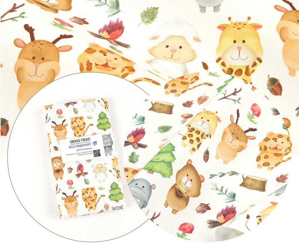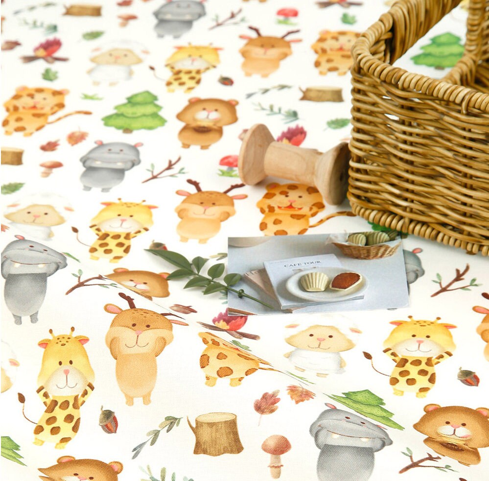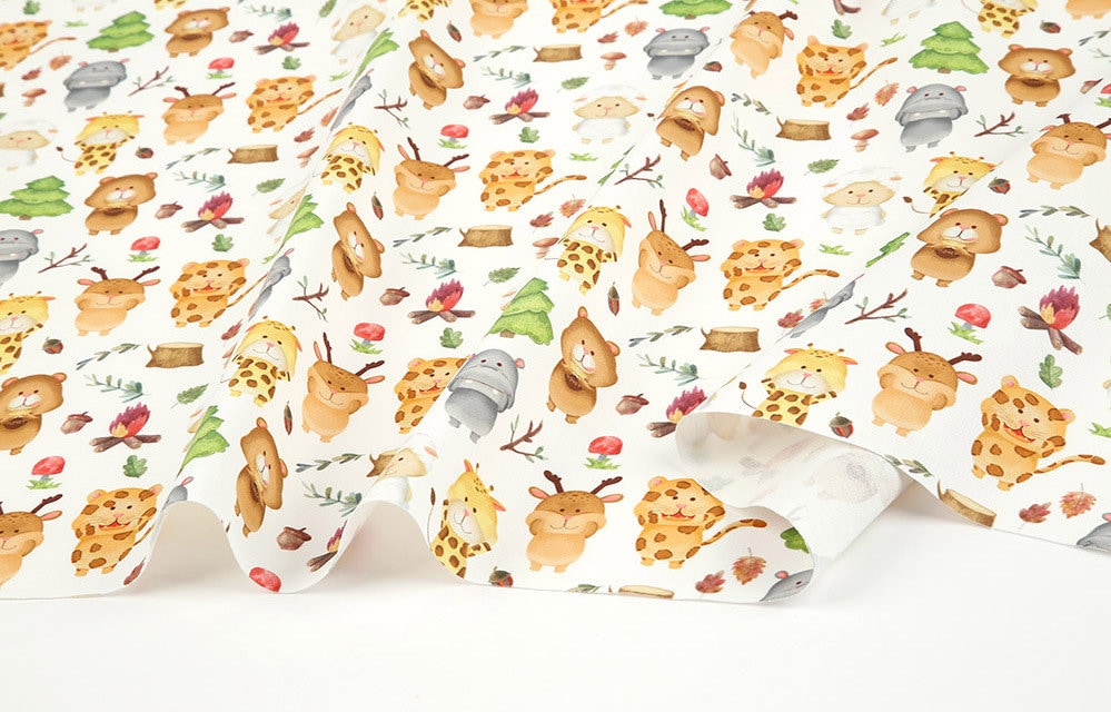 OEKO-TEX Animals Forest Hippo Deer Bear Camping Patterned Fabric - Korean Fabric