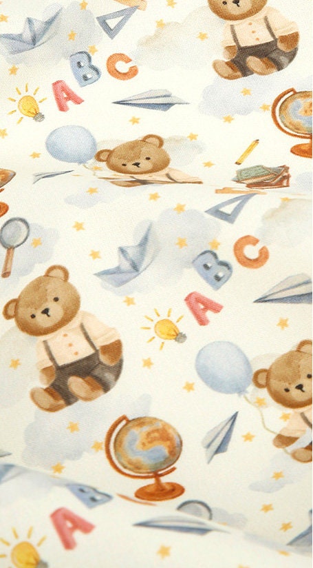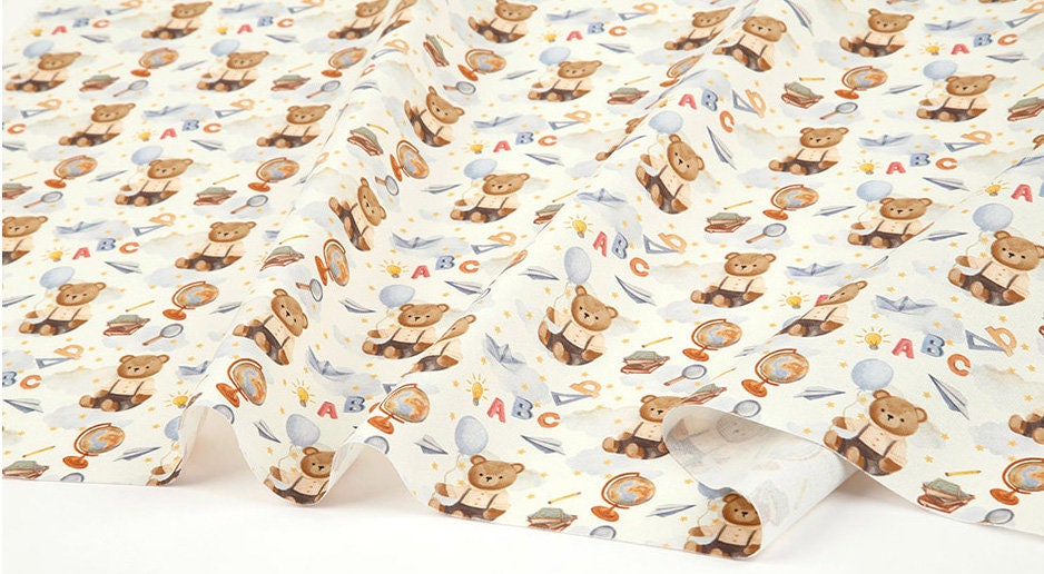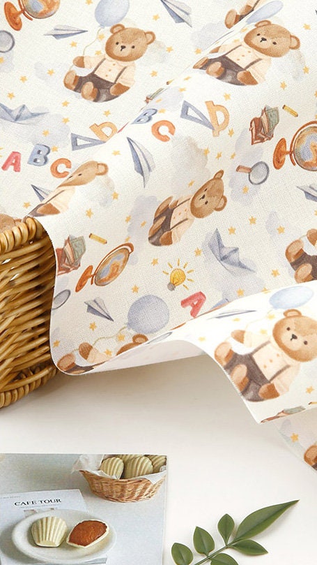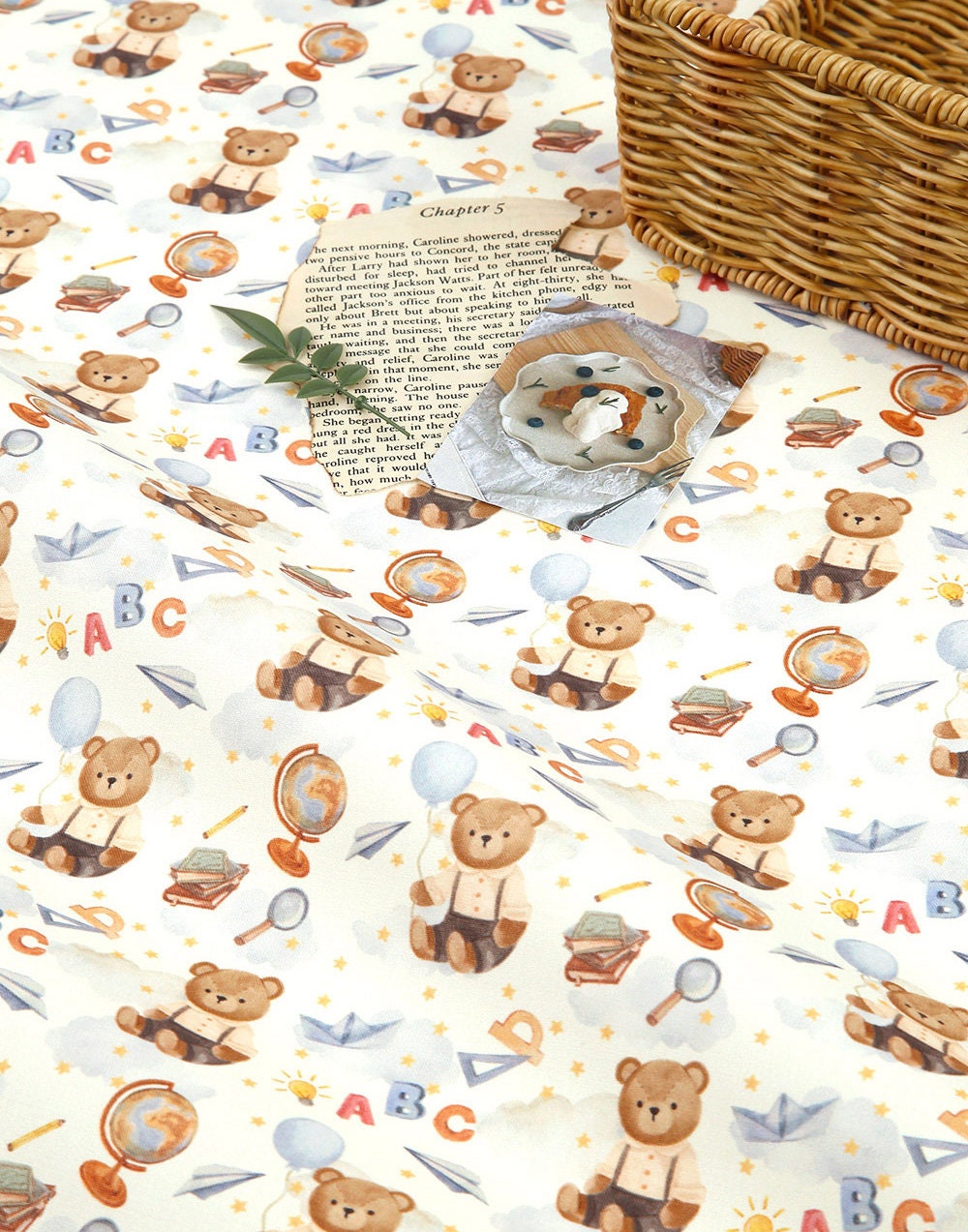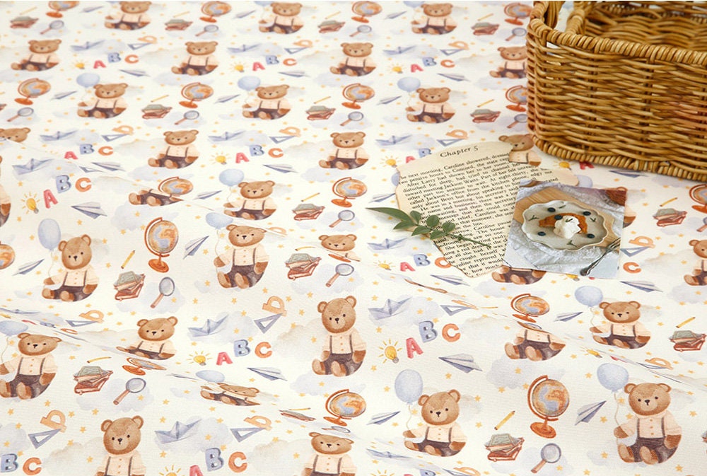 OEKO-TEX Animals Shirts Teddy Bear Patterned Fabric - Korean Fabric