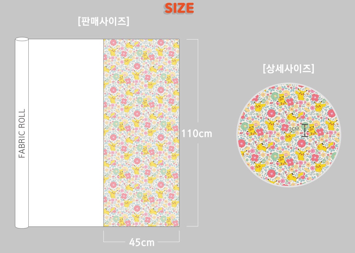 Pocket Monster, Pikachu & Flower Garden Character Fabric made in Korea