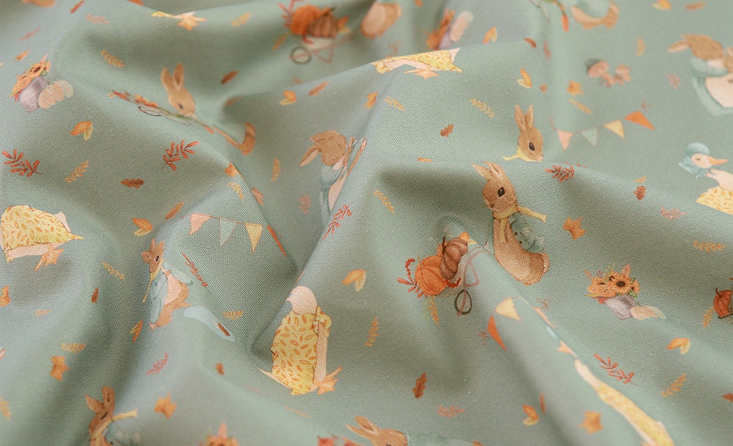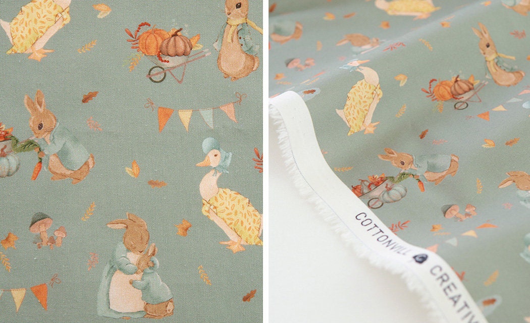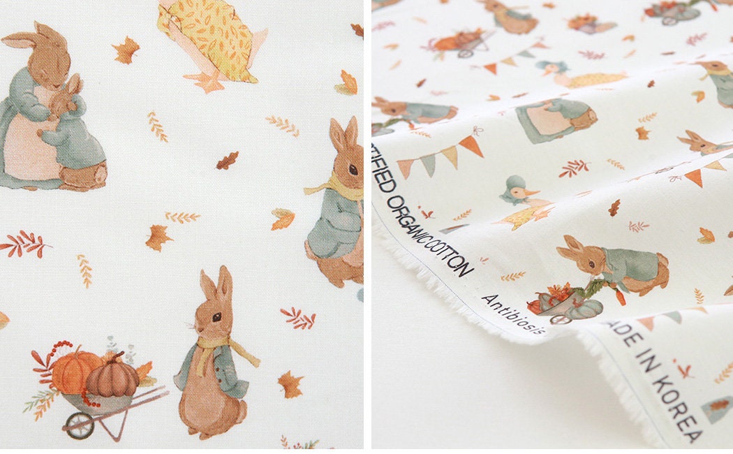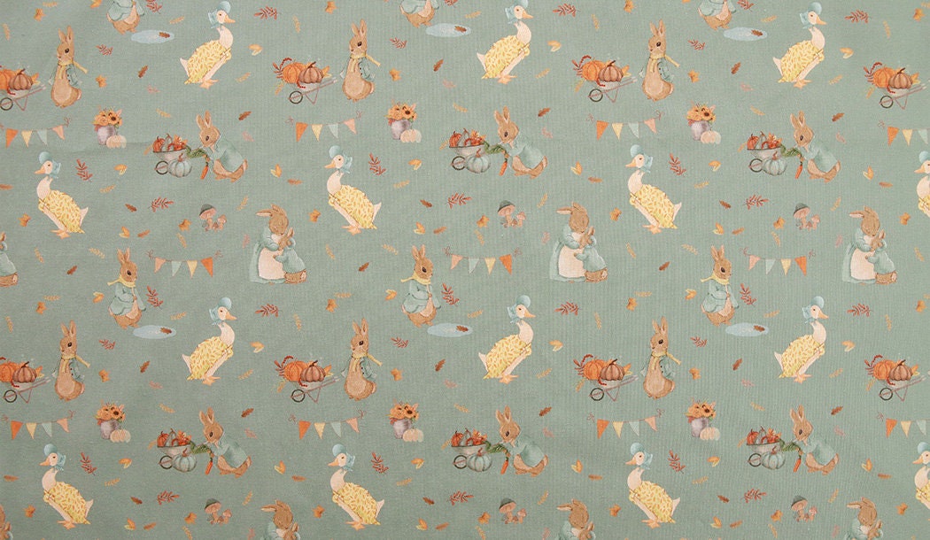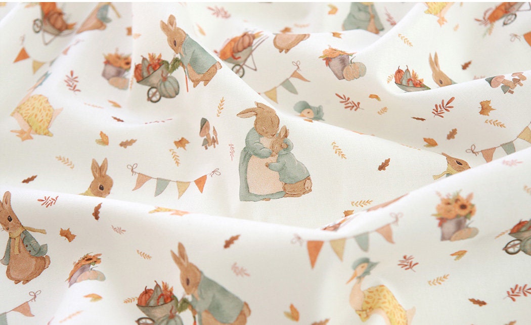 Peater Rabbit Bunny Acorn Patterned Fabric - Korean Fabric