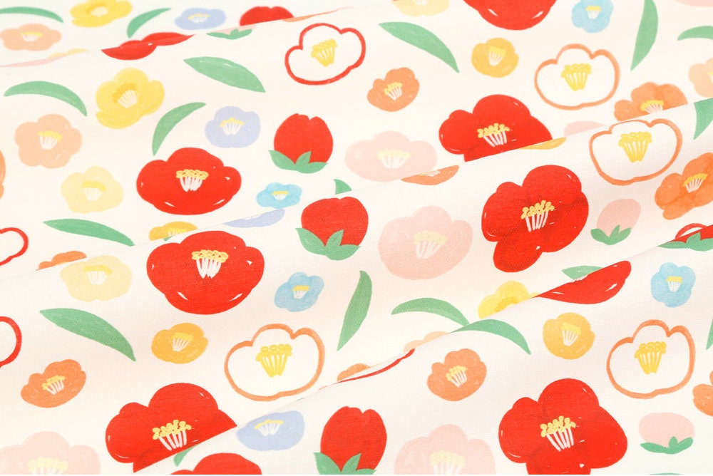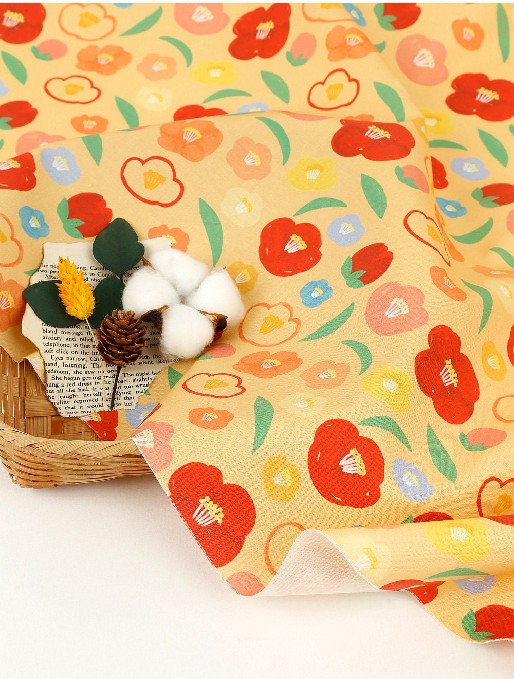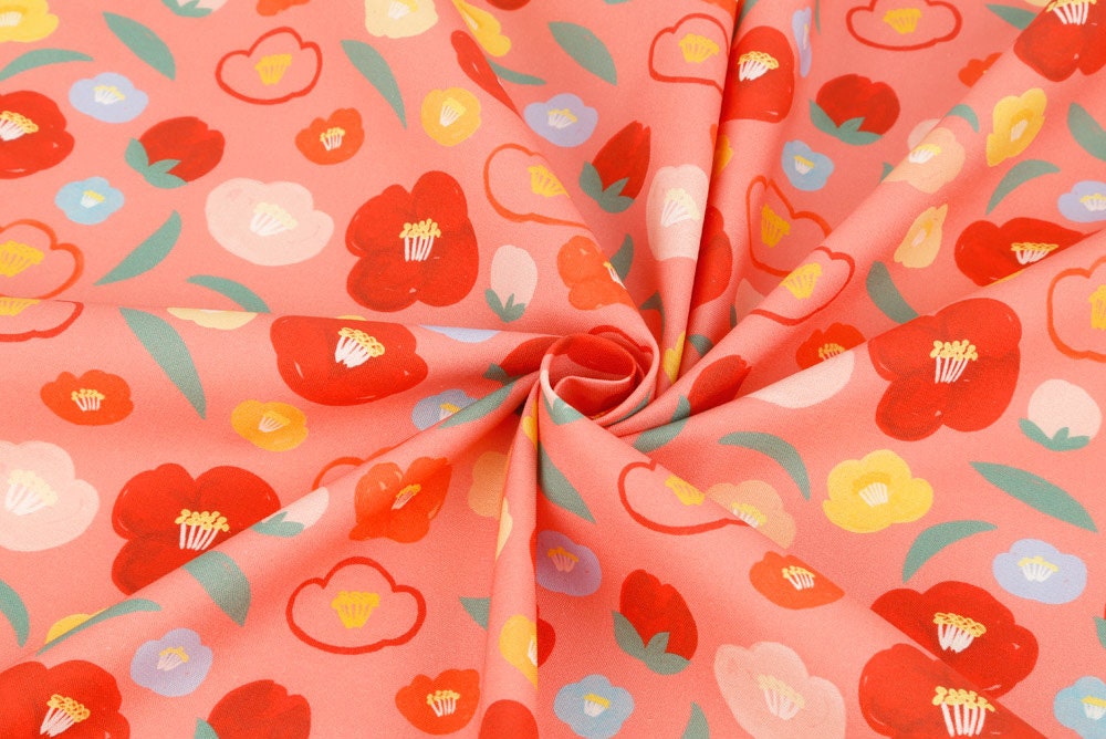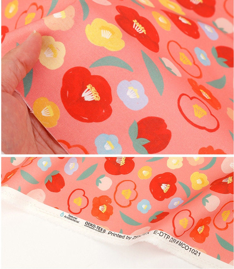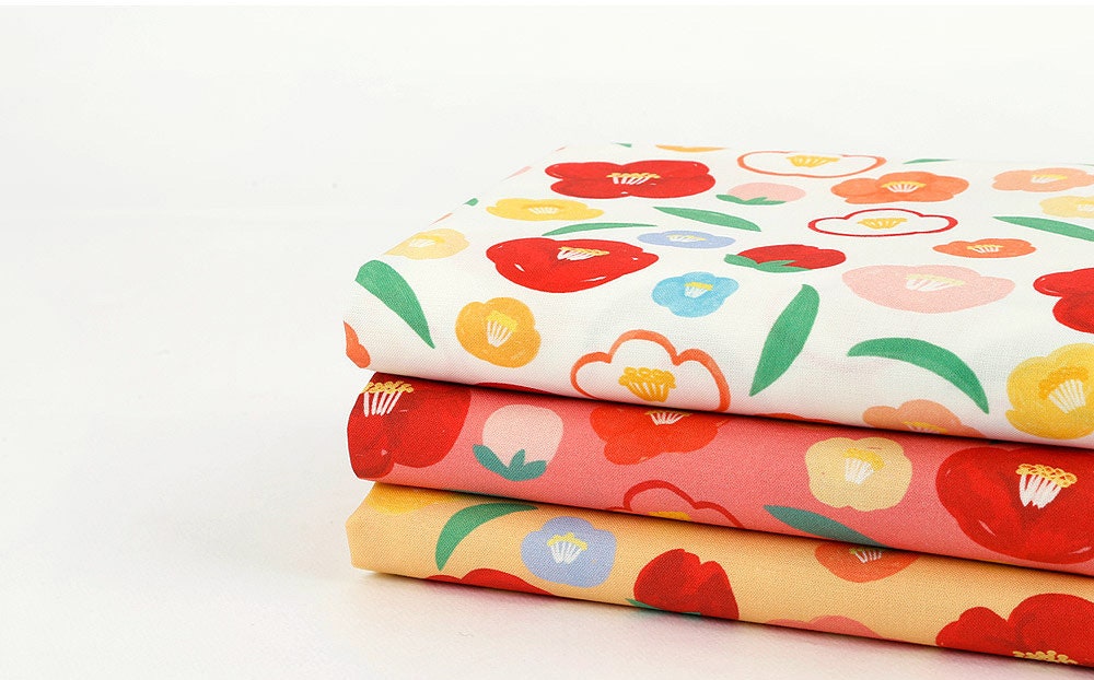 Drawing Camellia Flower OEKO-TEX Patterned Fabric - Korean Fabric