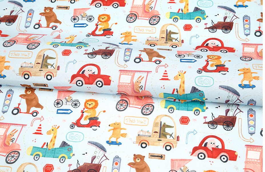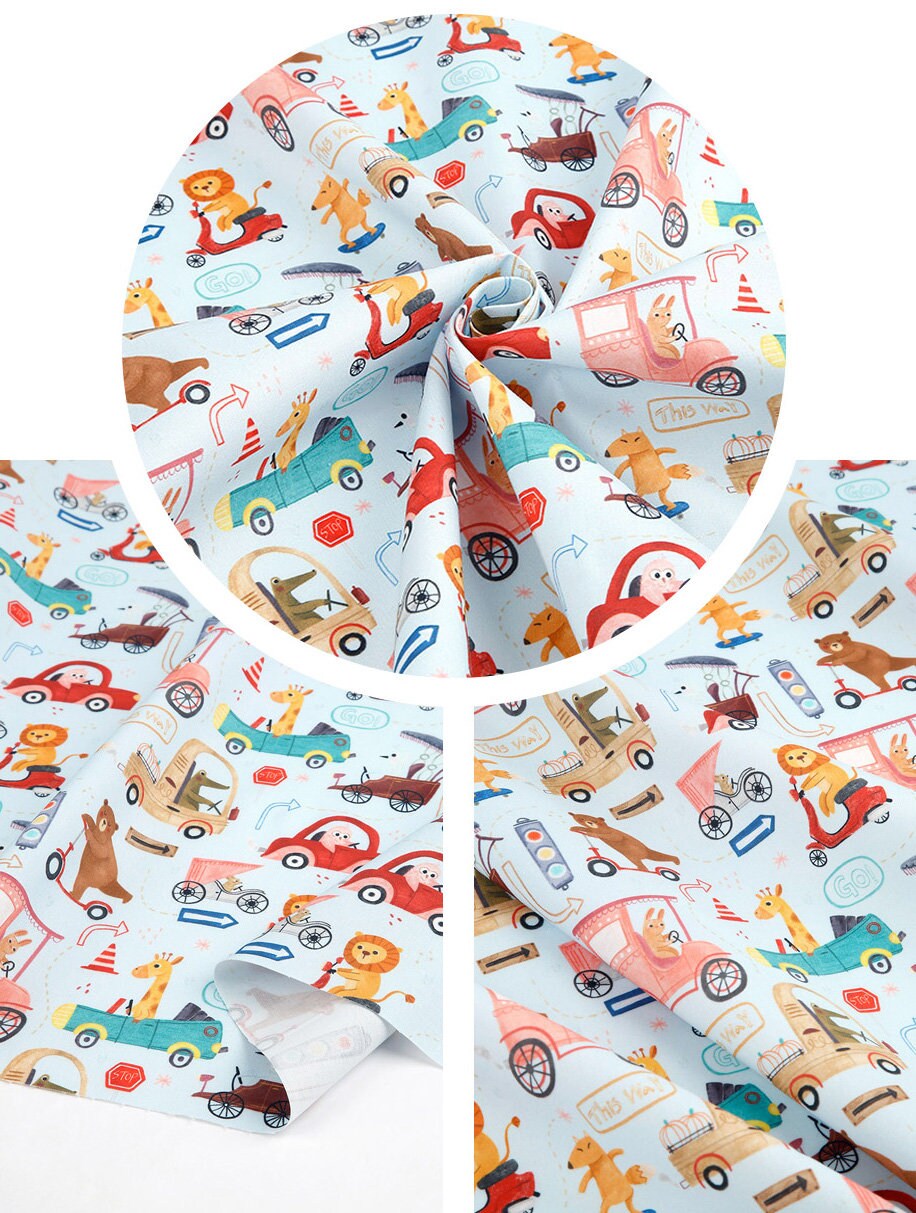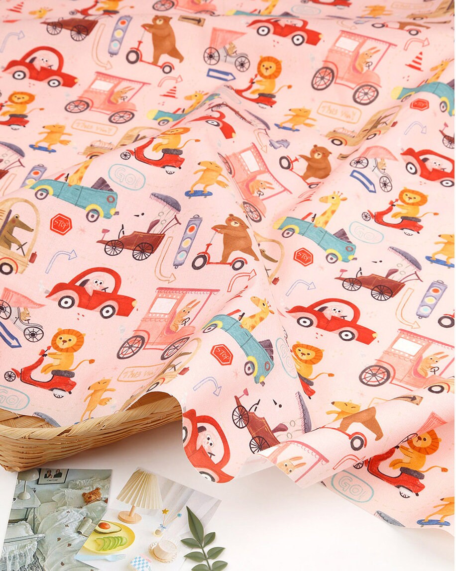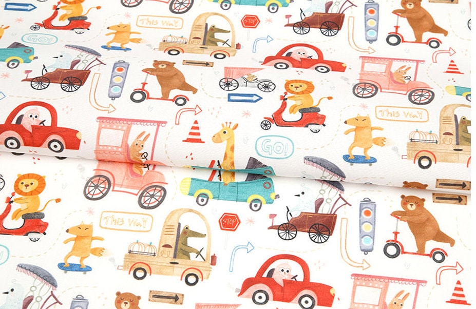Animal Traffic Bear Lion Fox Giraffe Patterned OEKO-TEX® - Korean Fabric