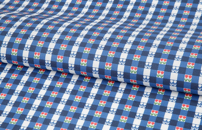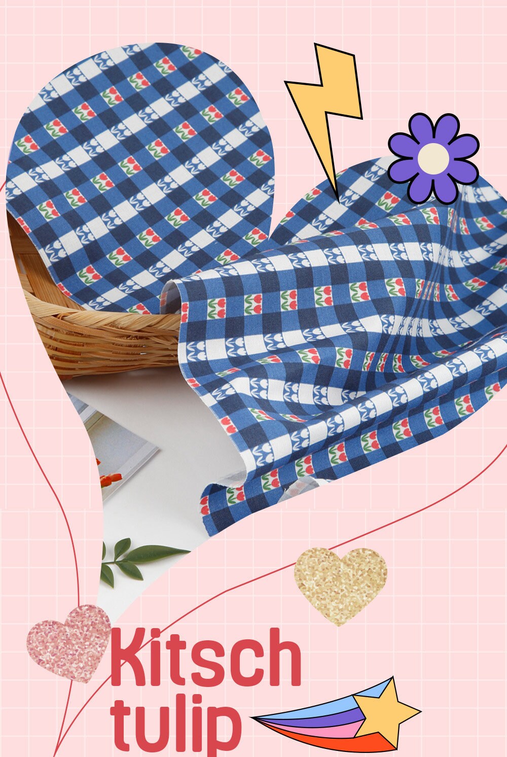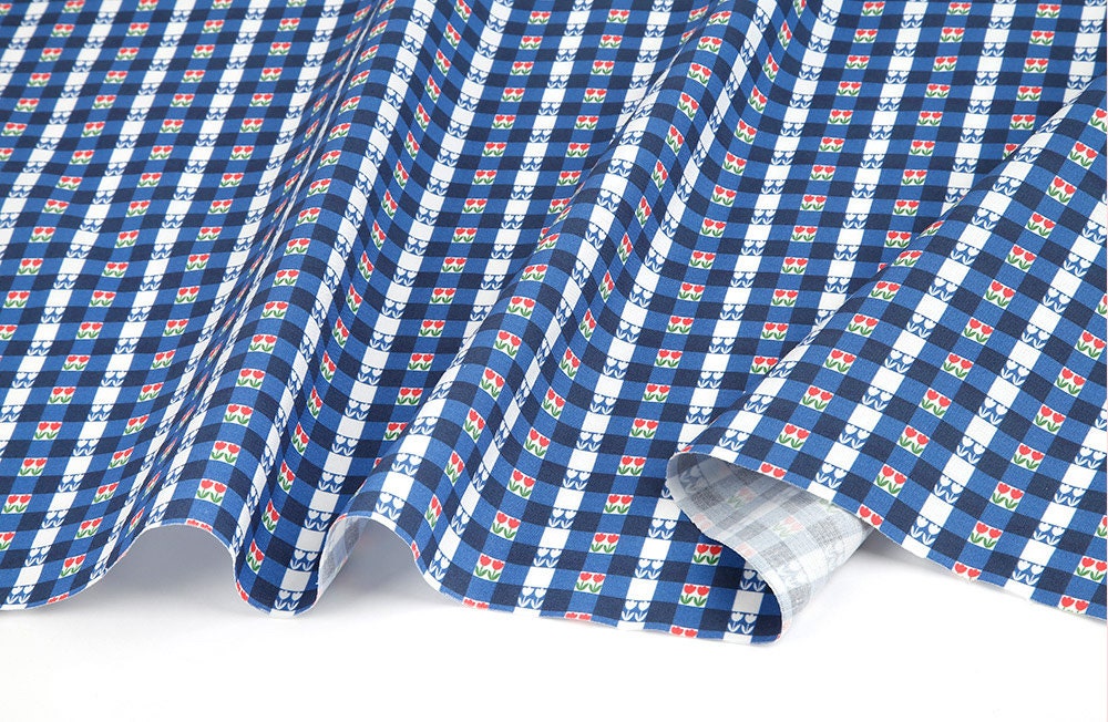 Retro Tulip Flower Blue Garden OEKO-TEX Patterned Fabric - Korean Fabric