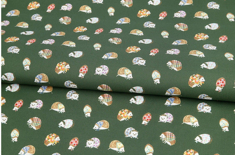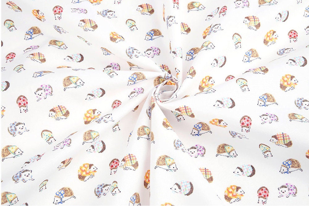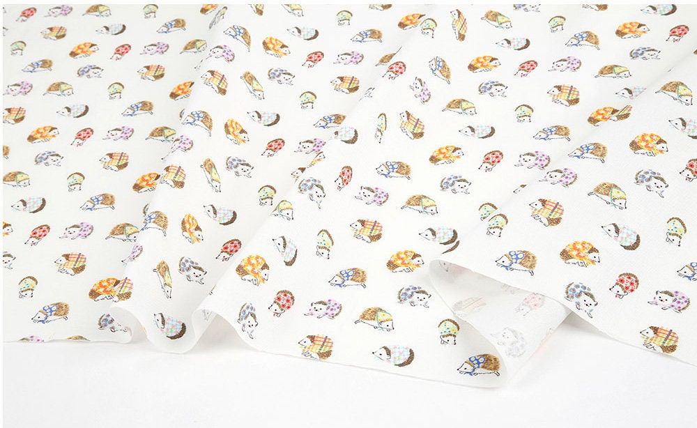 Cute Hedgehog Journey patterned Fabric, Animal Fabric Fabric - Korean Fabric