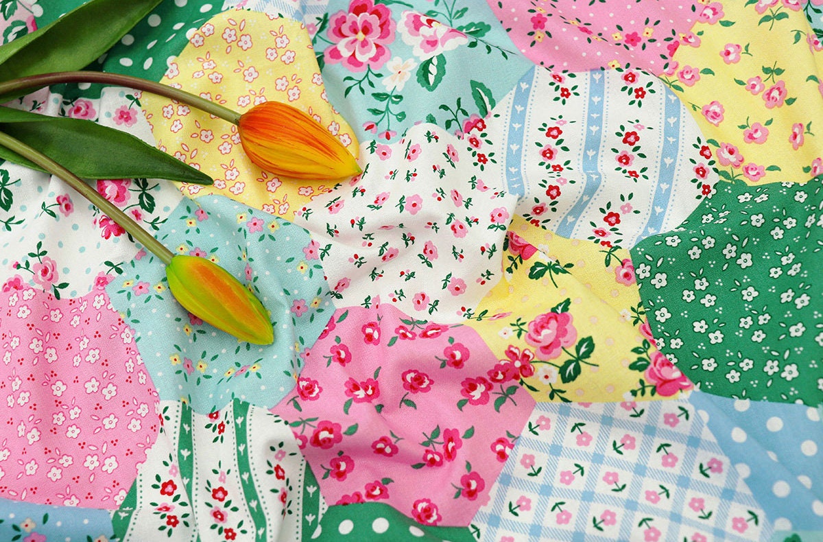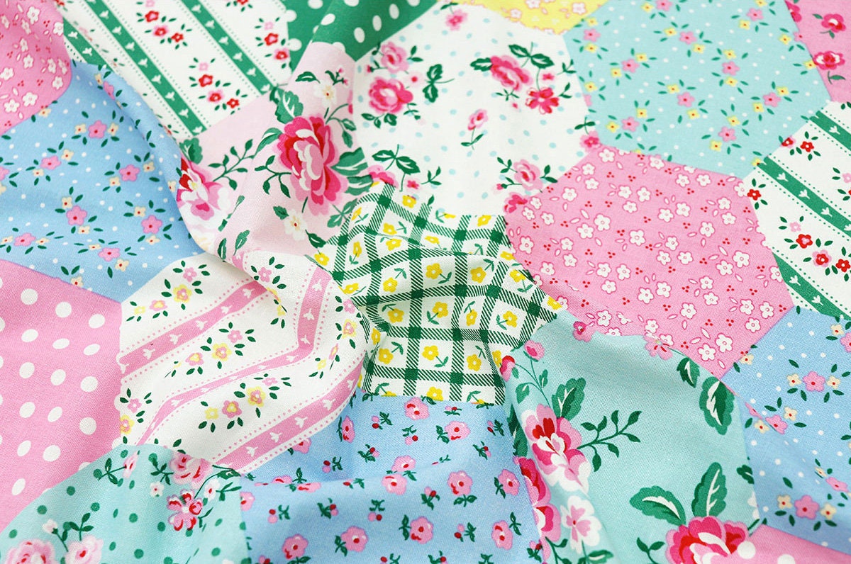 Melting Rose Flower Hexagon Patterned fabric - Korean Fabric