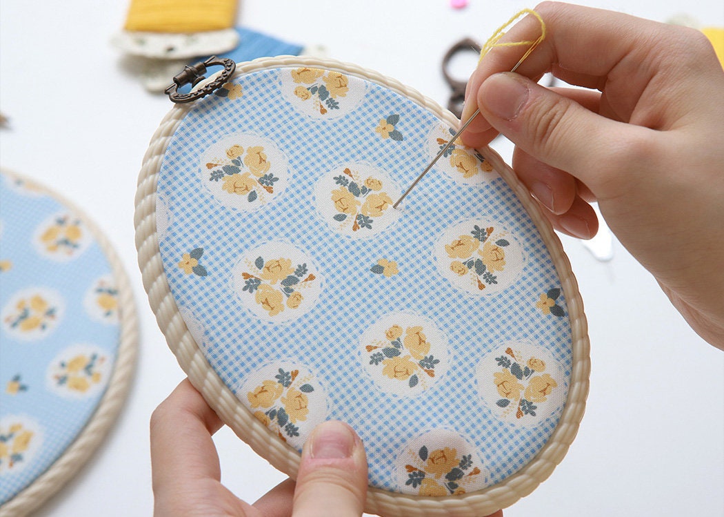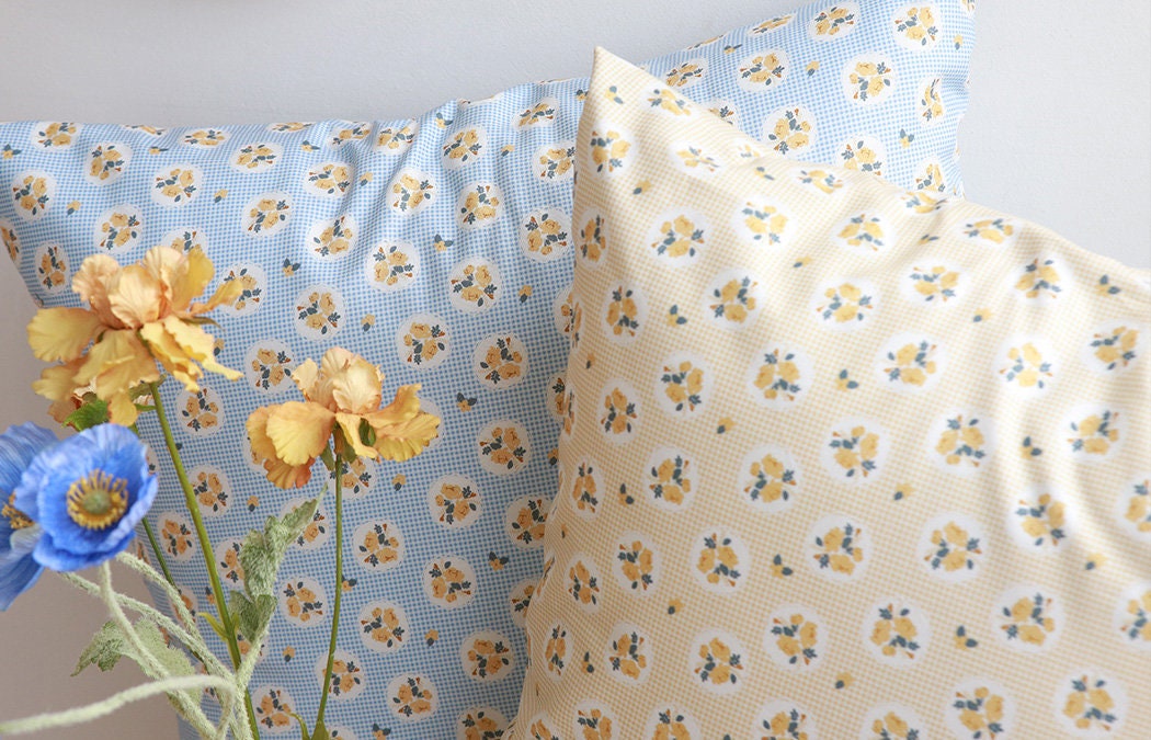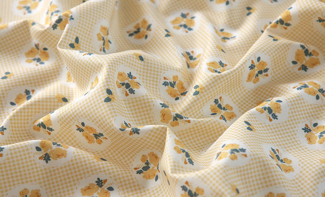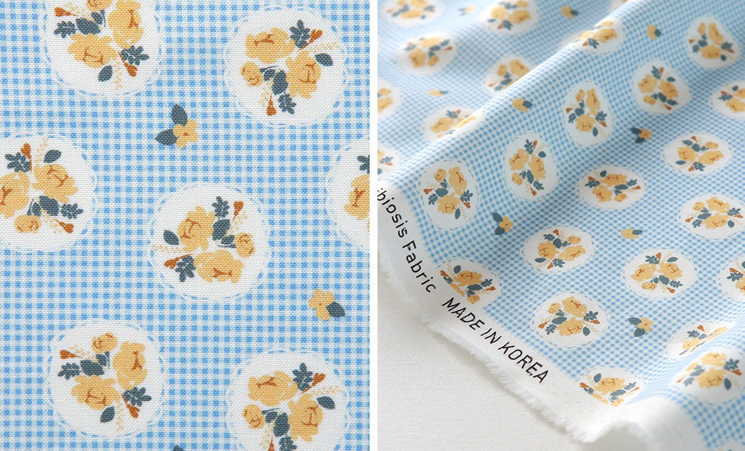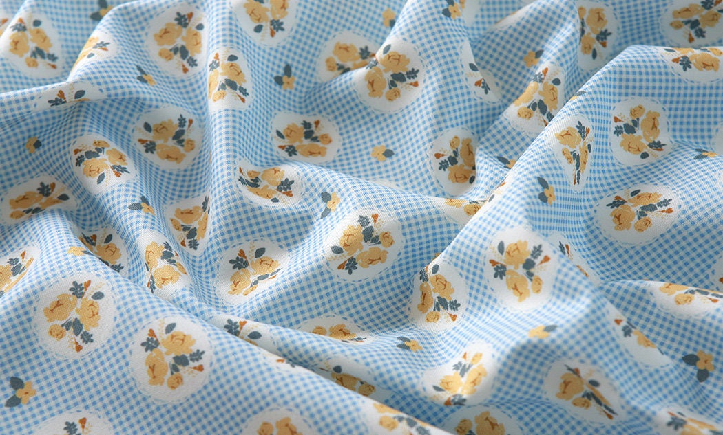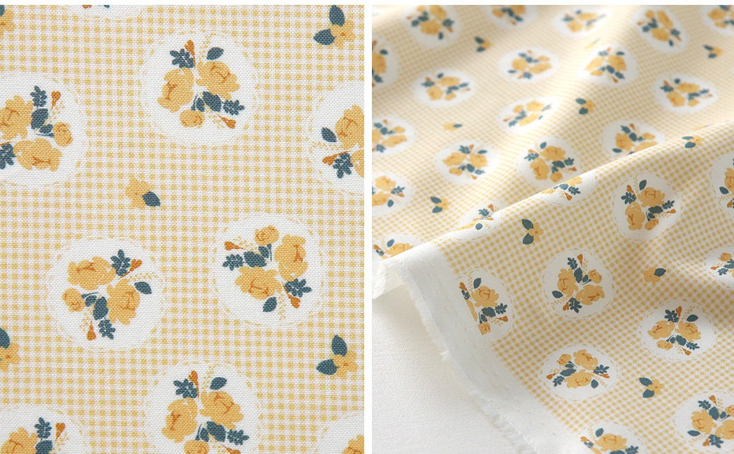 Retro Check Rose Flower Patterned Fabric, Cute, sewing, Quilt - Korean Fabric