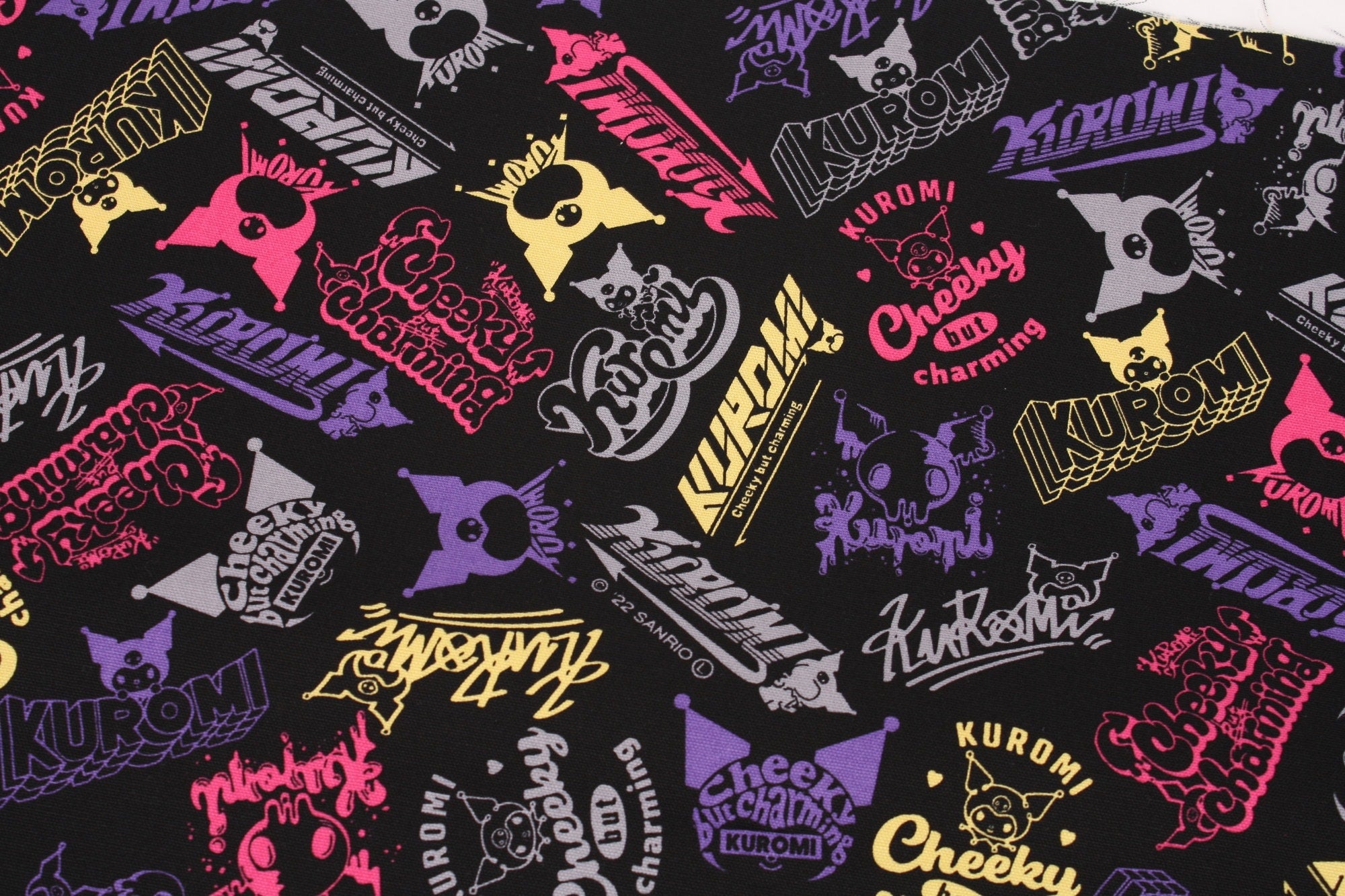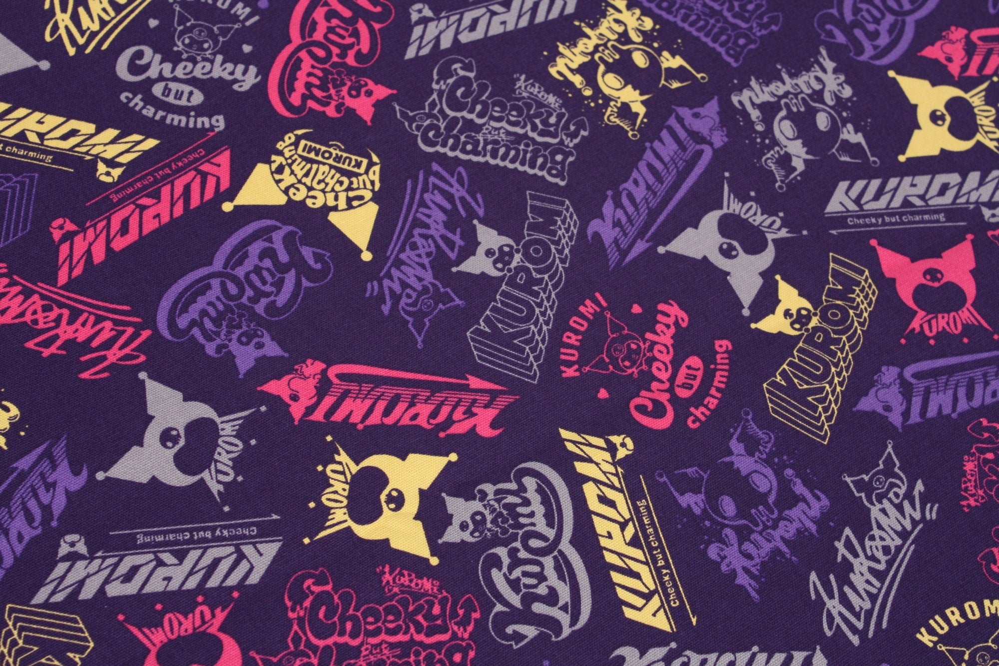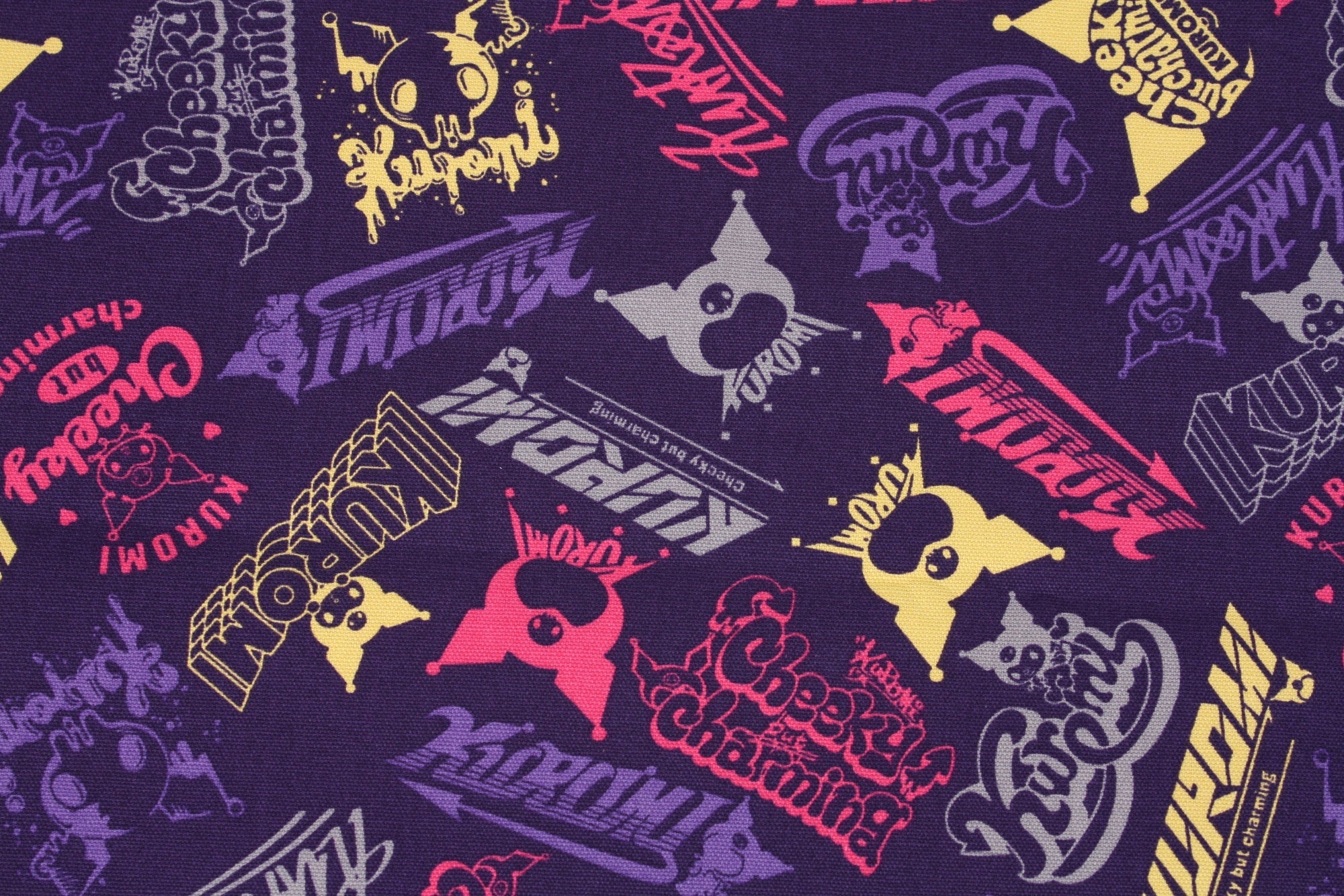 Sanrio My Melody Piano Kuromi Logo Oxford Character Fabric - Japanese Fabric