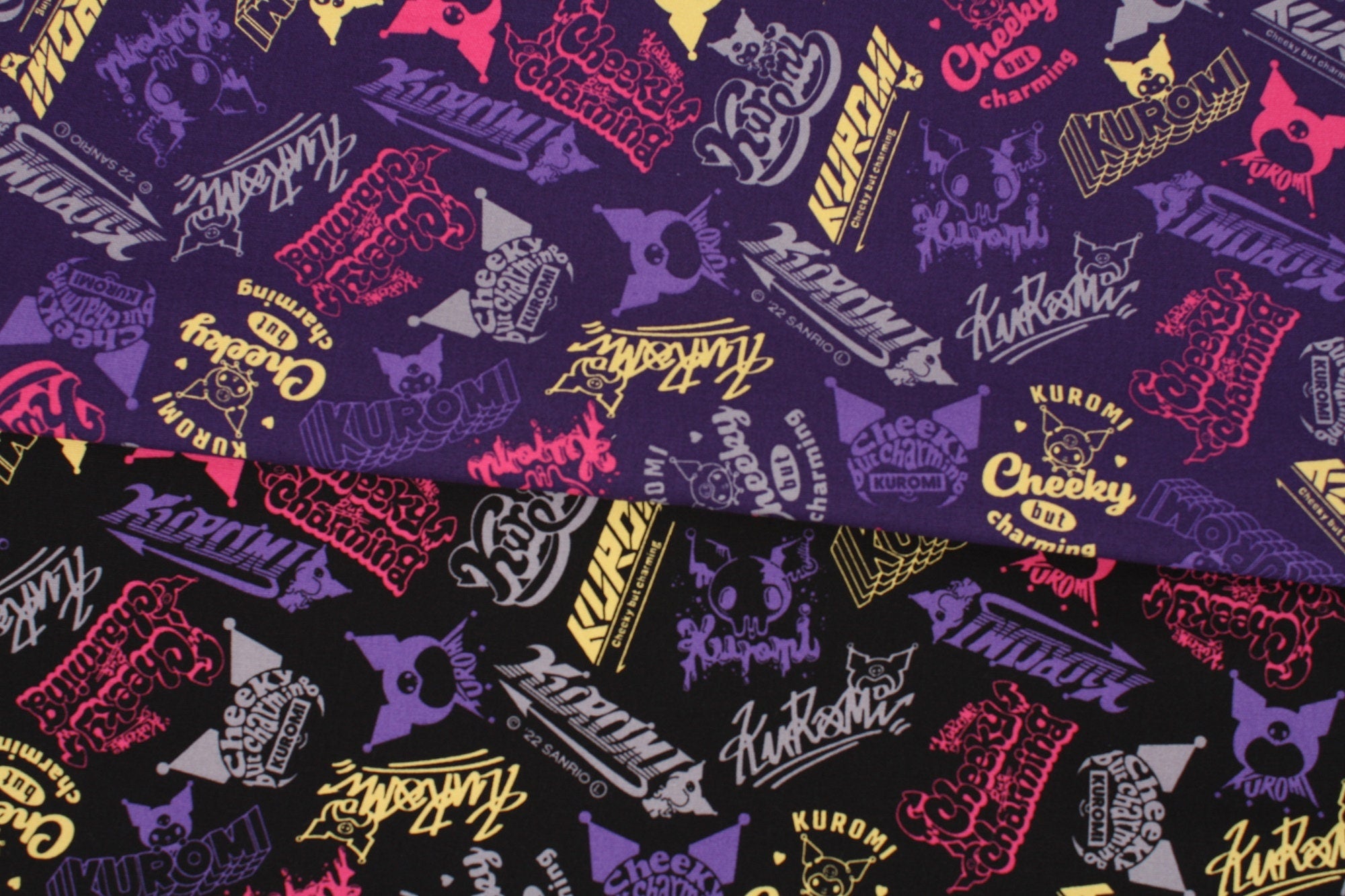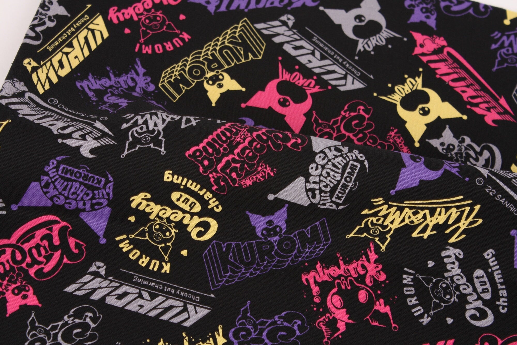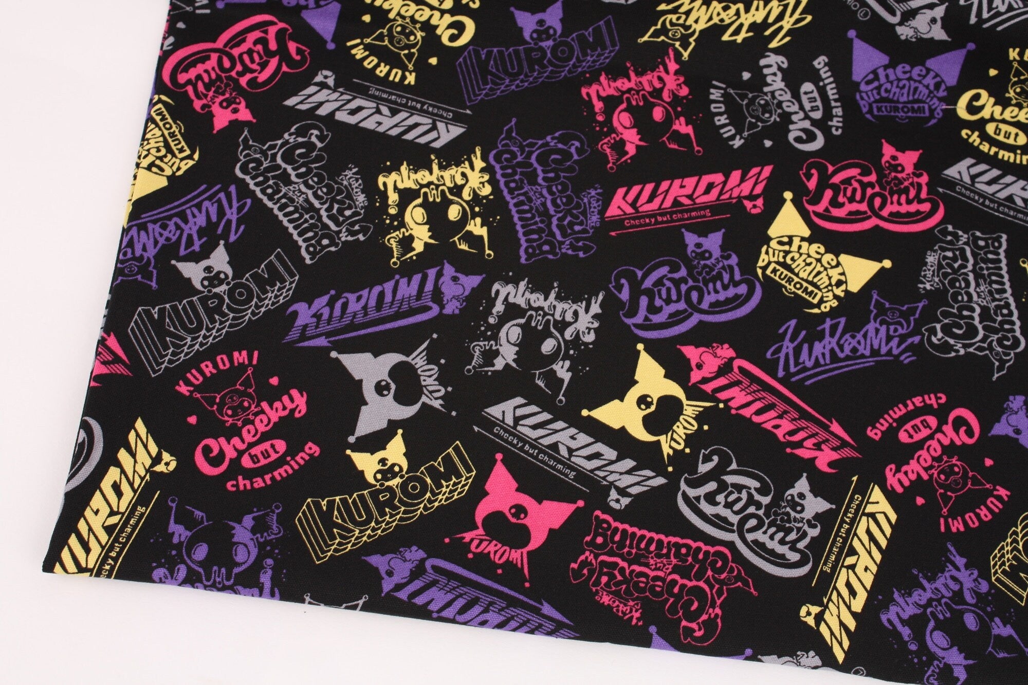 Sanrio My Melody Piano Kuromi Logo Oxford Character Fabric - Japanese Fabric