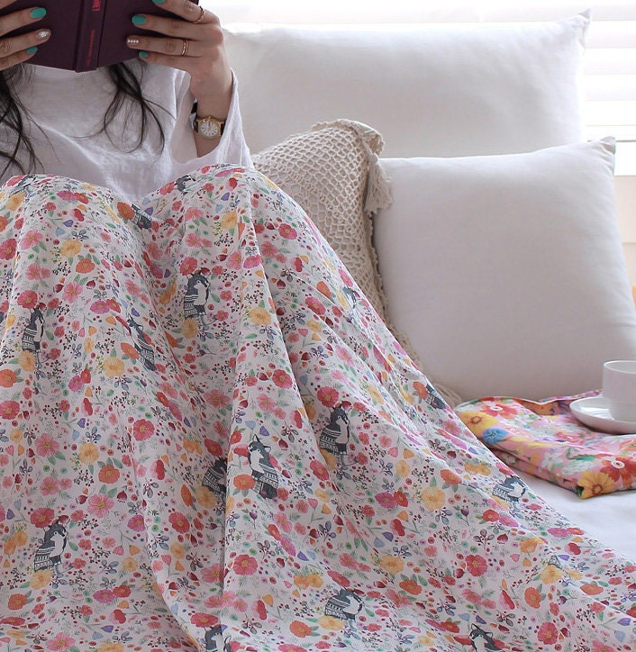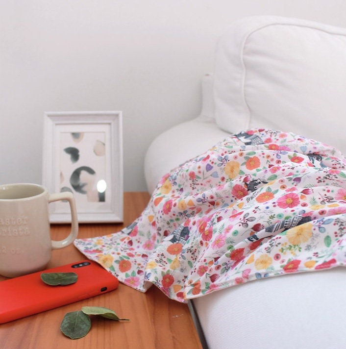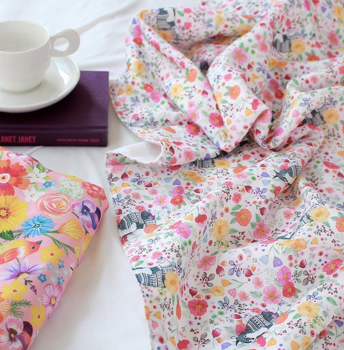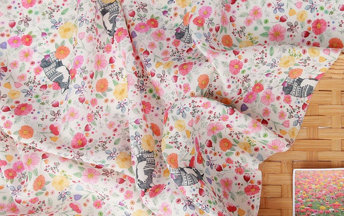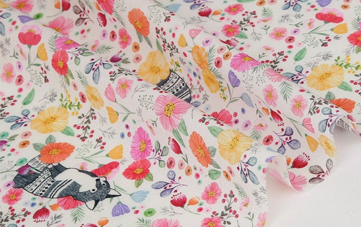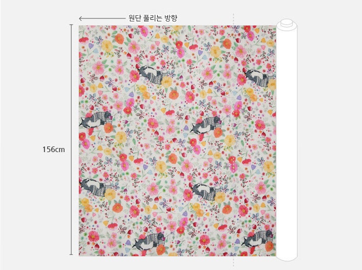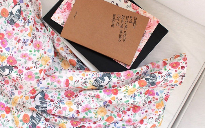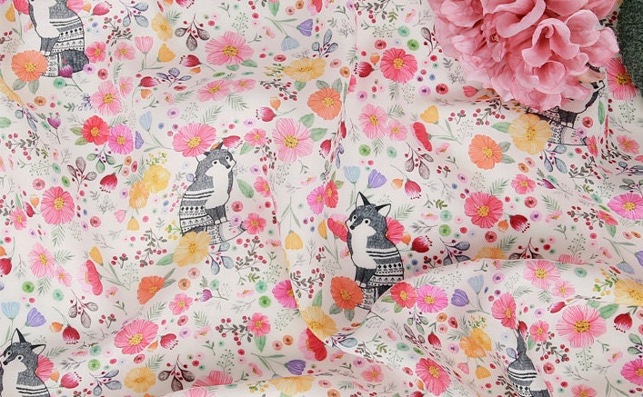 Lovely Fox and Flower Patterned Fabric - Korean Fabric
