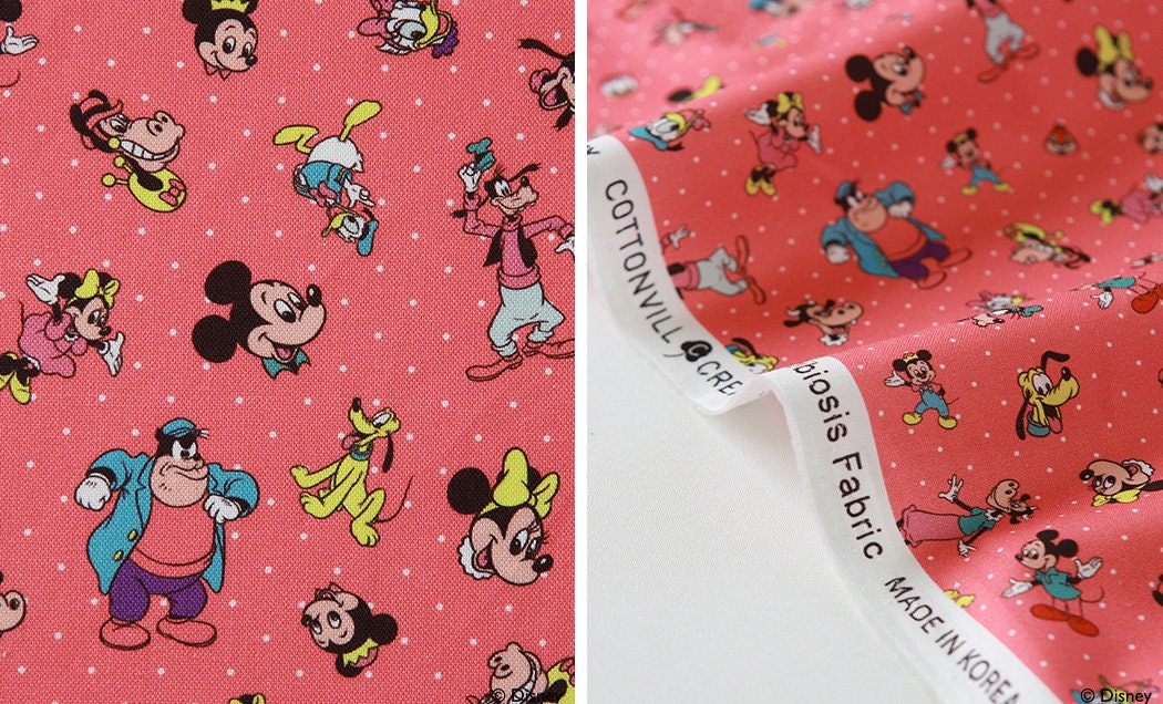 Disney Mickey Mouse Friends Retro Fabric made in Korea