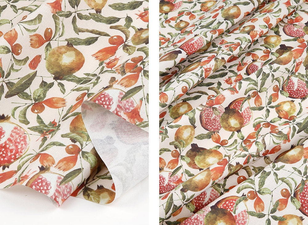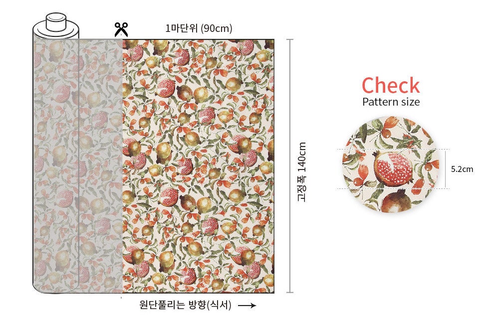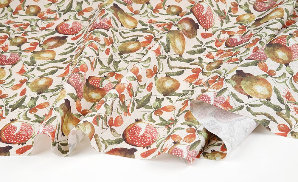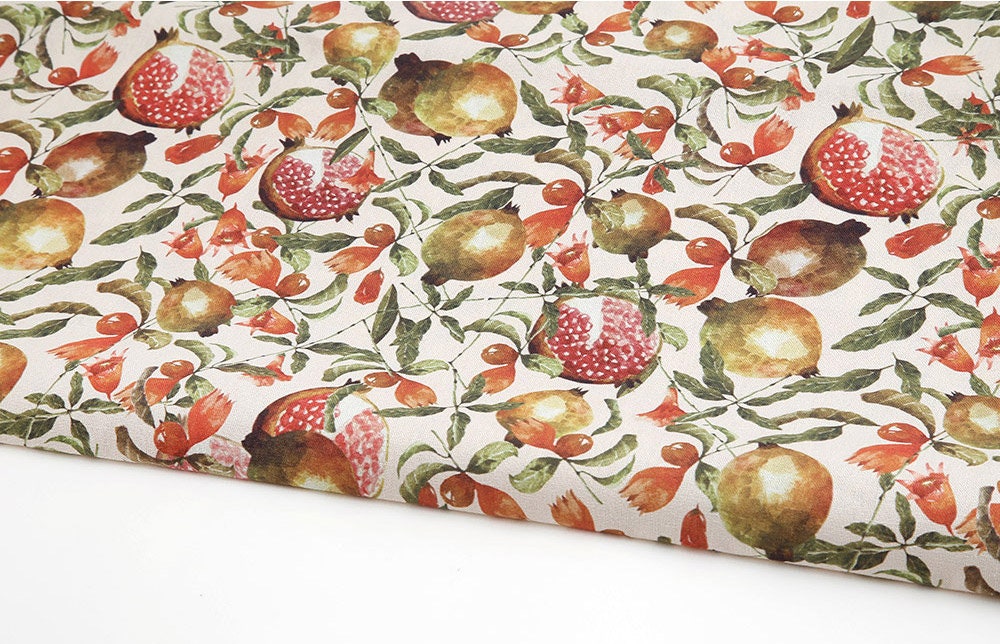 Fruits Pomegranate patterned Cotton Linen fabric - Korean Fabric