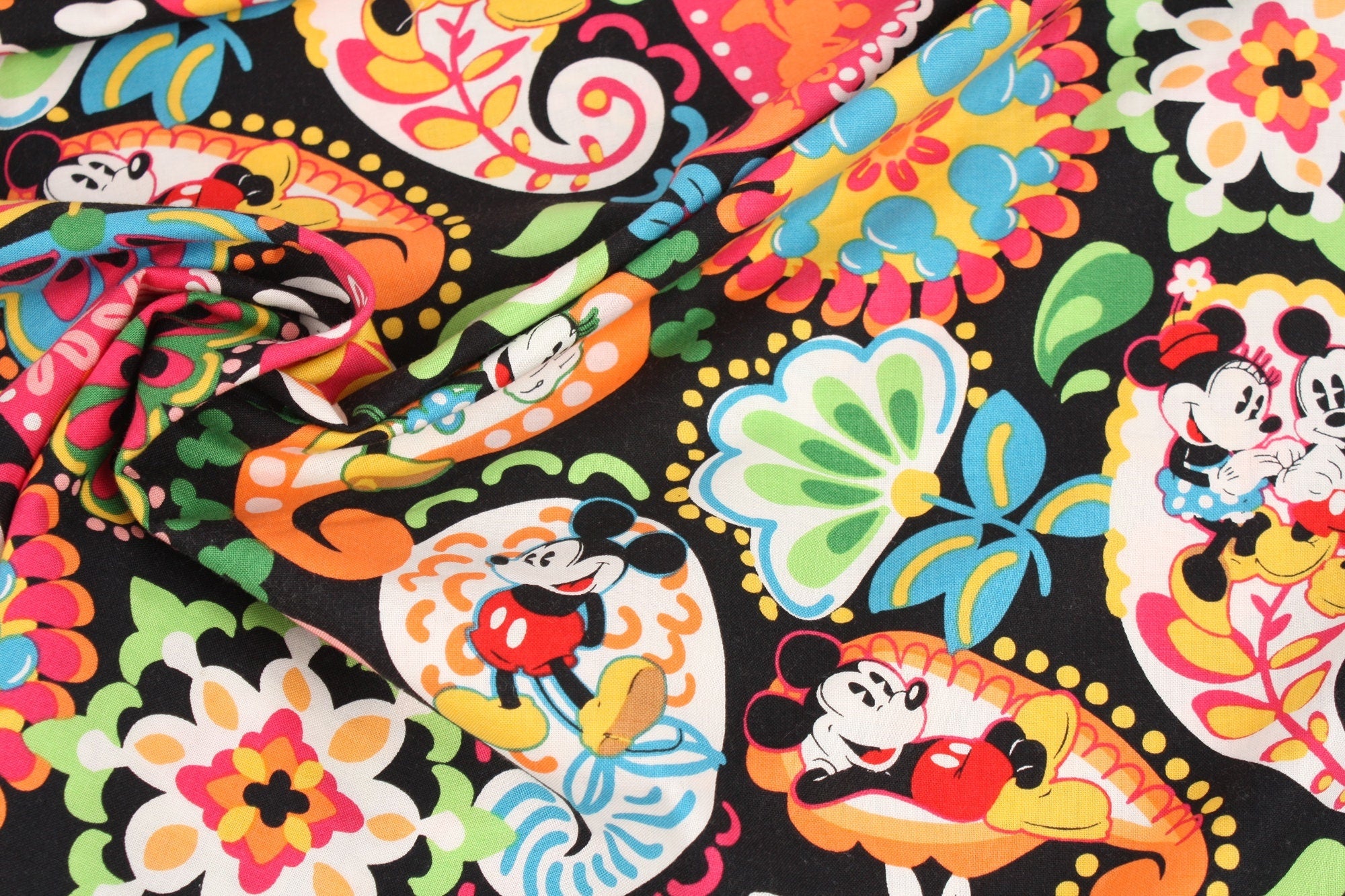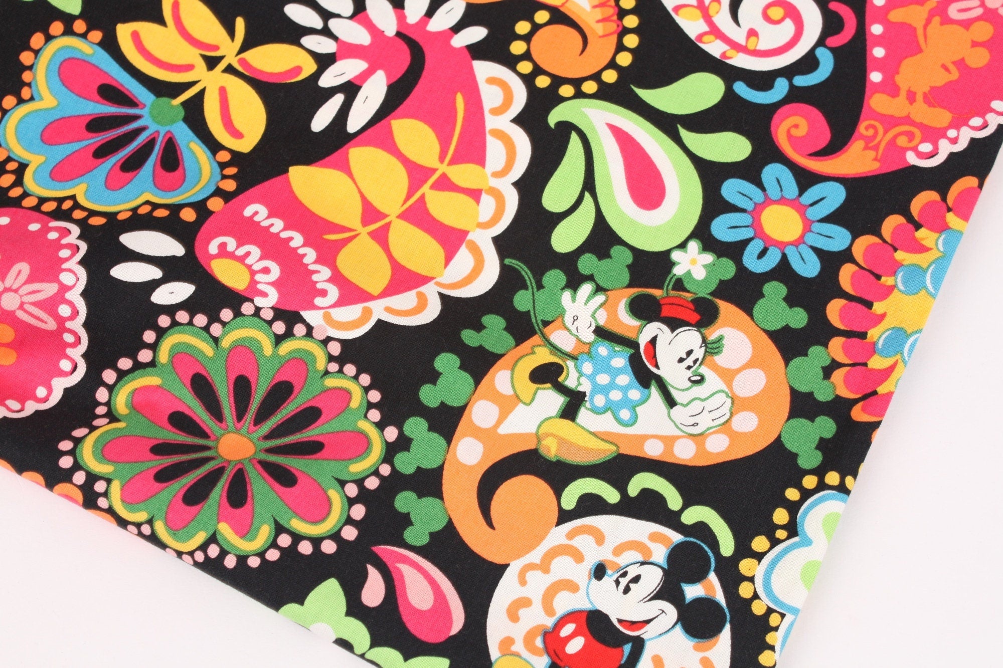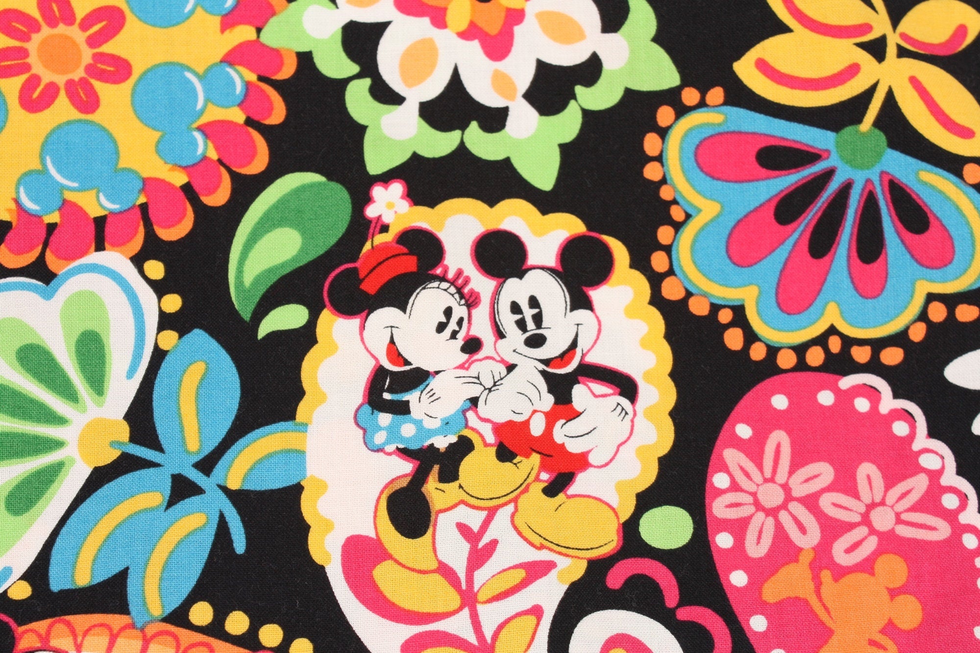Disney Mickey Mouse Minnie Mouse Tropical Flower Fabric printed in Korea
