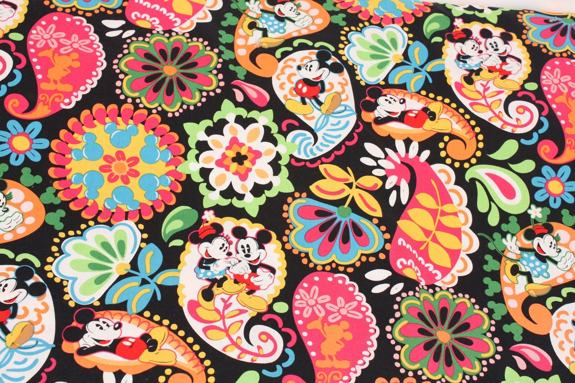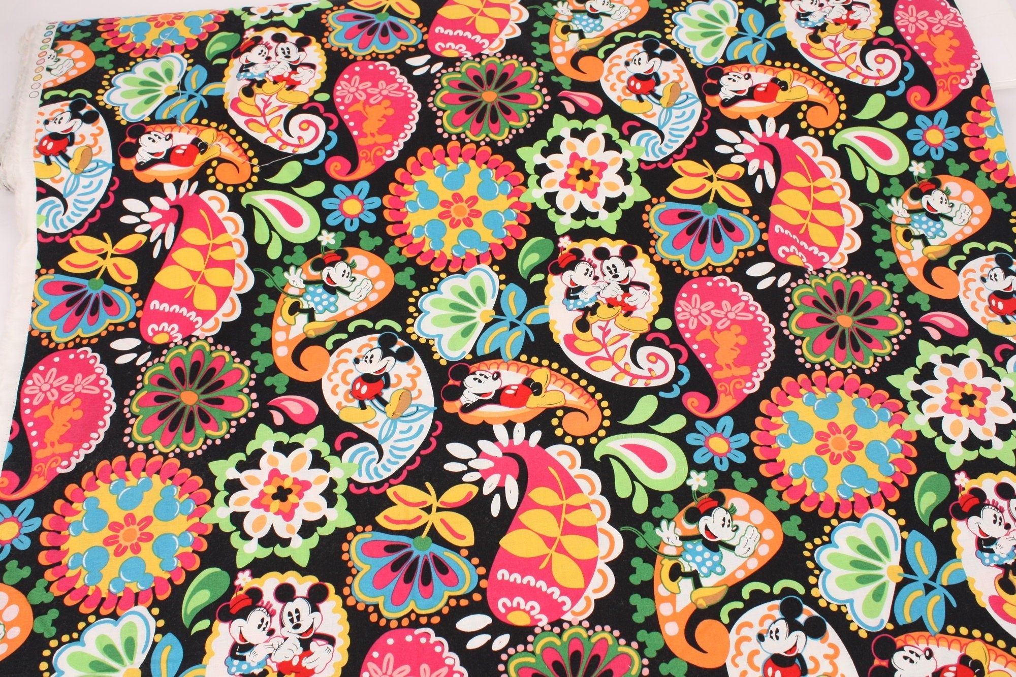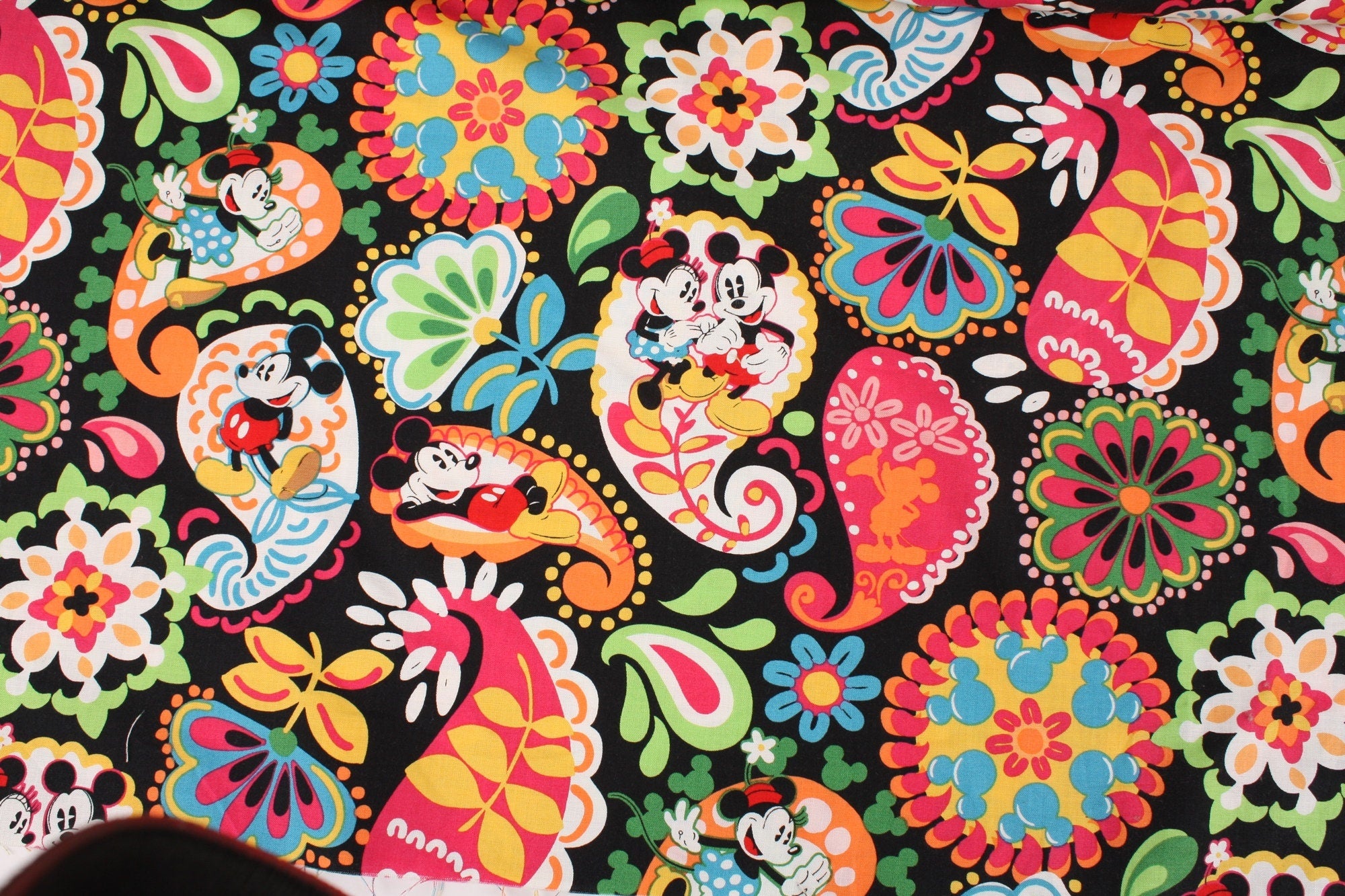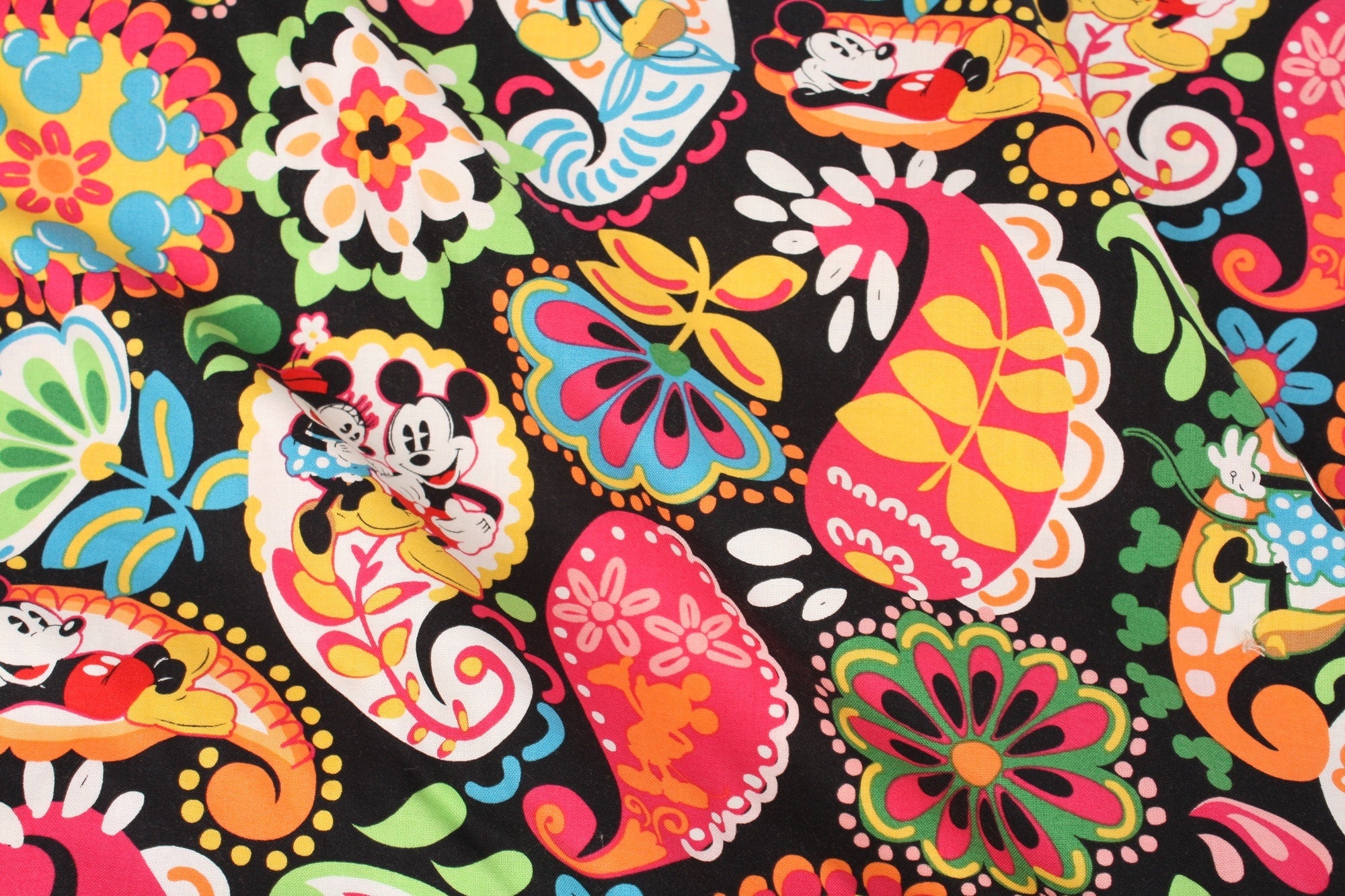 Disney Mickey Mouse Minnie Mouse Tropical Flower Fabric printed in Korea