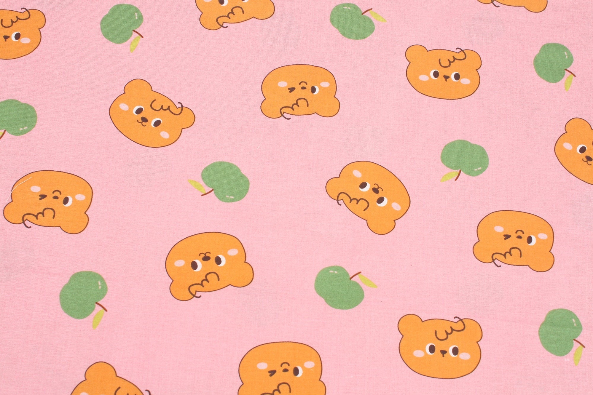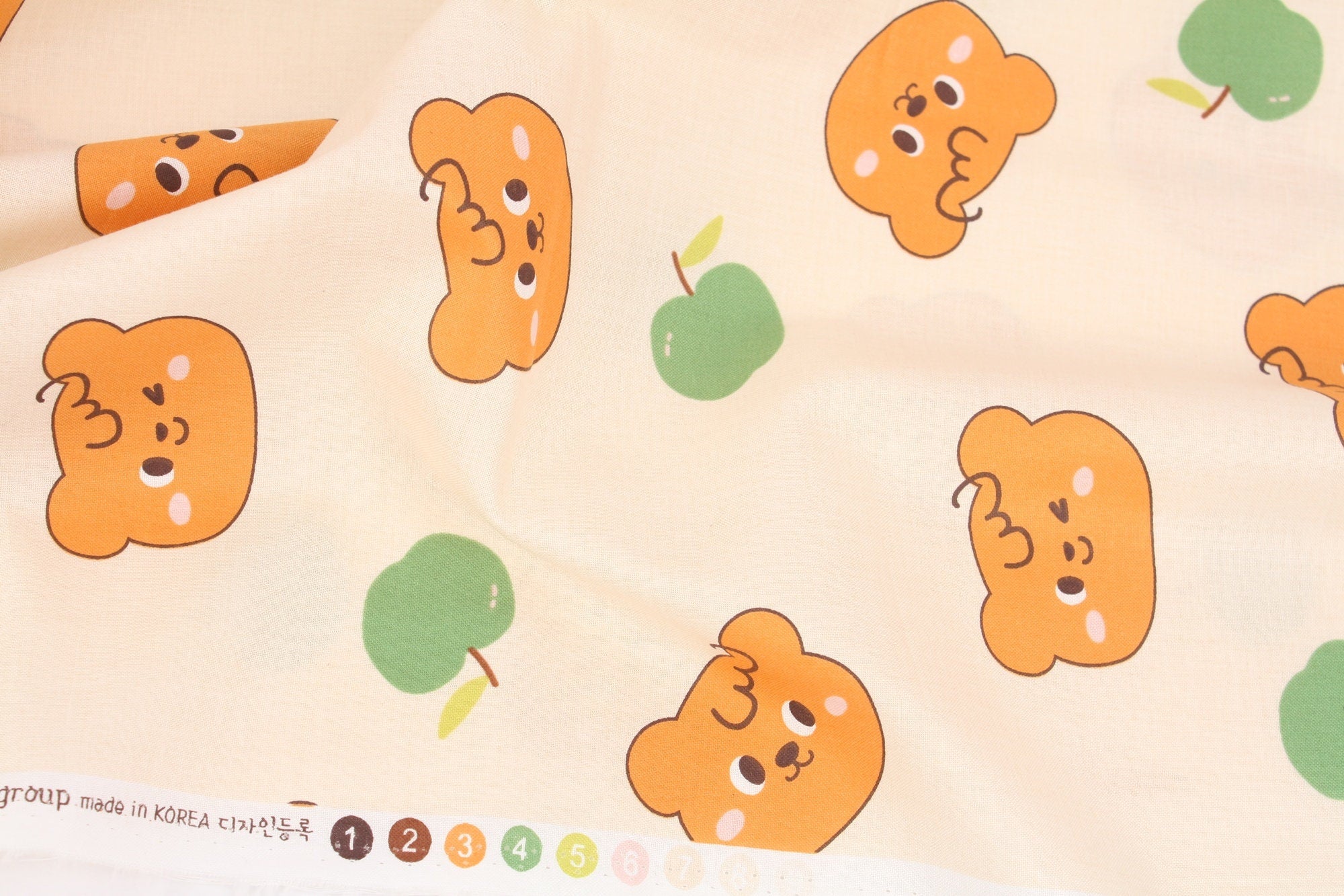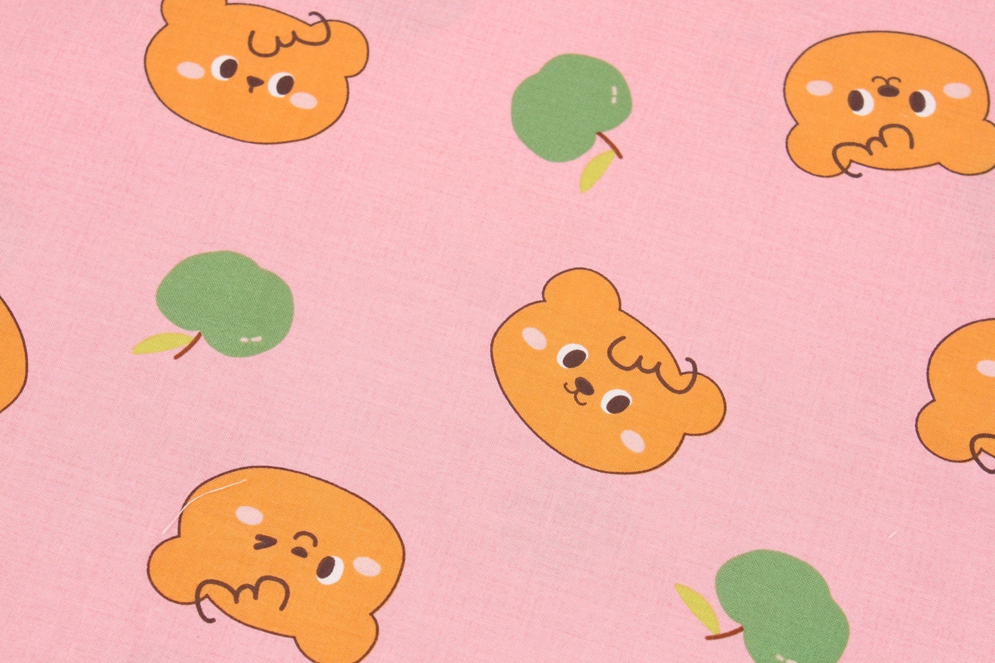 Bear and Apple Patterned Biowash Fabric printed in Korea