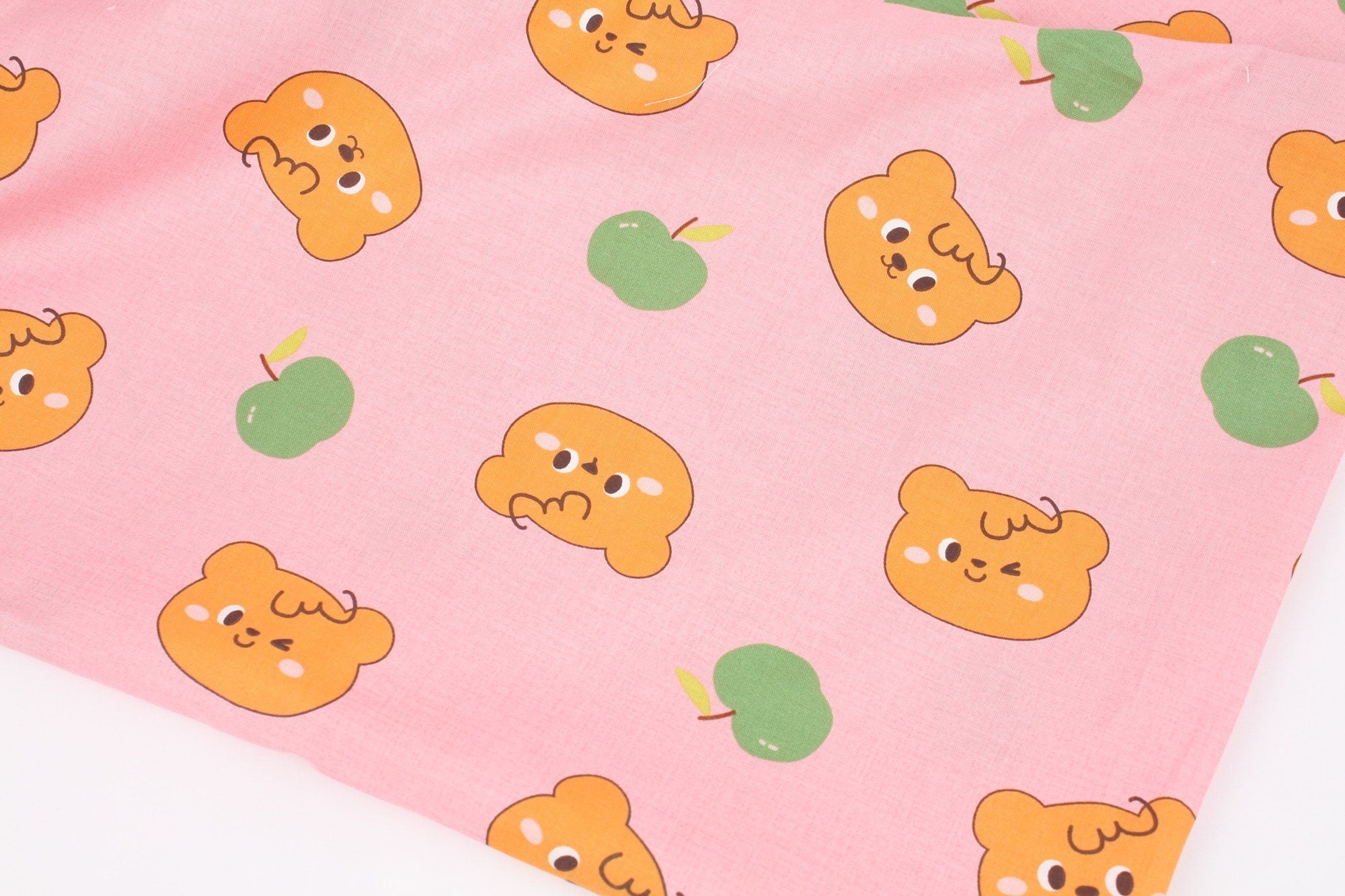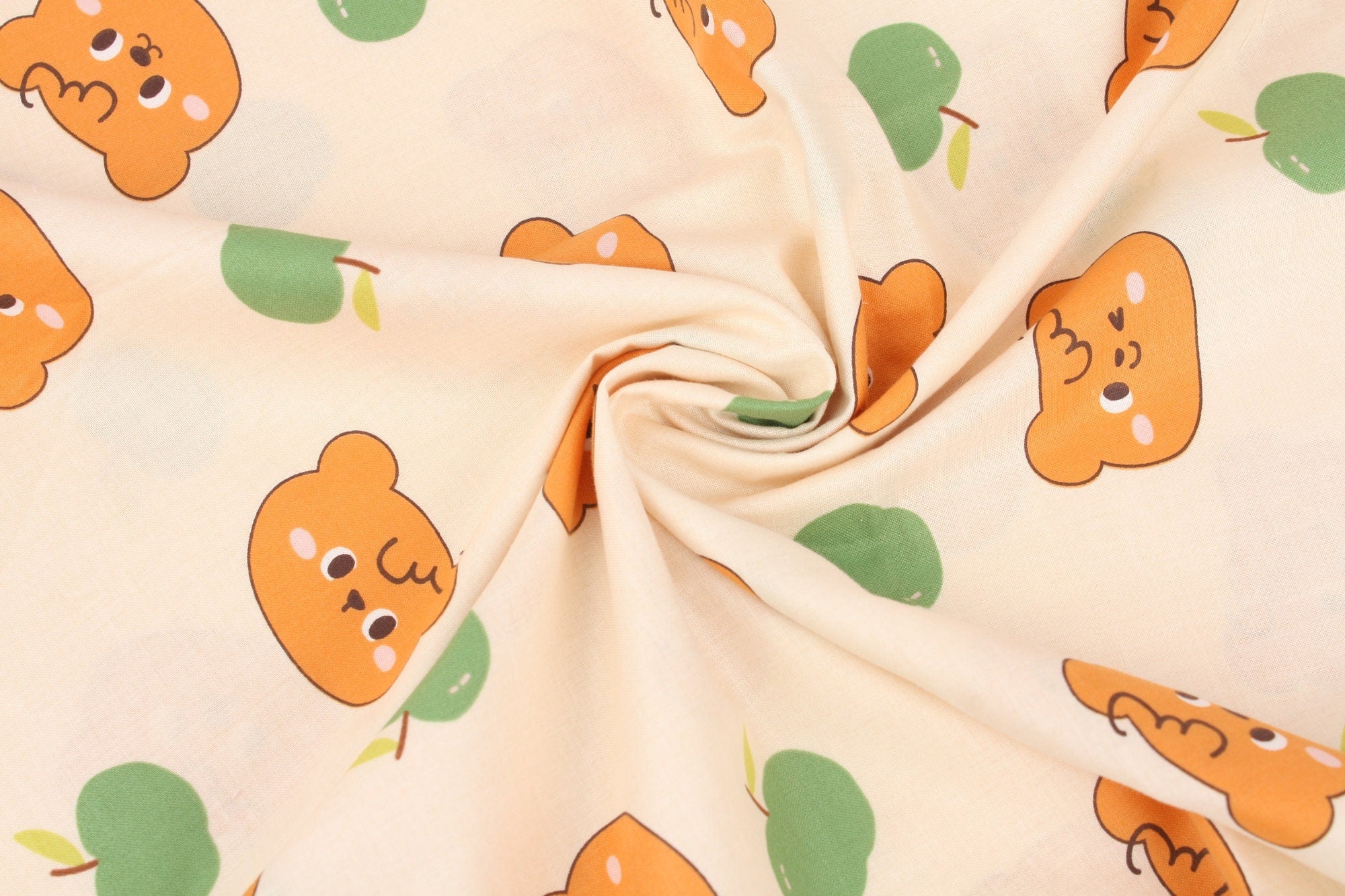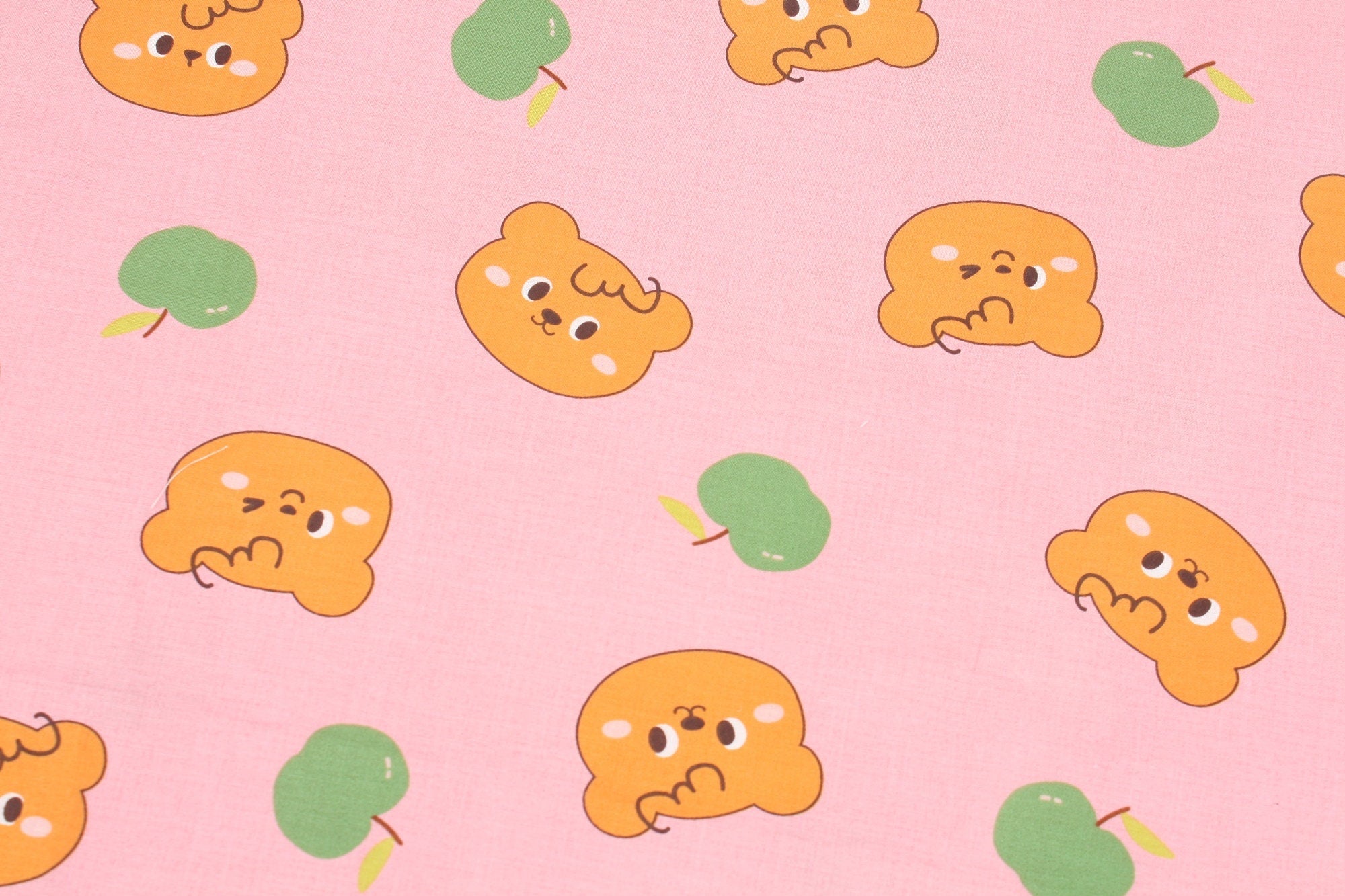 Bear and Apple Patterned Biowash Fabric printed in Korea
