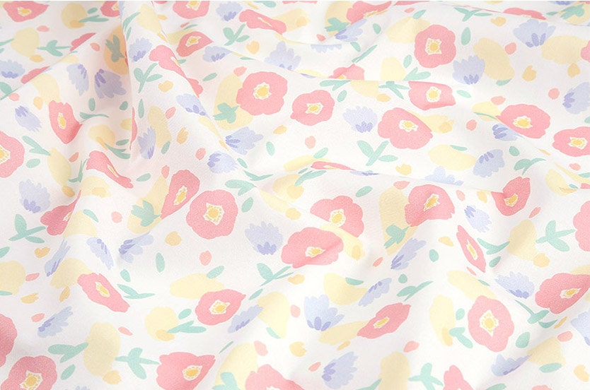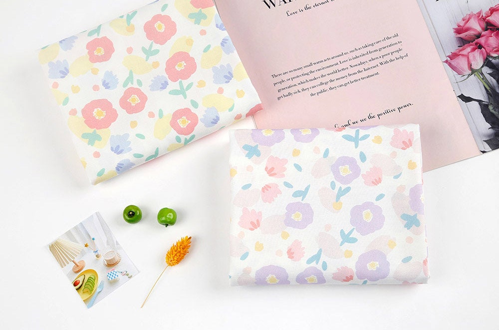 Fleur Mignonne Pastel Flower Patterned Fabric - Korean Fabric