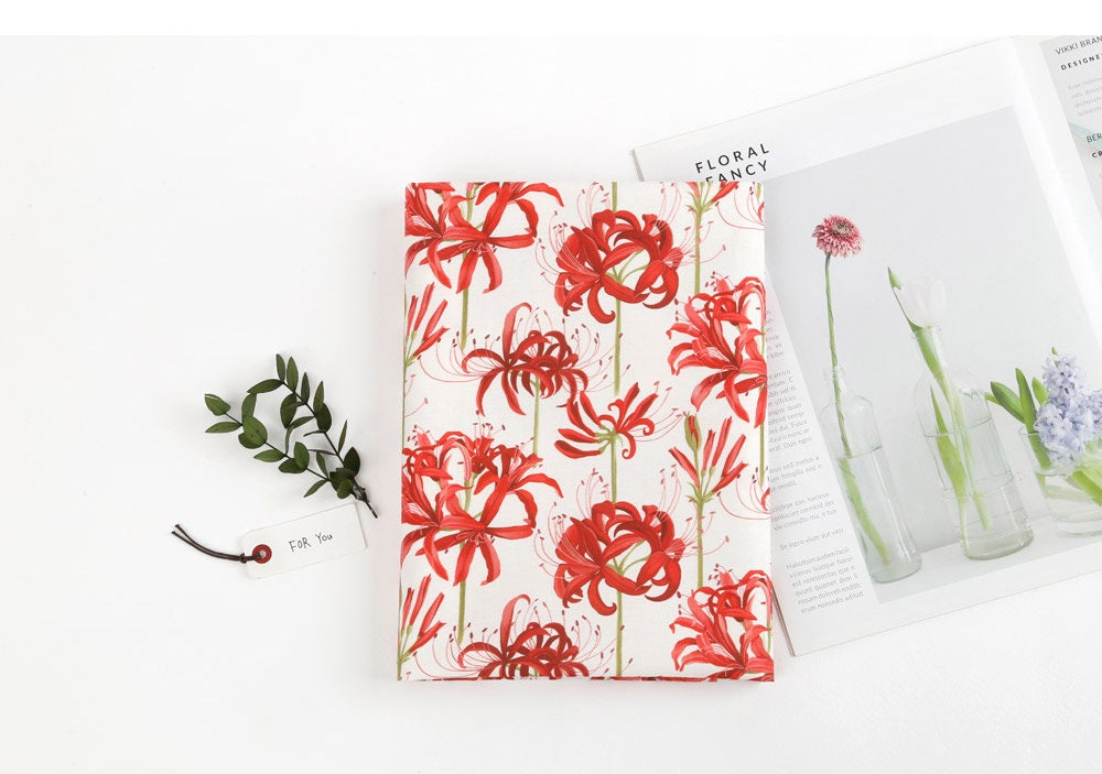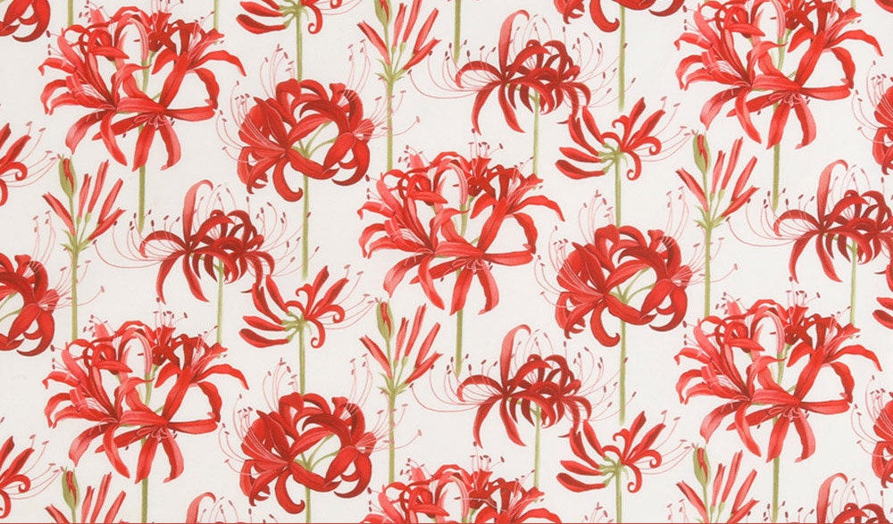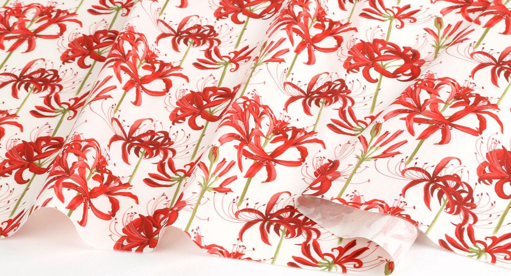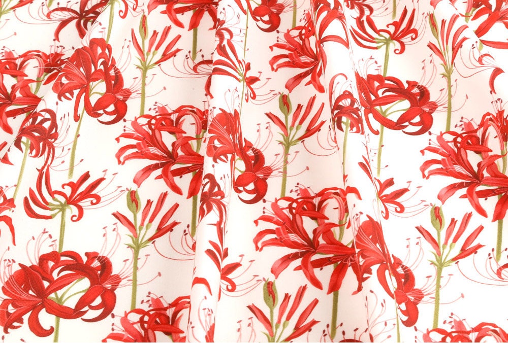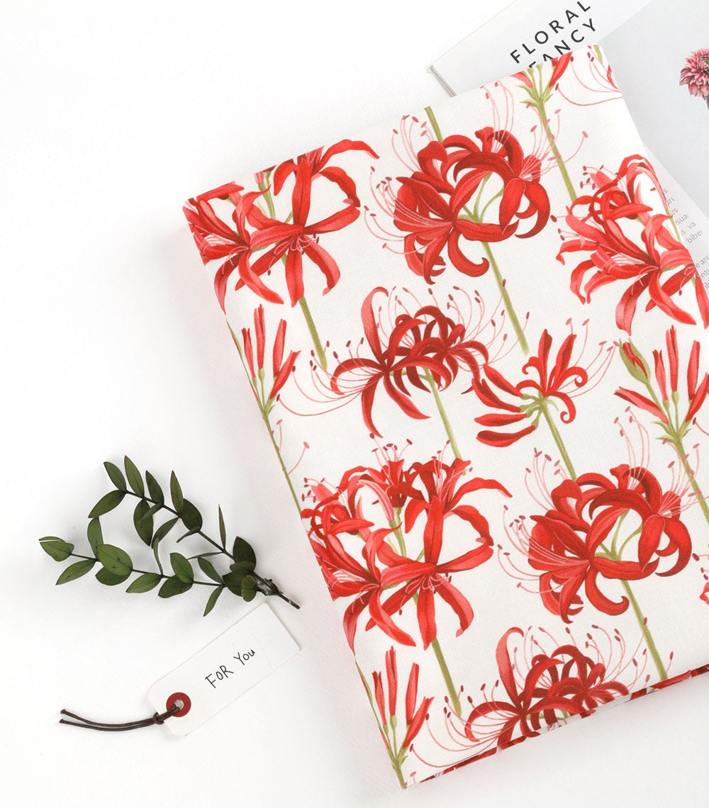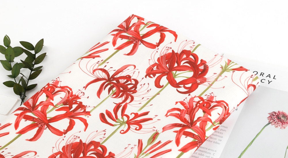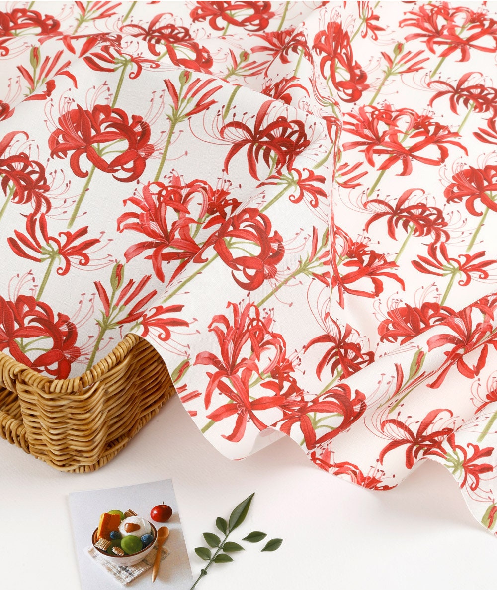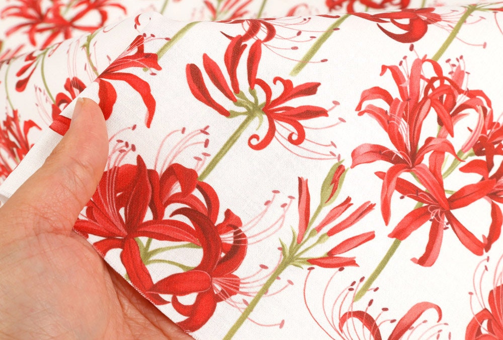 Red Spider Lily Flower Cluster Amaryllis Patterned Fabric - Korean Fabric