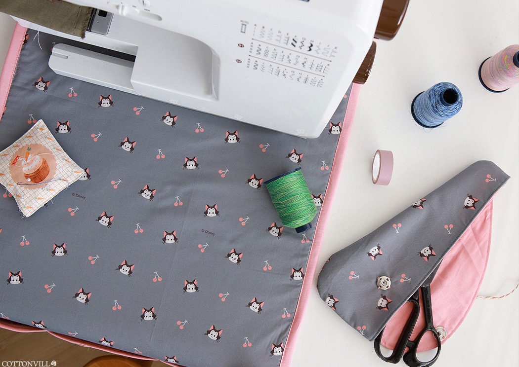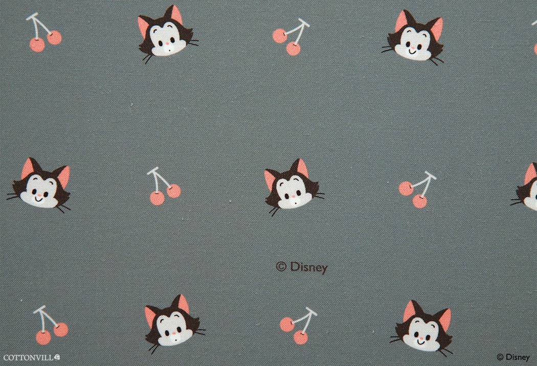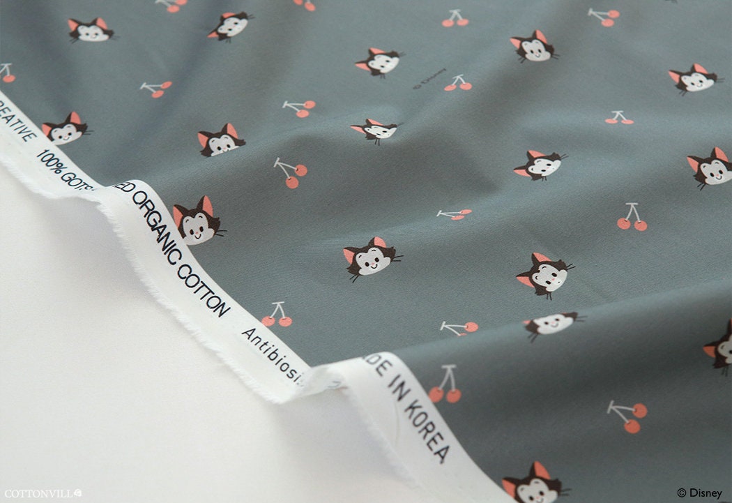 Disney Pinocchio Figaro Cat Cherry Organic Cotton 30s Licensed Fabric made in Korea