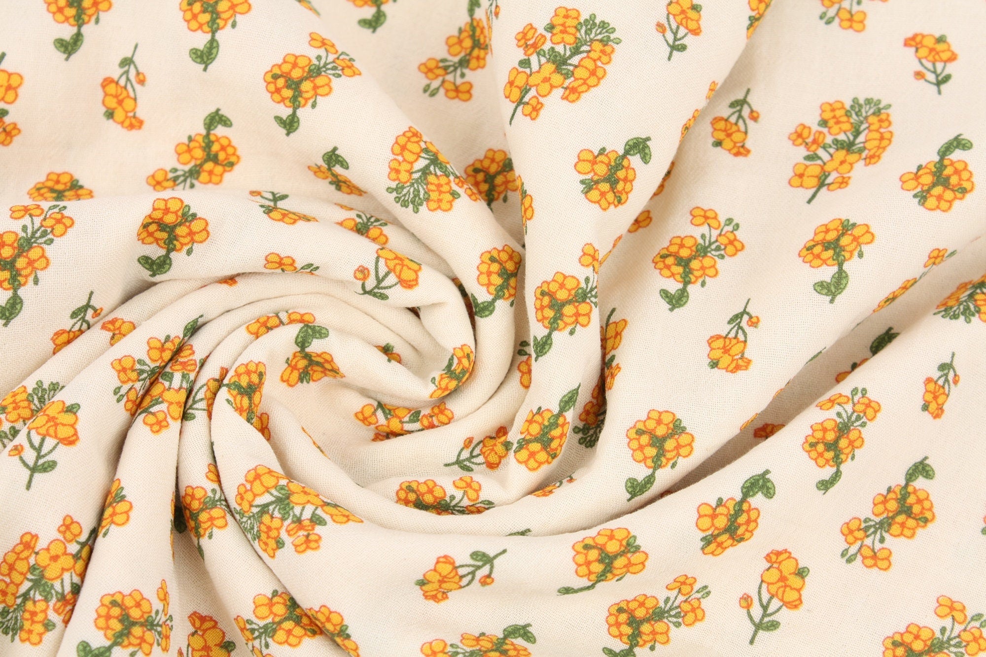 Rapeseed Flower Patterned Double Gauze Fabric - Korean Fabric