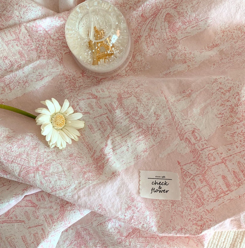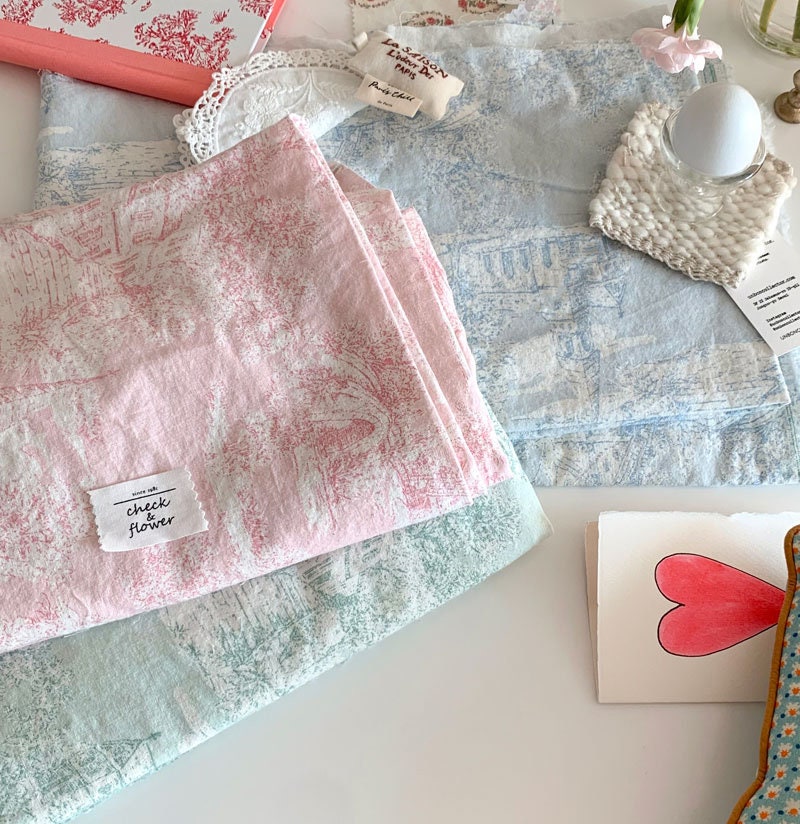 30s Washed Toile de Jouy Blue patterned fabric - Korean Fabric