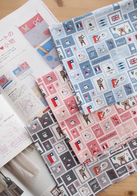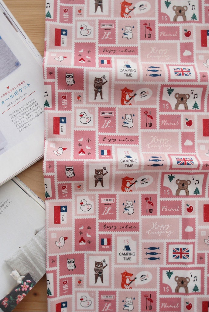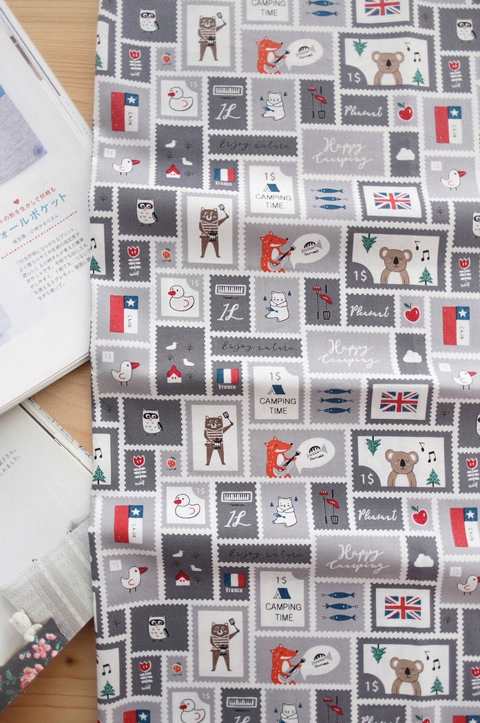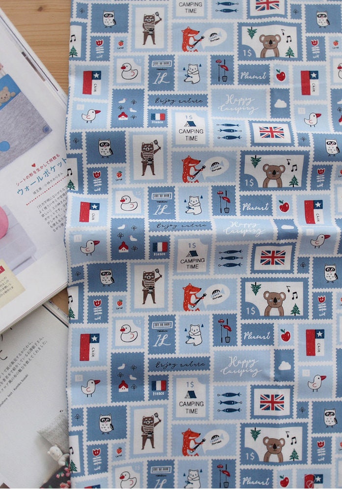 Mini Camping Post Stamp Patterned - Korean Fabric