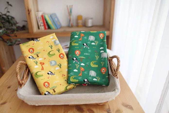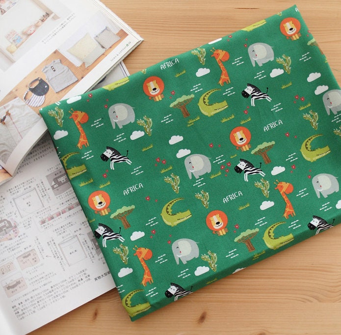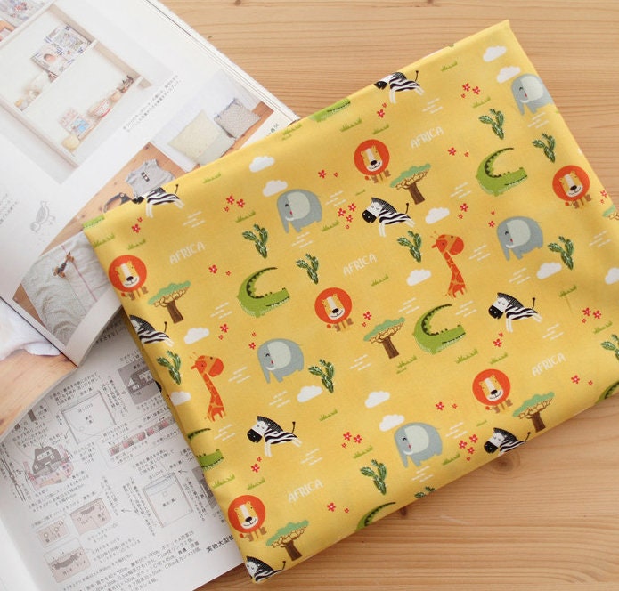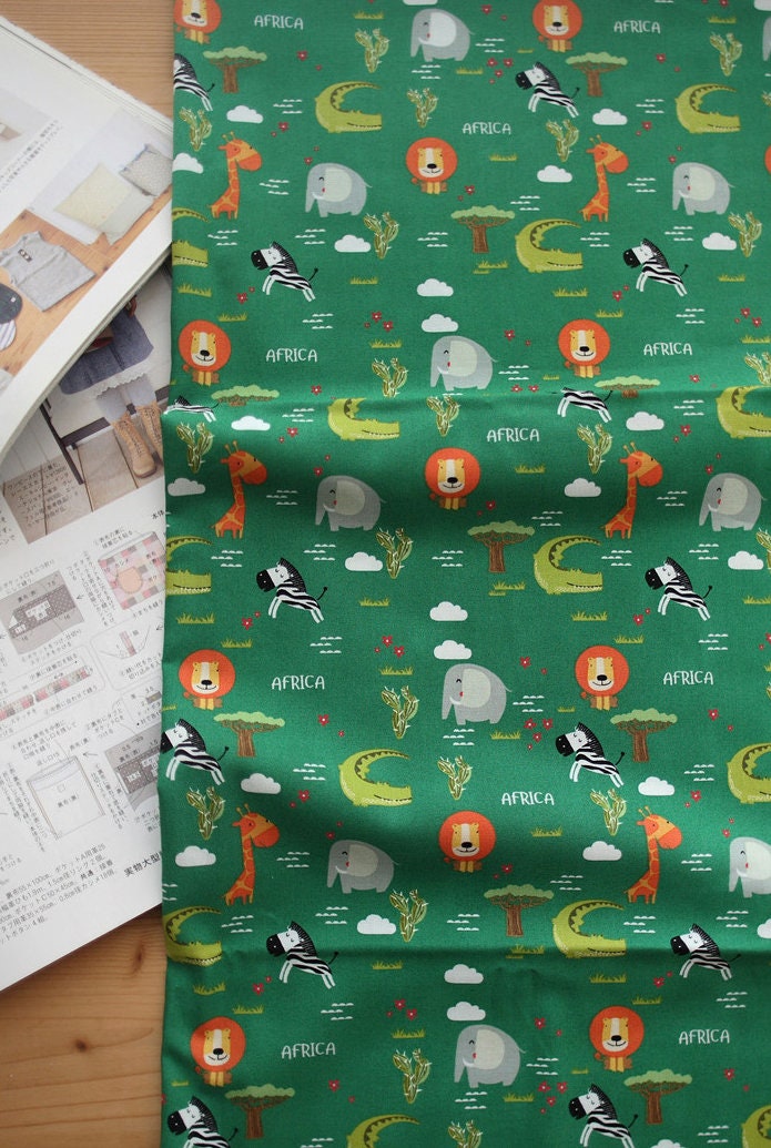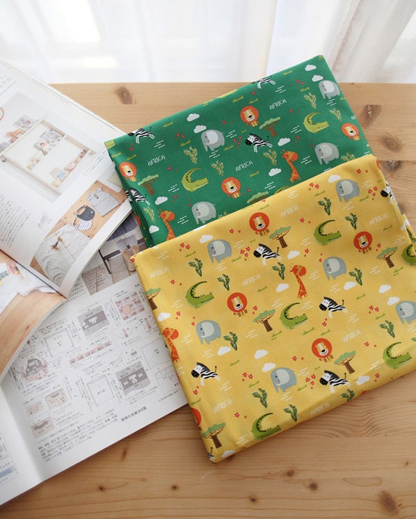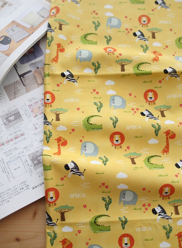Savanna Animals Lion Elephant Alligator Patterned - Korean Fabric