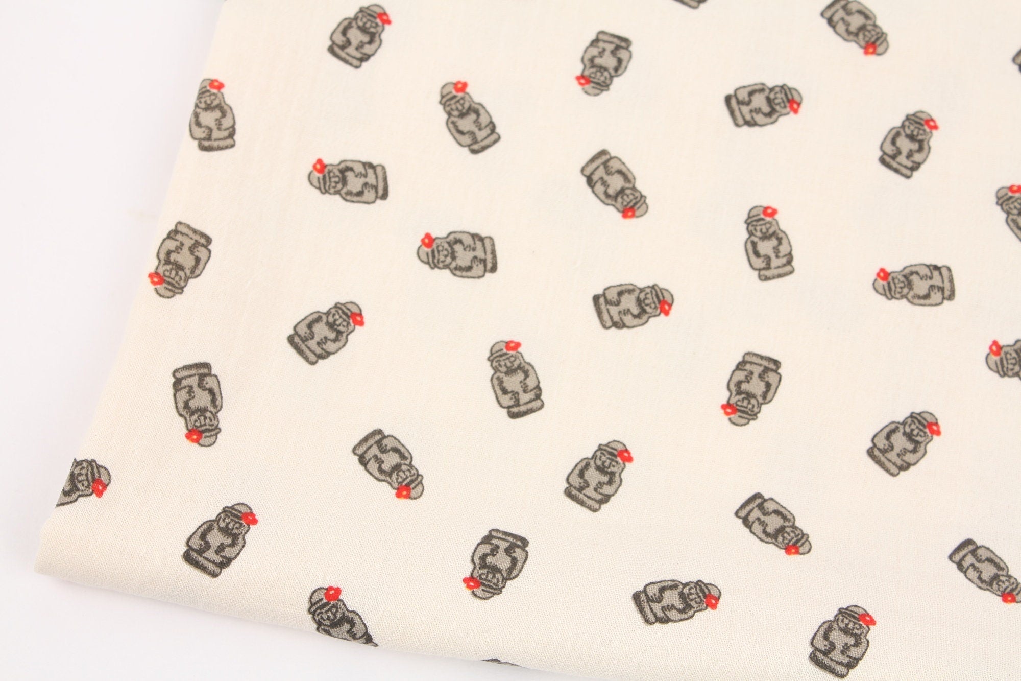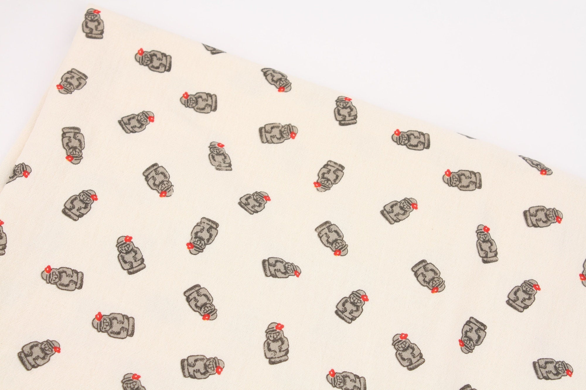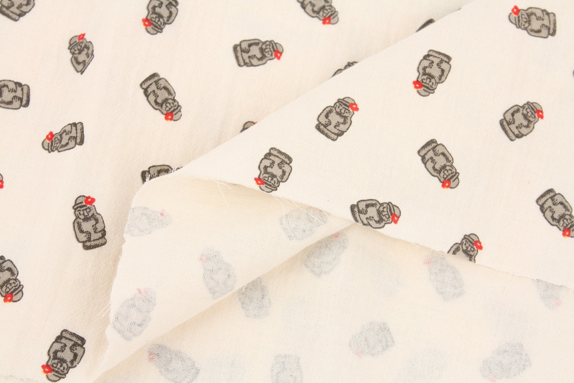Camellia Dol hareubang Patterned Double Gauze Fabric, Cute, Kids, Sewing, Quilt - Korean Fabric