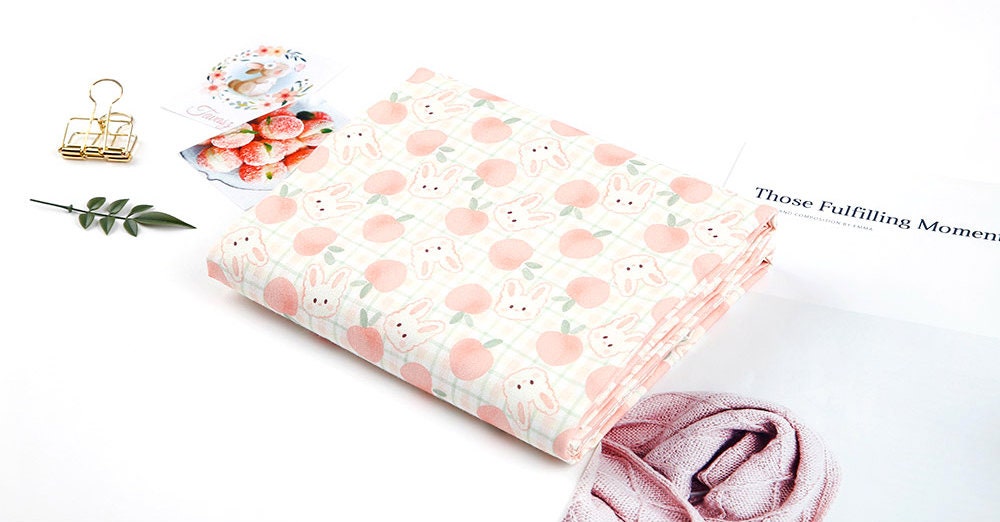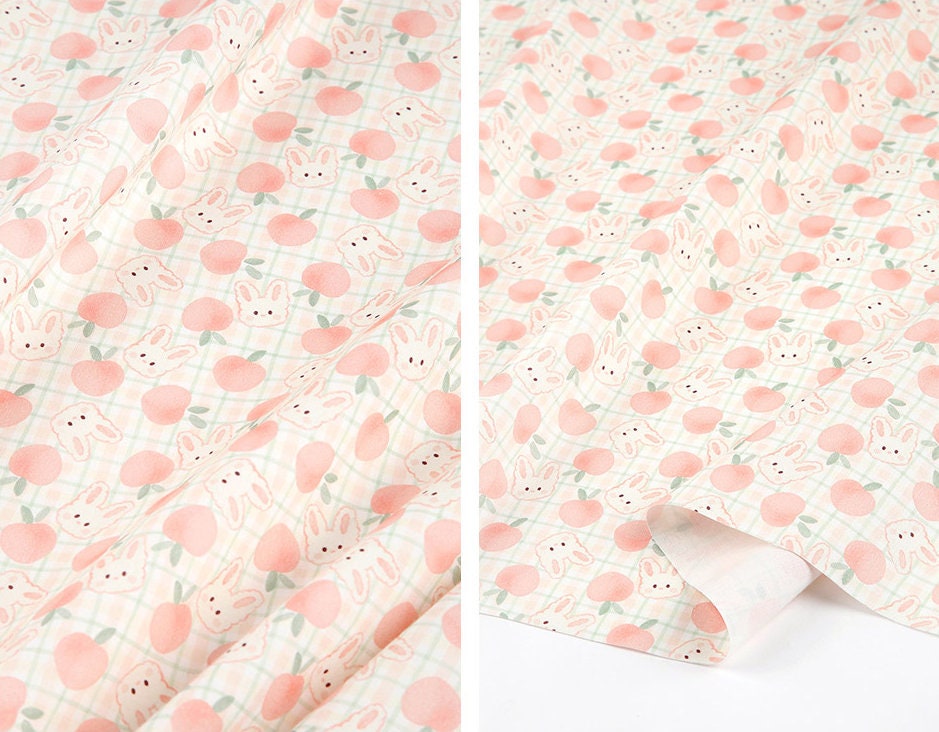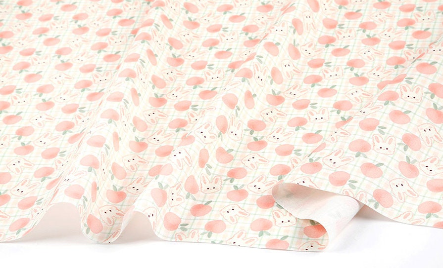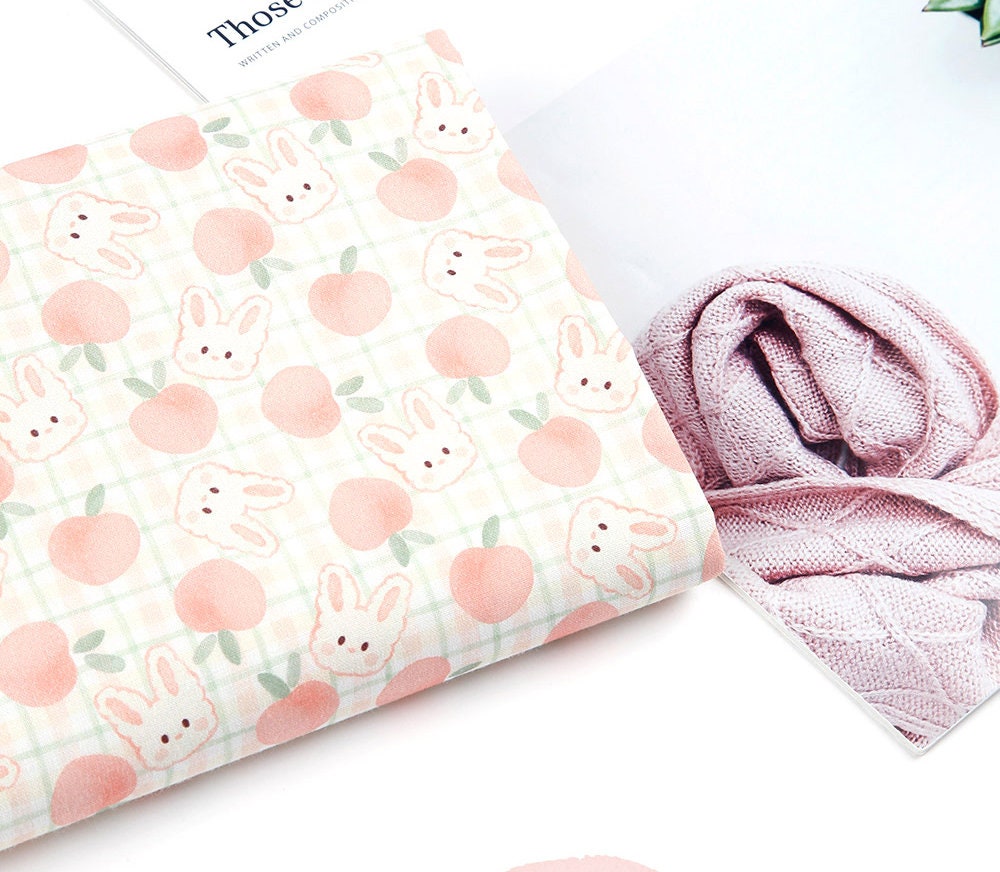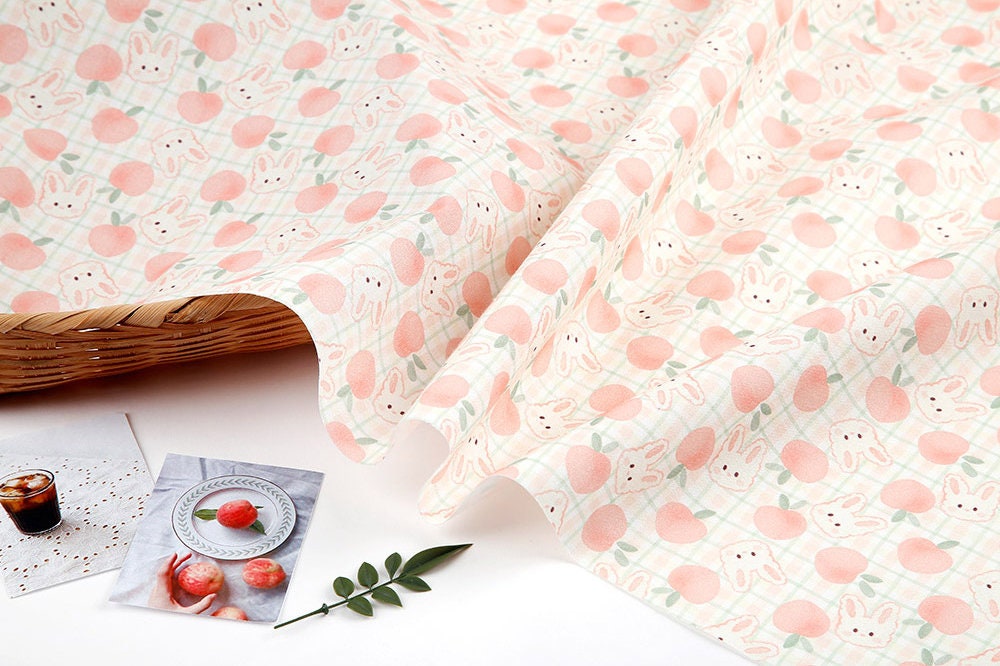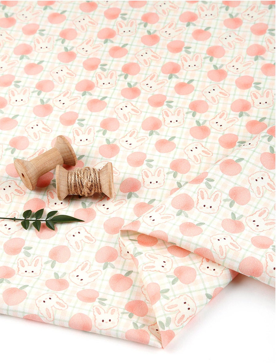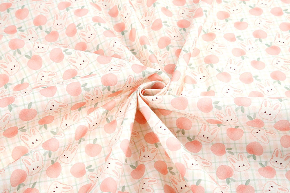 Pink Peach Rabbit Bunny Patterned Fabric - Korean Fabric